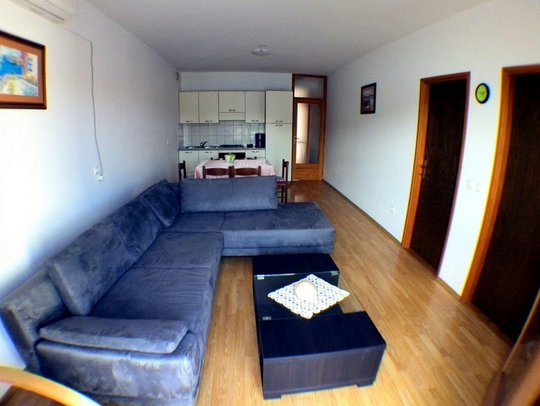 Ferienwohnung bietet Platz für 6 Gäste. Die Betten sind in Schlafzimmern, die es 2 gibt, und in Wohnzimmer, innerhalb einer Gesamtfläche von 47m2, angeordnet. Die Gäste haben eine eigene Terrasse zur Verfügung, auf der sie in warmen Sommernächten genießen können. Das Apartment bietet Meerblick. Es ist erlaubt, Speisen auf dem Gemeinschafts-Grill vorzubereiten. In der Unterkunftseinheit besteht die Möglichkeit des Mitbringens von Haustieren gegen Aufpreis. IM PREIS INBEGRIFFEN: Kurtaxe, Endreinigung, Klimatisierung, Parkplatz, Internet, Bootsanlegeplatz, Bügeleisen, Föhn. VERBINDLICHE ZUSÄTZLICHE KOSTEN: Aufzahlung für Kurzaufenthalte (prozentualer Zuschlag pro Nächtigungsanzahl: 30% - 1, 20% - 2, 10% - 3). UNVERBINDLICHE ZUSÄTZLICHE KOSTEN: Haustiere (5,00 € pro Nacht). Die Verfügbarkeit zusätzlicher Dienstleistungen in Ihrem reservierten Termin und die Preise derselben (falls nicht aufgeführt) müssen im Voraus überprüft werden. Zusätzliche Dienstleistungen die in der Zahlungsaufforderung nicht aufgeführt sind werden direkt beim Vermieter bezahlt, angenommen der Gast nutzt auch diese. Ermäßigung auf den Grundpreis: Gratistag 14=13 (bei einem Aufenthalt von 14 Tagen oder mehr erhalten Sie einen Gratistag für den Aufenthalt bis 31.12.26).