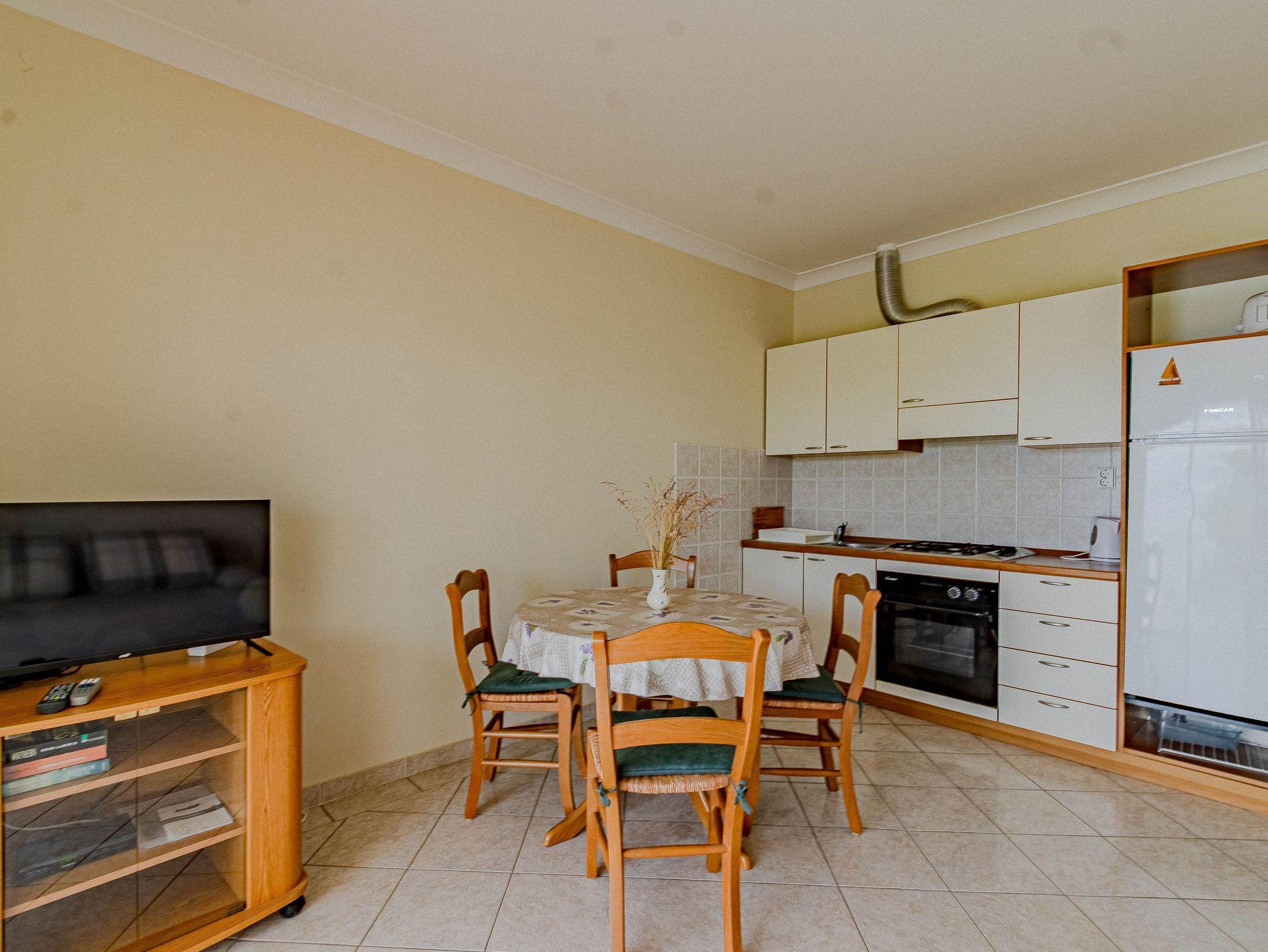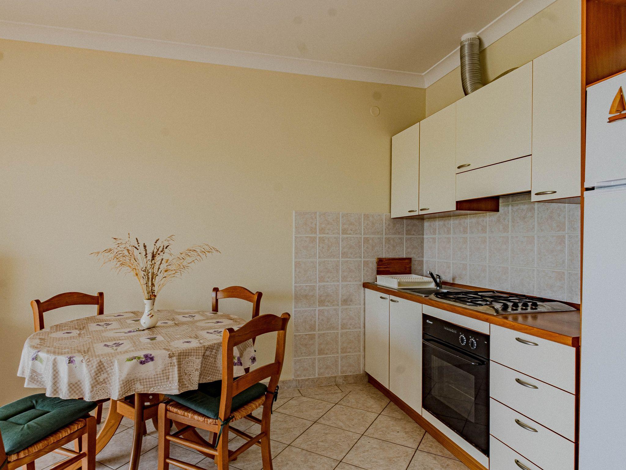Ferienwohnung bietet Platz für 4 Gäste. Die Betten sind in Schlafzimmern, die es 1 gibt, und in Wohnzimmer, innerhalb einer Gesamtfläche von 48m2, angeordnet. Die Gäste haben eine eigene Terrasse zur Verfügung, auf der sie in warmen Sommernächten genießen können. Das Apartment bietet Meerblick. Es ist erlaubt, Speisen auf dem Gemeinschafts-Grill vorzubereiten. IM PREIS INBEGRIFFEN: Kurtaxe, Endreinigung, Klimatisierung, Parkplatz, Internet, Föhn. VERBINDLICHE ZUSÄTZLICHE KOSTEN: Aufzahlung für Kurzaufenthalte (prozentualer Zuschlag pro Nächtigungsanzahl: 30% - 1, 20% - 2, 10% - 3). UNVERBINDLICHE ZUSÄTZLICHE KOSTEN: Wäschewaschen (5,00 € Waschen). Die Verfügbarkeit zusätzlicher Dienstleistungen in Ihrem reservierten Termin und die Preise derselben (falls nicht aufgeführt) müssen im Voraus überprüft werden. Zusätzliche Dienstleistungen die in der Zahlungsaufforderung nicht aufgeführt sind werden direkt beim Vermieter bezahlt, angenommen der Gast nutzt auch diese.