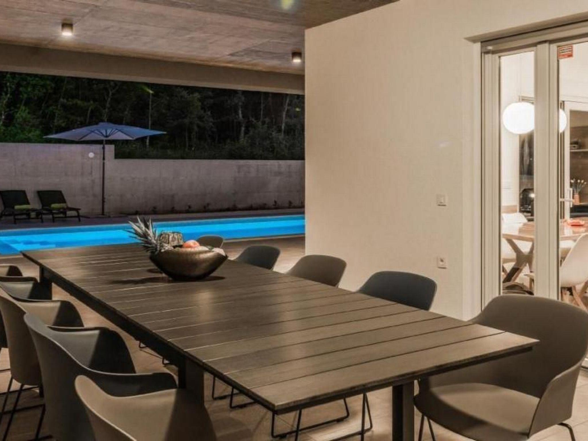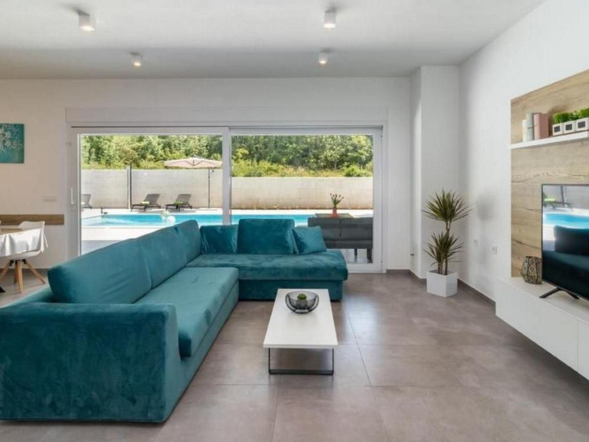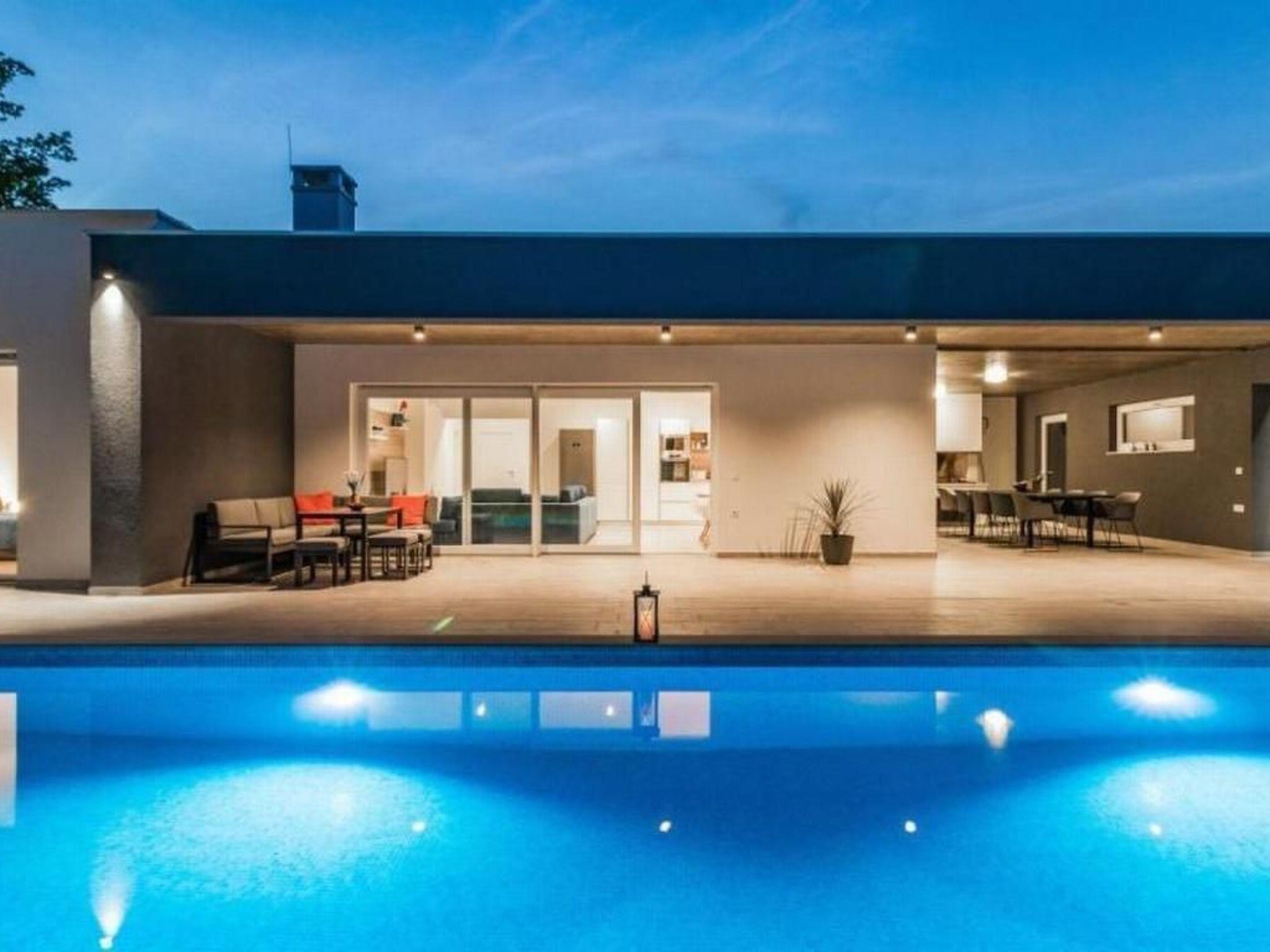 Vila SANIVARO ist ein luxuriöses und modernes Haus, das im Jahr 2019 gebaut und mit Liebe, Begeisterung und Sorgfalt für die Details eingerichtet wurde, was den Gästen ein Gefühl von Zuhause vermittelt. Die Lage dieser luxuriösen Villa ist am Ende des Dorfes, in einem ruhigen und unberührten Teil der Natur, am Anfang des schönen Eichenwaldes, umgeben von wilden Blumen, die Villa garantiert eine unwiederholbare Erfahrung von Ruhe und Privatsphäre, weit weg vom hektischen Alltag. Der natürliche Duft des Waldes und der Wiesen ist etwas, das in dieser unwiederholbaren Schönheit unvergesslich ist. Der spektakuläre nächtliche Blick auf den Sternenhimmel, weit weg vom Alltagslärm und der Lichtverschmutzung, ist eine weitere "kleine" Sache, die die romantischen Momente Ihres Aufenthalts bereichert. Das Innere der Villa bietet ein luxuriöses und geräumiges Wohnzimmer mit einer modernen, großen Küche und einem Essbereich, in den das Tageslicht durch die große Balkontür fällt. Vom Wohnbereich aus hat man einen Blick auf den Pool und die Sonnenterrasse, so dass die Eltern ihre Kinder beobachten können, während sie sich im Pool vergnügen. Die Villa verfügt über 4 komfortable und voll klimatisierte Zimmer, die sich auf der gleichen Ebene wie der andere Teil des Hauses befinden. Die Zimmer sind mit Doppelbetten ausgestattet, und bei Bedarf kann das Bett in zwei Zimmer aufgeteilt werden. Auf Anfrage gibt es auch ein Kinderbett. Wi-Fi ist im ganzen Haus verfügbar. Der gesamte Wohnbereich befindet sich auf einer Ebene und ist behindertengerecht gestaltet.