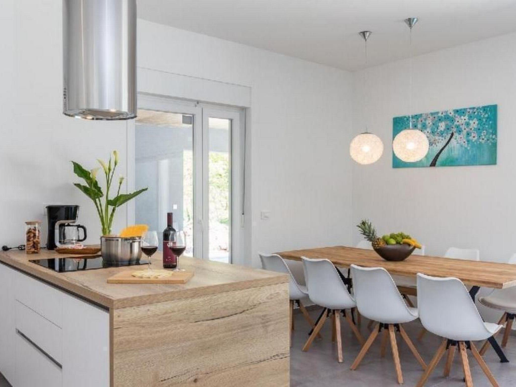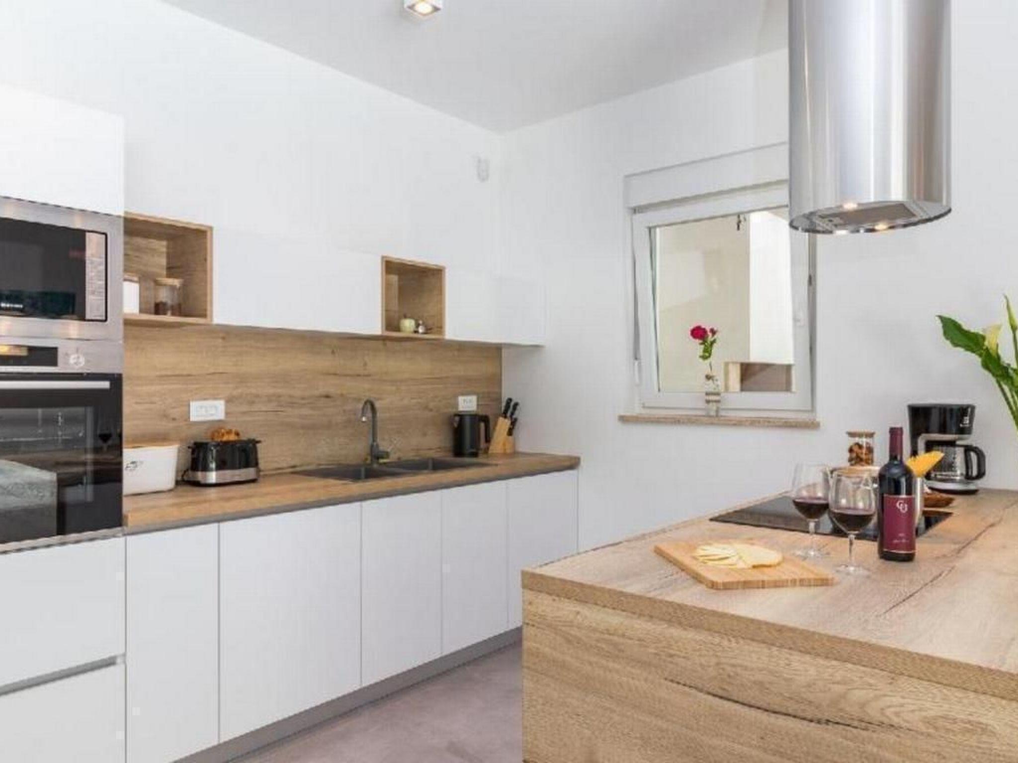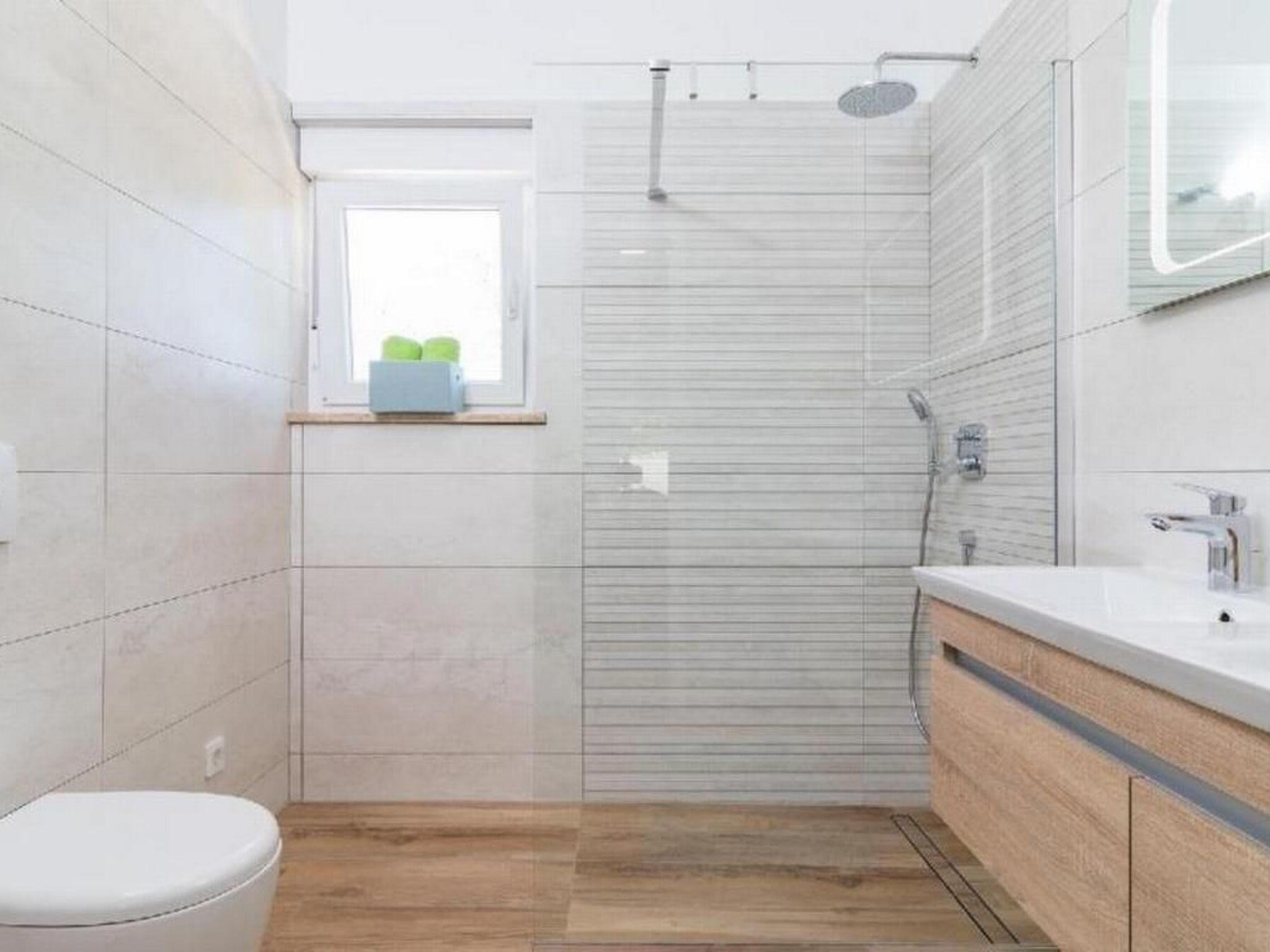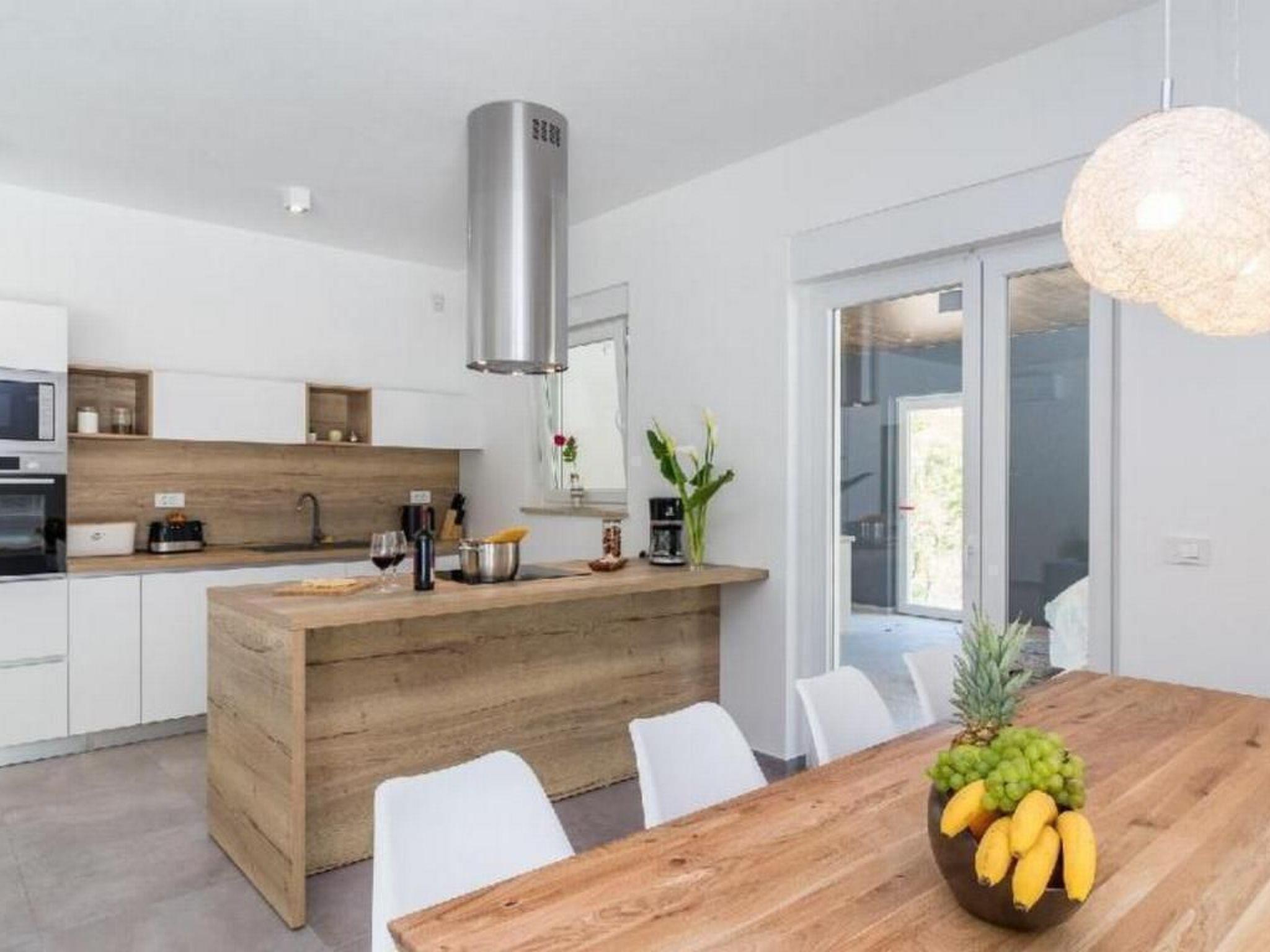 Vila SANIVARO ist ein luxuriöses und modernes Haus, das im Jahr 2019 gebaut und mit Liebe, Begeisterung und Sorgfalt für die Details eingerichtet wurde, was den Gästen ein Gefühl von Zuhause vermittelt. Die Lage dieser luxuriösen Villa ist am Ende des Dorfes, in einem ruhigen und unberührten Teil der Natur, am Anfang des schönen Eichenwaldes, umgeben von wilden Blumen, die Villa garantiert eine unwiederholbare Erfahrung von Ruhe und Privatsphäre, weit weg vom hektischen Alltag. Der natürliche Duft des Waldes und der Wiesen ist etwas, das in dieser unwiederholbaren Schönheit unvergesslich ist. Der spektakuläre nächtliche Blick auf den Sternenhimmel, weit weg vom Alltagslärm und der Lichtverschmutzung, ist eine weitere "kleine" Sache, die die romantischen Momente Ihres Aufenthalts bereichert. Das Innere der Villa bietet ein luxuriöses und geräumiges Wohnzimmer mit einer modernen, großen Küche und einem Essbereich, in den das Tageslicht durch die große Balkontür fällt. Vom Wohnbereich aus hat man einen Blick auf den Pool und die Sonnenterrasse, so dass die Eltern ihre Kinder beobachten können, während sie sich im Pool vergnügen. Die Villa verfügt über 4 komfortable und voll klimatisierte Zimmer, die sich auf der gleichen Ebene wie der andere Teil des Hauses befinden. Die Zimmer sind mit Doppelbetten ausgestattet, und bei Bedarf kann das Bett in zwei Zimmer aufgeteilt werden. Auf Anfrage gibt es auch ein Kinderbett. Wi-Fi ist im ganzen Haus verfügbar. Der gesamte Wohnbereich befindet sich auf einer Ebene und ist behindertengerecht gestaltet.