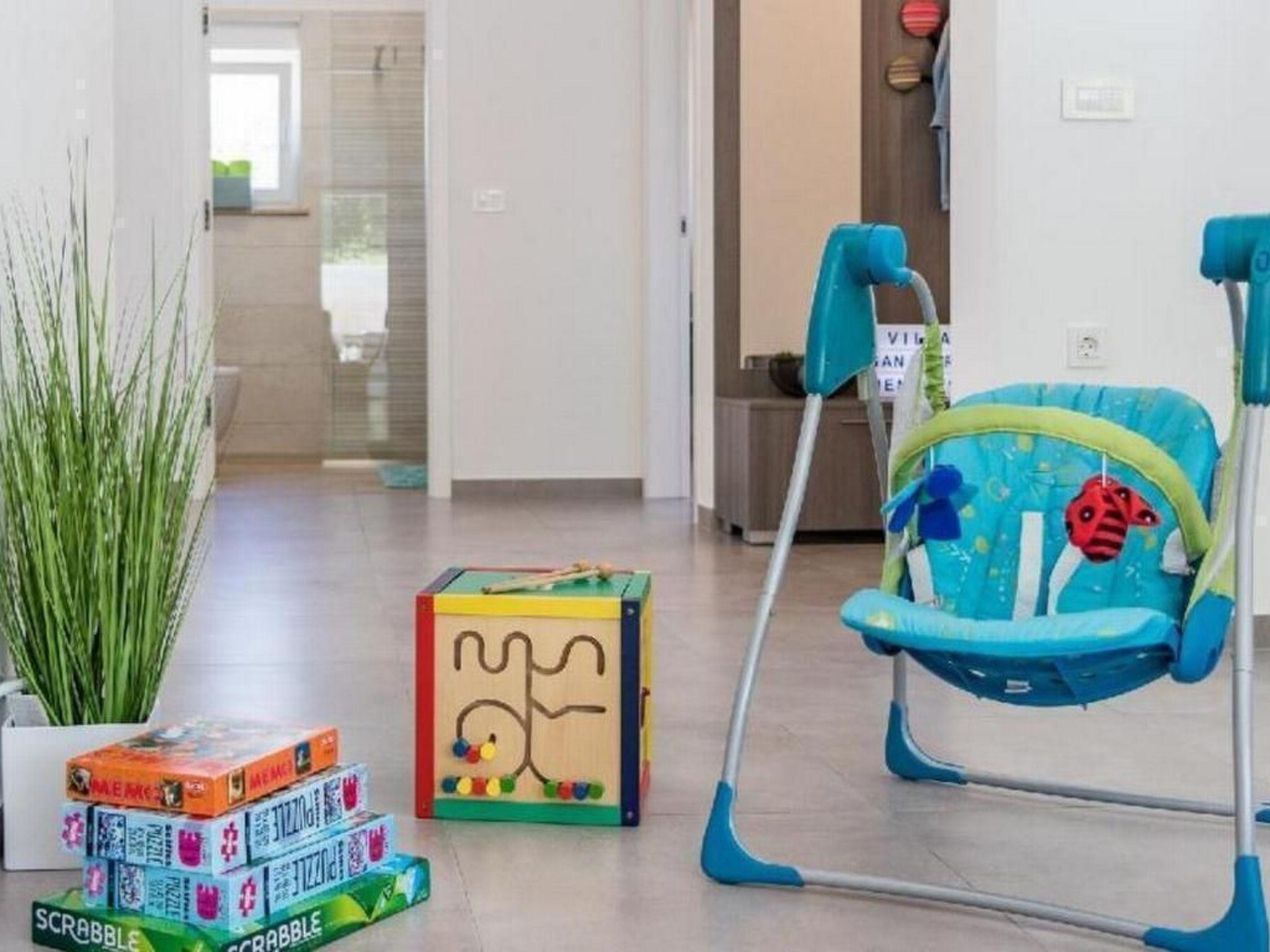 Die Villa ist voll von sportlichen Inhalten im offenen Raum, wo neben dem Pool Ihre Kinder auf der Schaukel, Rutsche oder Trampolin genießen können. Falls Sie eher ein Fan von Indoor-Sportarten sind, gibt es einen großen Raum mit Tischtennis, Tischfußball, Darts oder Fitness (multifunktionales Trainingsgerät und Orbitrek). Diese Villa ist ein idealer Ausgangspunkt für einen aktiven Urlaub in der Natur, denn es gibt einen direkten Zugang zur 40 km langen Fahrradroute, und die ruhigen Wege sind ideal zum Joggen oder für lange Spaziergänge. Vila SANIVARO ist nur 20 Minuten mit dem Auto zu den schönen Stränden der Adria in alle Richtungen - Pula, Bale, Duga Uvala, Medulin... Gleichzeitig können Sie von der Vila aus zu den täglichen Ausflügen zu den berühmten touristischen Zielen wie Pula, Rovinj, Porec, Opatija, Nationalpark Brijuni aufbrechen oder einen aktiven Tag in einem Wasserpark wie Aquacolors (Porec), Istralandia (Novigrad) oder Glavani Adrenalinpark (Barban) verbringen.