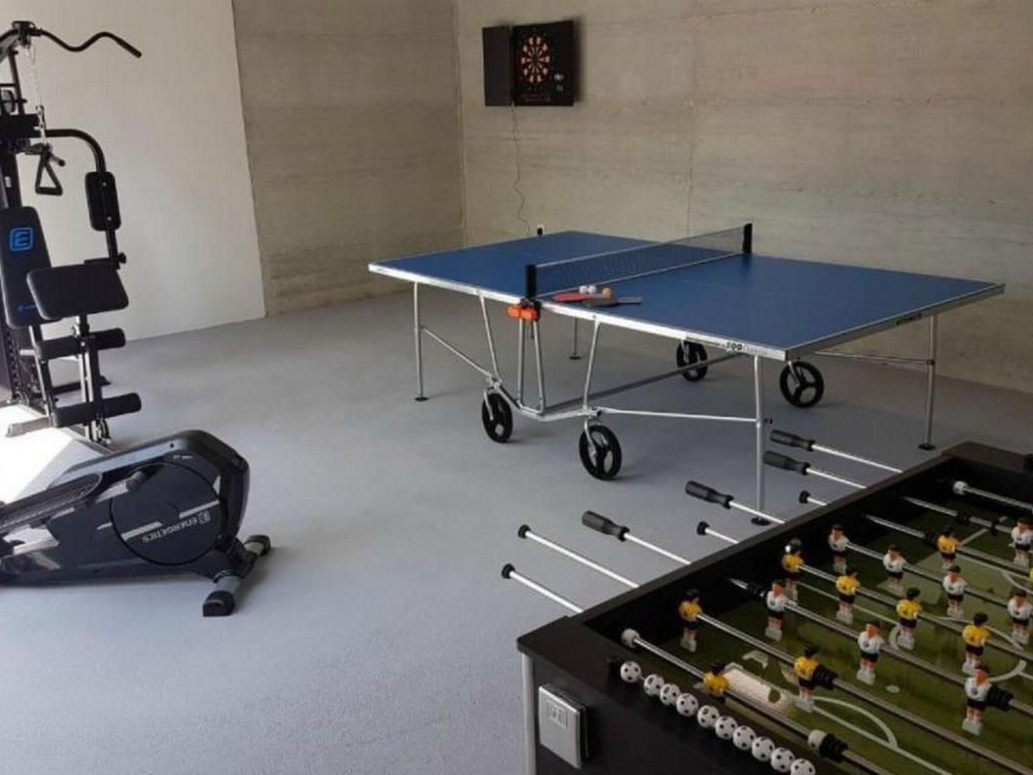 Kurzbeschreibung 1Anzahl der Küchen : 1UmgebungSportmöglichkeiten in der Nähe: Fahrradtouren, MountainbikingUmgebung 1Weitere Freizeitmöglichkeiten : Auf dem großen Spielplatz können Sie Volleyball oder Badminton spielen. Sie können sich auf der Schaukel, der Rutsche oder dem Trampolin vergnügen oder sich auf dem großen Spielplatz beim Volleyball oder Badminton versuchen. Falls Sie eher ein Fan von Indoor-Sportarten sind, gibt es einen großen Raum mit Tischtennis, Tischfußball, Darts oder Fitness (Multifunktions-Trainingsgerät und Orbitrek). Diese Villa ist ideal zum Joggen oder für lange Spaziergänge.Garten und AußenbereichGarteneinrichtungen: Gartenmöbel vorhanden, Grill, Pavillon, SpielplatzgeräteFreizeiteinrichtungen vor Ort: Freibad zur Alleinbenutzung, Spielplatz, Separater Fitnessraum, Schwimmbad, TischtennisAußenbereich: Garten vorhanden; Grill; Parkplätze: 1; Privater Parkplatz; Privates Schwimmbad; Terrasse;Hausinformationen: 2. Doppelbett; 2. Einzelbett; Barrierefreier Zugang; Badezimmer: 3; Schlafzimmer; Grundstücksfläche: 2400 m²; Jahr der Renovierung: 1;Wohnbereich: Doppelsofa; Kamin; Satellitenfernsehen; TV;Bad/WC: Haartrockner; Dusche; Toilette;Küche: Kaffeemaschine; Geschirrspüler; Gefrierschrank; Kühlschrank; Mikrowelle; Backofen; Herd; Toaster; Wasserkocher;Sonstiges: Klimaanlage; Kinderbett/Babybett; Heizung; Haustiere erlaubt: max. 1; Aussicht; Waschmaschine; Wifi-Pauschalpaket;Entfernungen (Luftlinie, ca.): Entfernung zu Cafés/Restaurants: 7,00 km; Entfernung zum Lebensmittelmarkt: 2,50 km; Entfernung zum Meer: 18,00 km;KurzbeschreibungSonstiges : Behinderten- und rollstuhlgerechtGarten und AußenanlagenGartenanlagen : GrillFreizeiteinrichtungen vor Ort : Schwimmbad