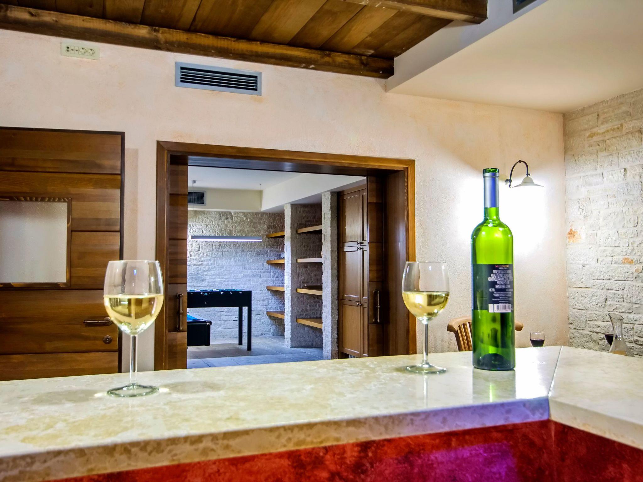 Im Inneren bietet die Villa Mirna eine geräumige Wohnfläche von 318 m2, in der bis zu 4 Schlafzimmer untergebracht sind, jedes mit seinem eigenen Charme. Zwei Schlafzimmer befinden sich im ersten Stock und haben Zugang zu privaten Terrassen mit Tischen und Stühlen - ideale Orte für den Morgenkaffee oder die abendliche Besinnung. Das dritte Schlafzimmer, ebenfalls im ersten Stock, verfügt über romantische Fenstertüren. Im Erdgeschoss befindet sich ein weiteres Schlafzimmer mit dem Luxus eines direkten Zugangs zum Pool. Drei Schlafzimmer mit Doppelbetten und eines mit zwei Einzelbetten, die zusammengeschoben werden können, bieten höchsten Komfort. Zusätzlich gibt es einen gemütlichen Galerieraum mit einem Doppelbett. Jedes der Schlafzimmer verfügt über ein eigenes Bad mit Fußbodenheizung und Heizkörper, so dass ein Höchstmaß an Komfort gewährleistet ist. Ein zusätzliches Badezimmer befindet sich in der Nähe der Sauna und des Pools. Außerdem gibt es eine separate Toilette, eine voll ausgestattete Küche mit Essbereich und ein Wohnzimmer mit Fernseher, PlayStation-Konsole und einem gemütlichen Kamin.