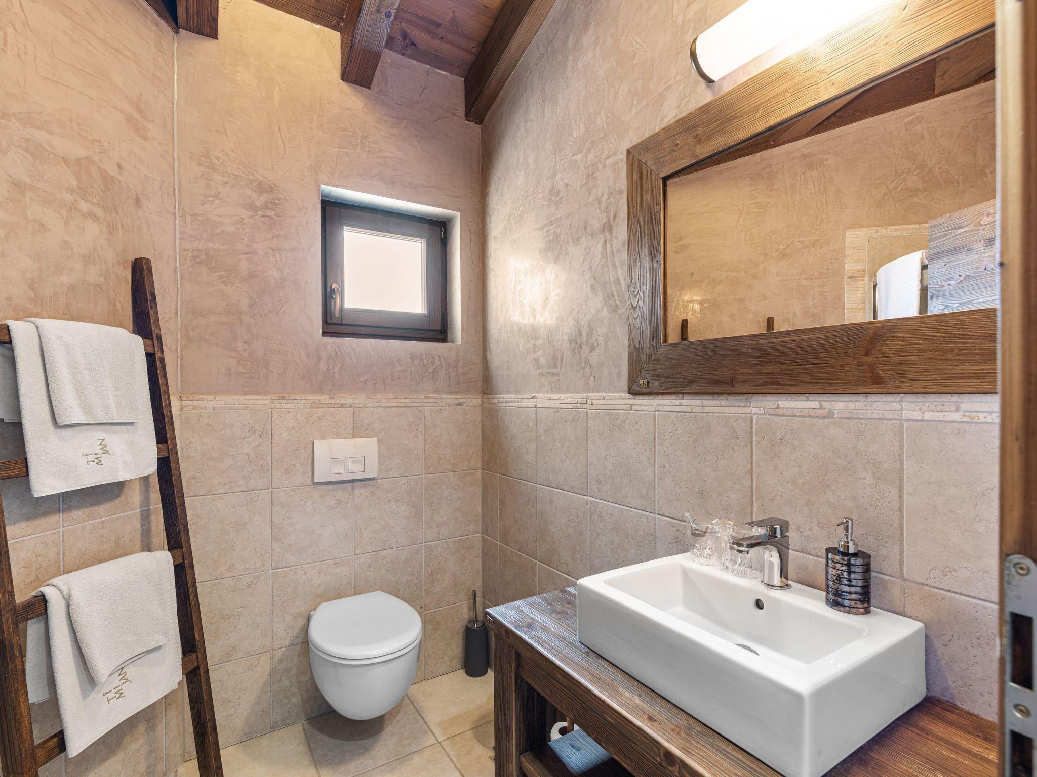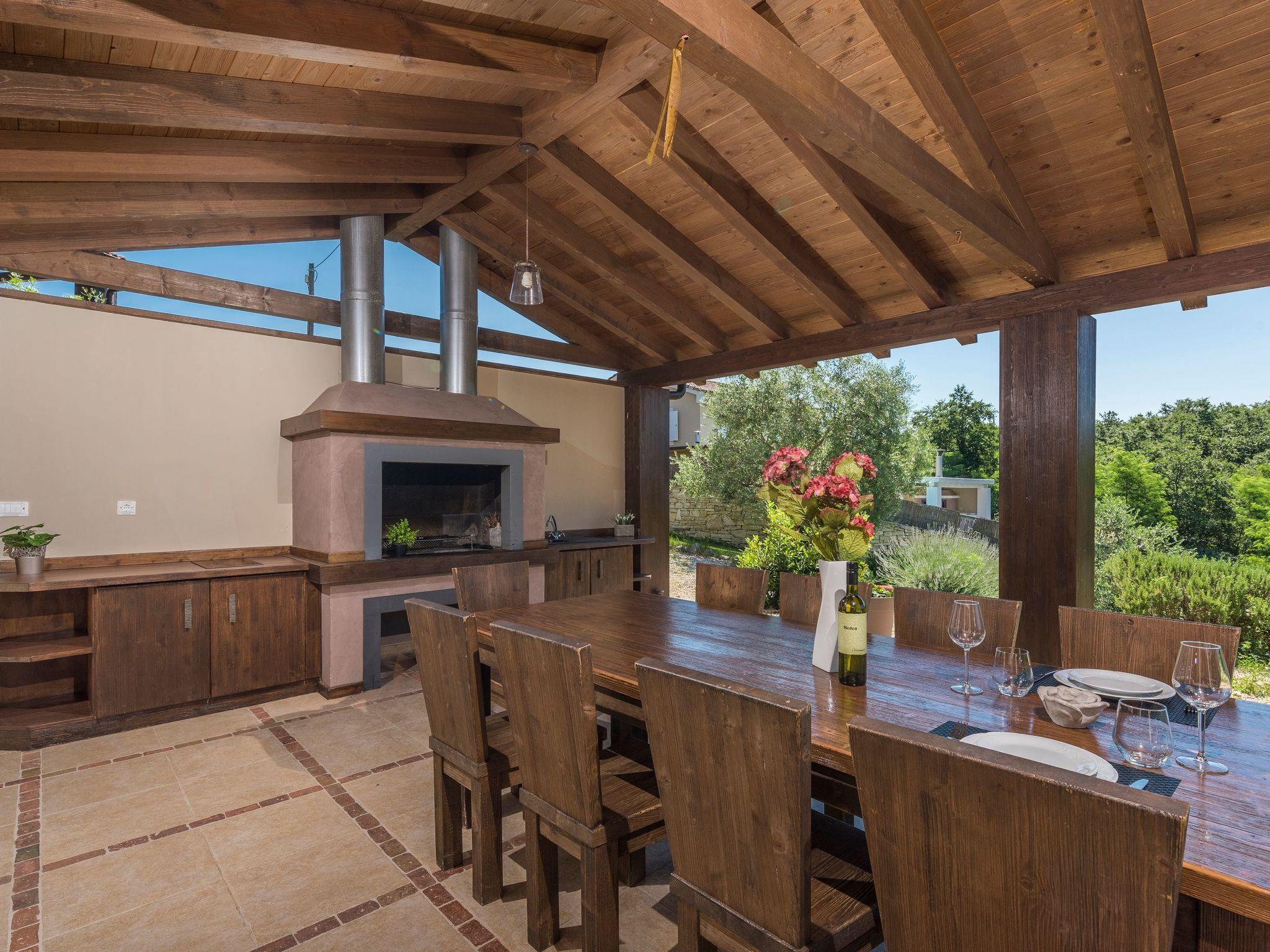 Die Innenausstattung lässt keine Wünsche offen: Eine rustikale Winkelküche, ausgestattet mit Mikrowelle, einem Backofen in Augenhöhe, Geschirrspüler und einem Luxus-Kühlschrank, bietet ideale Voraussetzungen für kulinarische Entdeckungsreisen. Die fünf behaglichen Schlafzimmer sind jeweils mit einem Doppelbett, einer Kommode, einem Kleiderschrank und einem eigenen LCD-Fernseher sowie exklusiven Bädern ausgestattet, die wahlweise mit Badewanne oder Dusche kommen, garantieren Privatsphäre und Komfort. Naturmaterialien und harmonisch abgestimmte Farbtöne unterstreichen das warme, gemütliche Ambiente der gesamten Villa, während ausgewählte Kunstgegenstände den luxuriösen Charakter betonen.