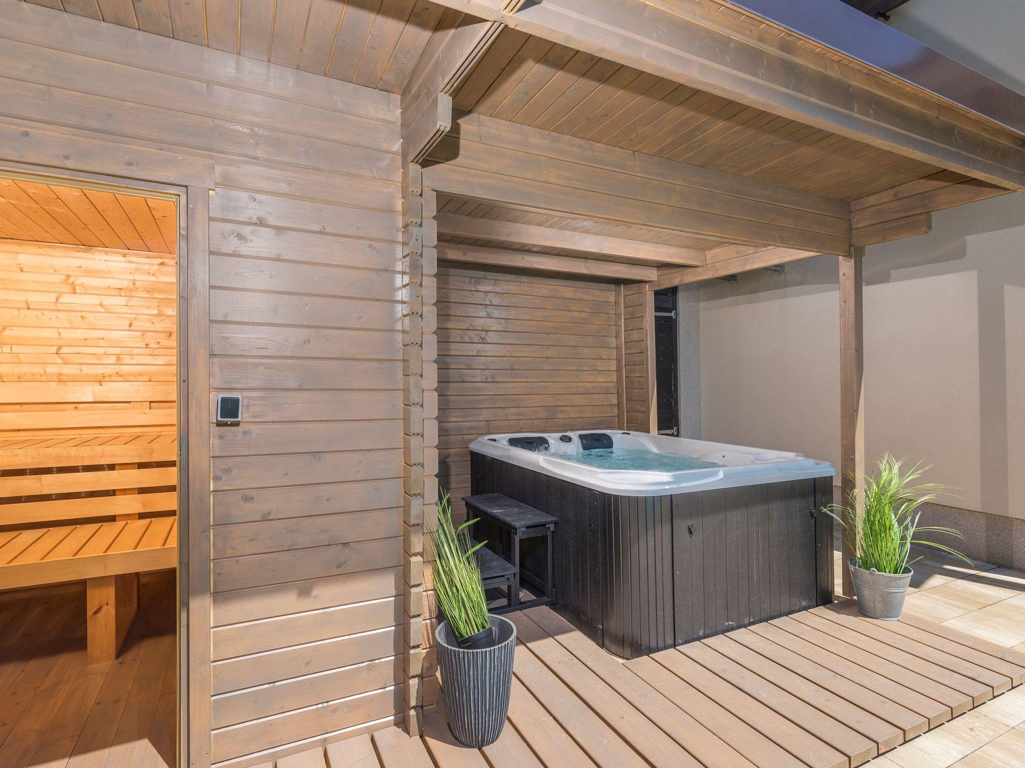 Im Außenbereich erwarten Sie pure Entspannung und Genussmomente. Die halbmondförmige Terrasse direkt am Haus lädt mit ihren gemütlichen Lounge-Möbeln zum Verweilen ein, während der 36 Quadratmeter große Pool mit Holzterrasse und bequemen Liegen den Blick aufs Grün freigibt. Eine weitere Terrasse mit Outdoor-Küche und offener Feuerstelle bietet den perfekten Rahmen für kulinarische Höhepunkte unter freiem Himmel.