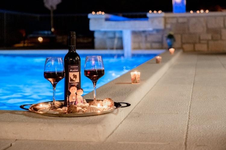 Villa Blue Sky is slocated in Bol on Island Brac. It offers two private heated outdoor swimming pools (one of them is a massage swimming pool ), large furnished terrace, sun terrace with sunbeds and parasols overlooking the Adriatic sea, BBQ facilities and summer kitchen, just perfect for a nice and relaxing family or friends vacation. Kindly note: Luggage storage before check in and after check out is available. Pets are allowed with notice. Free private parking on site, reservation is not required. This spacious three bedroom villa can comfortably accommodate up to six persons. It features free WiFi, air conditioning and cable LCD TV. The living room comes with sofa and it's combined with the fully equipped kitchen and dining area. Two private bathrooms with shower, toilet and hairdryer are at the guests disposal. Washing machine, ironing facilities, baby cot and children's high chair are at the guest disposal. Bol is situated on the southern part of the island Brac, and is the oldest town on the coast of Brac. This little town was founded long ago and became an extraordinary tourist oasis because of the wide gravel and sandy beaches which expands over 10 km and the sources of drinking water. It is not possible to avoid the Zlatni rat, certainly the most beautiful beach on the Adriatic sea, whose cape is turning one moment to one side and the other moment to the other side playing a strange game with the wind and the waves. The nearest restaurant, coffee bar, market, grocery store, pharmacy and gas station are approx. 500 m away from the property while the nearest beach is located 1 km away from the property. The nearest bus stop is 500 m away from the property. Taxi station and ''Marina Bol'' are 650 m away from the accommodation. Brac Airport is 14.5 km away from Villa Blue Sky.
