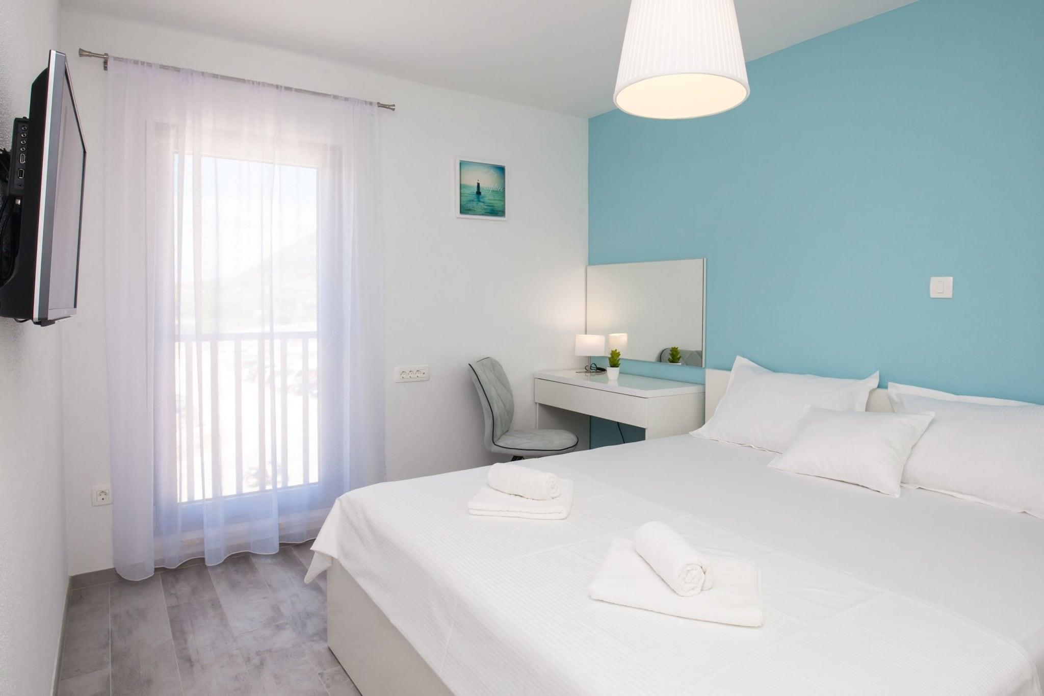 Apartments Dva Galeba are situated in Bol, a town on island of Brac, off the coast of Split. Its seafront promenade leads to the long Zlatni Rat beach. The property offer you 12 accommodation units. All units feature, free WiFi, air conditioning, Cable LCD TV, open space living room, equipped kitchen and private bathroom. Additional toilet is also available in each apartment. Some of the apartments have a furnished terrace with outdoor furniture and sunbeds. Baby cot is available. This lovely one bedroom apartment with sea view is perfectly fit for up to five people. It features free WiFi, air conditioning and LCD TV. The open space living room comes with sofa and sitting area and it is combined with the equipped kitchen and dining area. The apartment has a private bathroom with shower and hair dryer. Additional toilet is also provided. Washing machine, iron and ironing facilities are at your disposal. Due to the properties excellent location, everything you may need for a pleasant stay is in a proximate distance. The nearest restaurant can be reached in 150 m range, while the nearest cafe bar is approx. 500 n away from the property, with many more of them in the surrounding area. The grocery store and beach can be reached in 350 m range. The pharmacy is 1 km away from the property. The bus stop is 700 m away, while Brac Airport is 14 km away from the property.