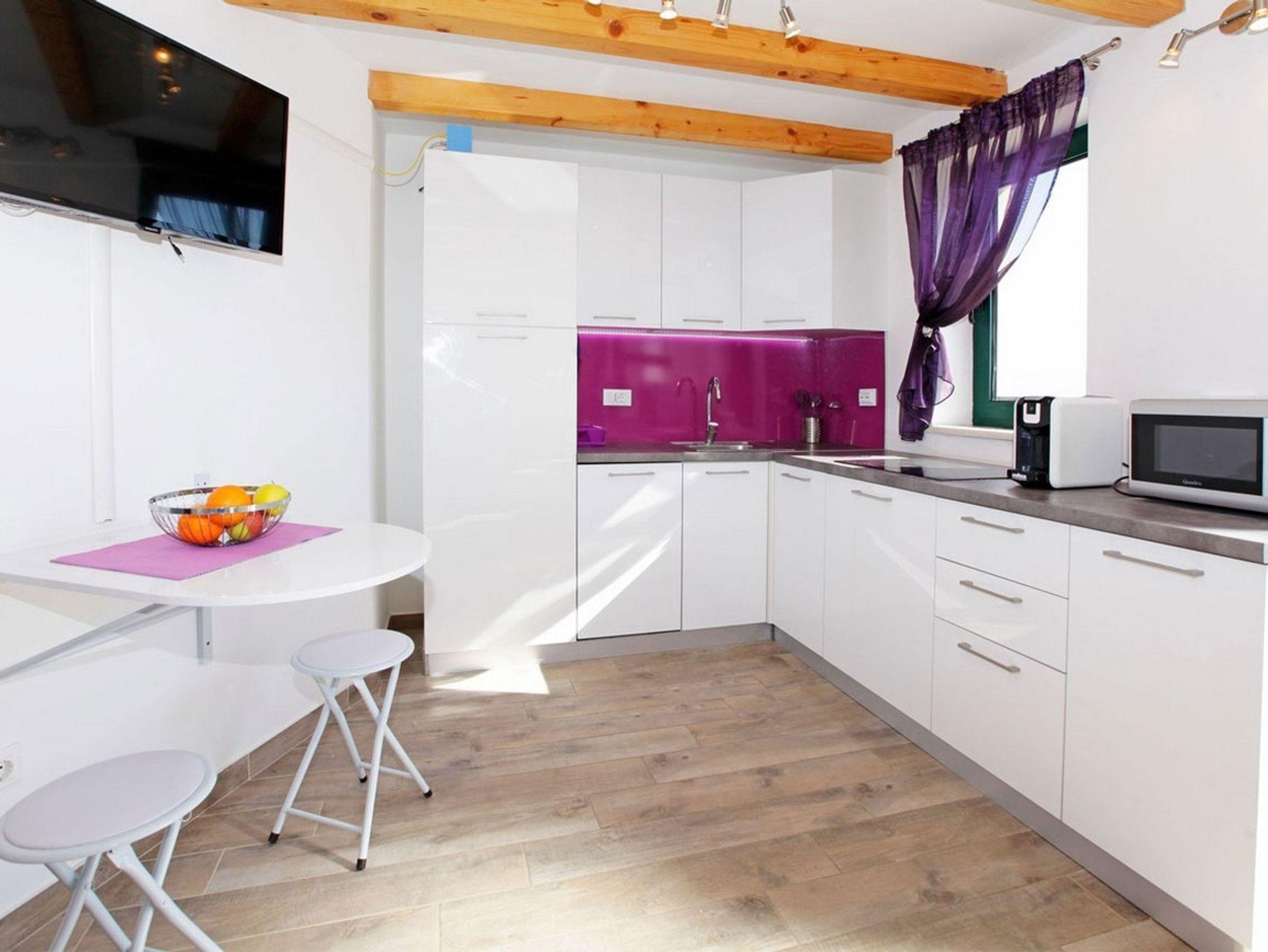 Haus bietet Platz für 4 Gäste. Die Betten sind in Schlafzimmern, die es 2 gibt, innerhalb einer Gesamtfläche von 37m2, angeordnet. Die Gäste haben eine eigene Terrasse zur Verfügung, auf der sie in warmen Sommernächten genießen können. Das Haus bietet Meerblick. Für vollen Genuss und Entspannung gibt es einen privaten Grill für Gäste dieser Unterkunft. Während ihres Aufenthalts können sich Gäste im privaten Schwimmbad entspannen. Räume der gebuchten Unterkunftseinheit werden nicht in eine Ganze verbunden. IM PREIS INBEGRIFFEN: Kurtaxe, Endreinigung, Klimatisierung, Pool, Parkplatz, Internet, Kinderbett, Bügeleisen, Bügelbrett, Föhn. Die Verfügbarkeit zusätzlicher Dienstleistungen in Ihrem reservierten Termin und die Preise derselben (falls nicht aufgeführt) müssen im Voraus überprüft werden. Zusätzliche Dienstleistungen die in der Zahlungsaufforderung nicht aufgeführt sind werden direkt beim Vermieter bezahlt, angenommen der Gast nutzt auch diese. Ermäßigung auf den Grundpreis: Gratistag 14=13 (bei einem Aufenthalt von 14 Tagen oder mehr erhalten Sie einen Gratistag für den Aufenthalt bis 31.12.26).
