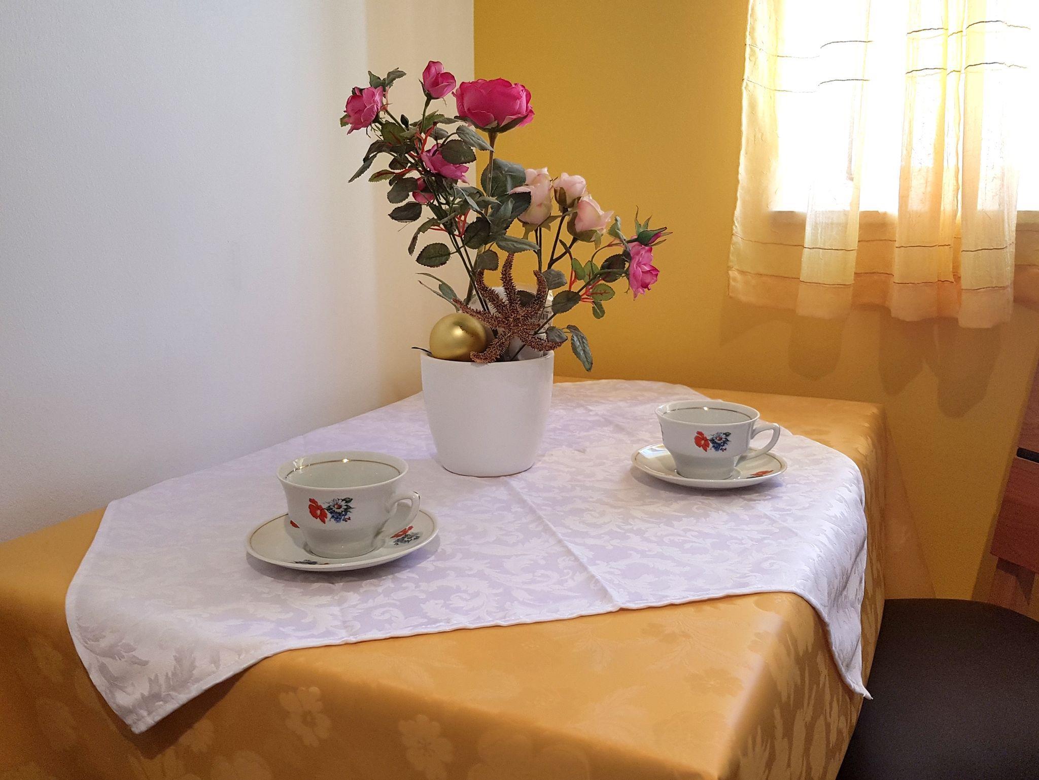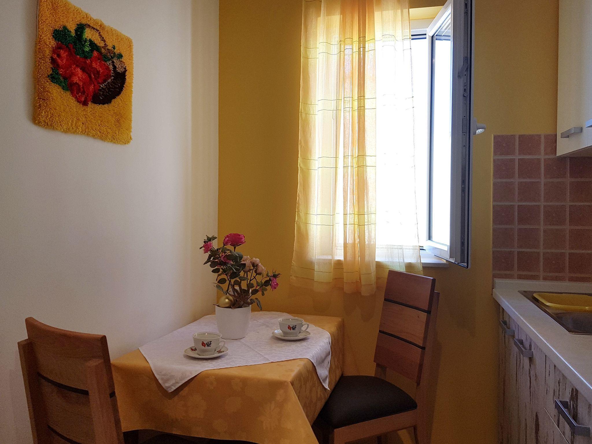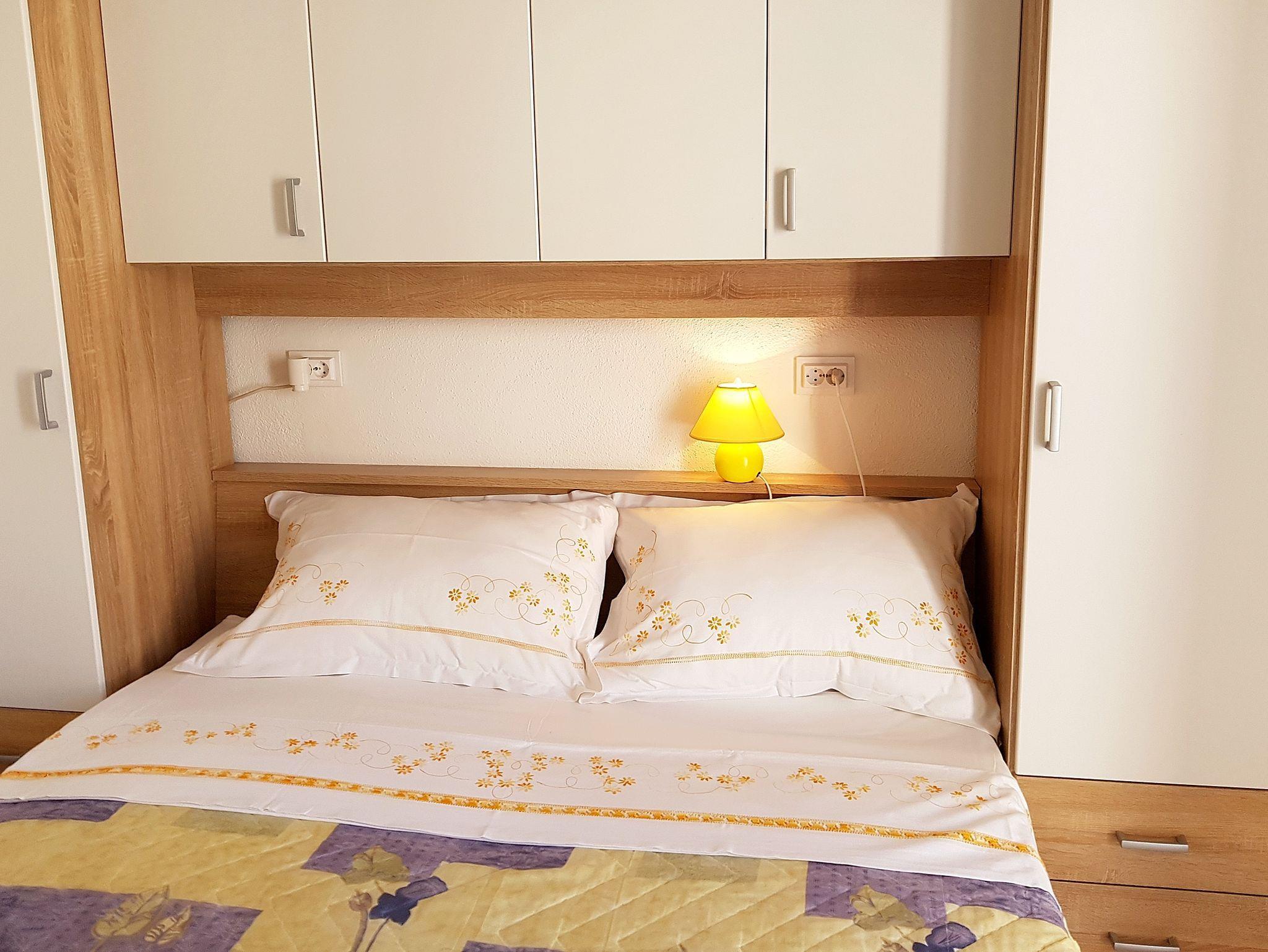 Ferienwohnung bietet Platz für 2 Gäste. Die Betten sind in Schlafzimmern, die es 1 gibt, innerhalb einer Gesamtfläche von 21m2, angeordnet. Die Gäste haben einen eigenen Balkon zur Verfügung, auf der sie in warmen Sommernächten genießen können. Das Apartment bietet Meerblick. Es ist erlaubt, Speisen auf dem Gemeinschafts-Grill vorzubereiten. IM PREIS INBEGRIFFEN: Kurtaxe, Endreinigung, Klimatisierung, Parkplatz, Internet, Zusatzbett. VERBINDLICHE ZUSÄTZLICHE KOSTEN: Aufzahlung für Kurzaufenthalte (prozentualer Zuschlag pro Nächtigungsanzahl: 30% - 1, 20% - 2, 10% - 3). Die Verfügbarkeit zusätzlicher Dienstleistungen in Ihrem reservierten Termin und die Preise derselben (falls nicht aufgeführt) müssen im Voraus überprüft werden. Zusätzliche Dienstleistungen die in der Zahlungsaufforderung nicht aufgeführt sind werden direkt beim Vermieter bezahlt, angenommen der Gast nutzt auch diese.