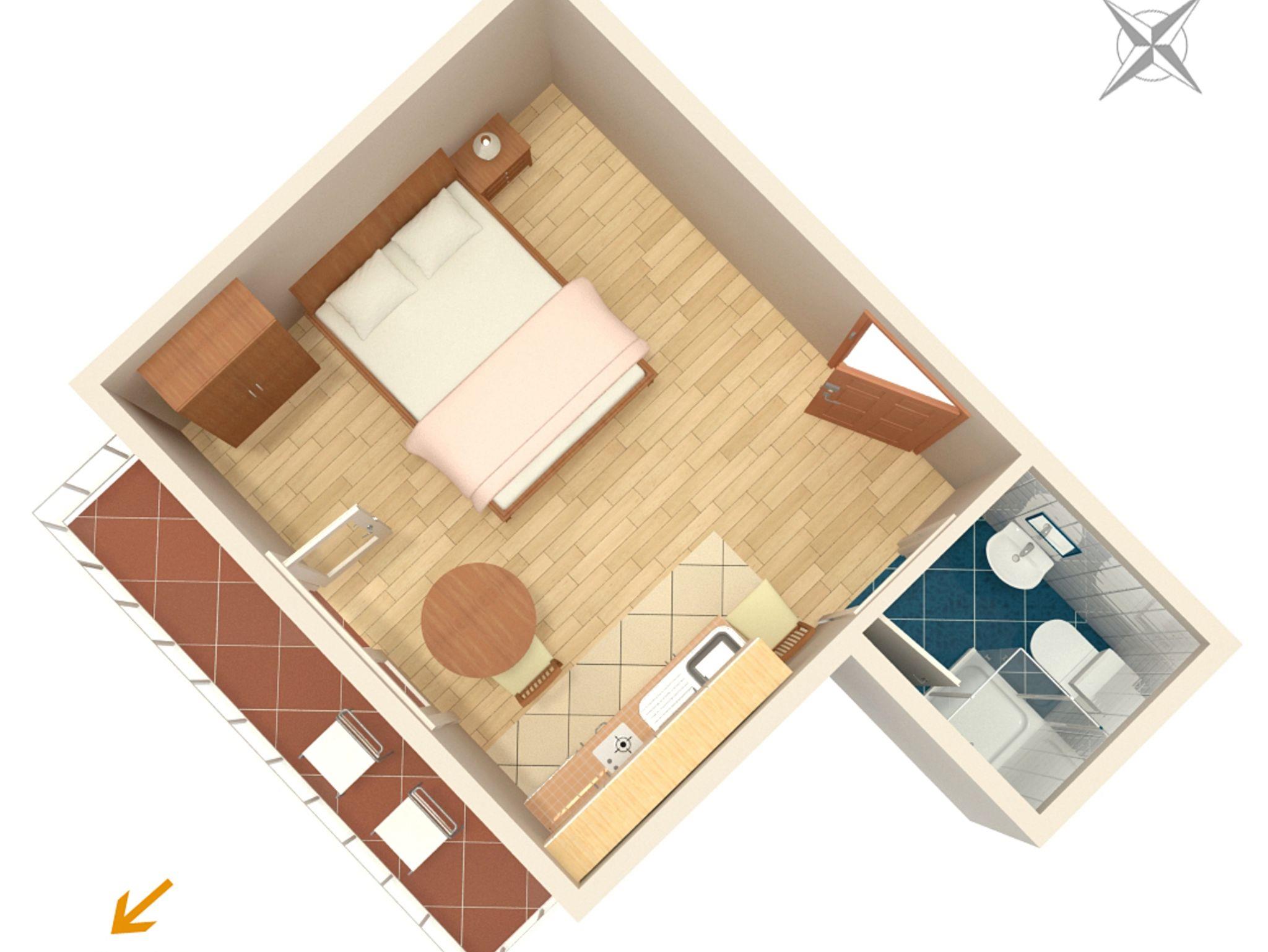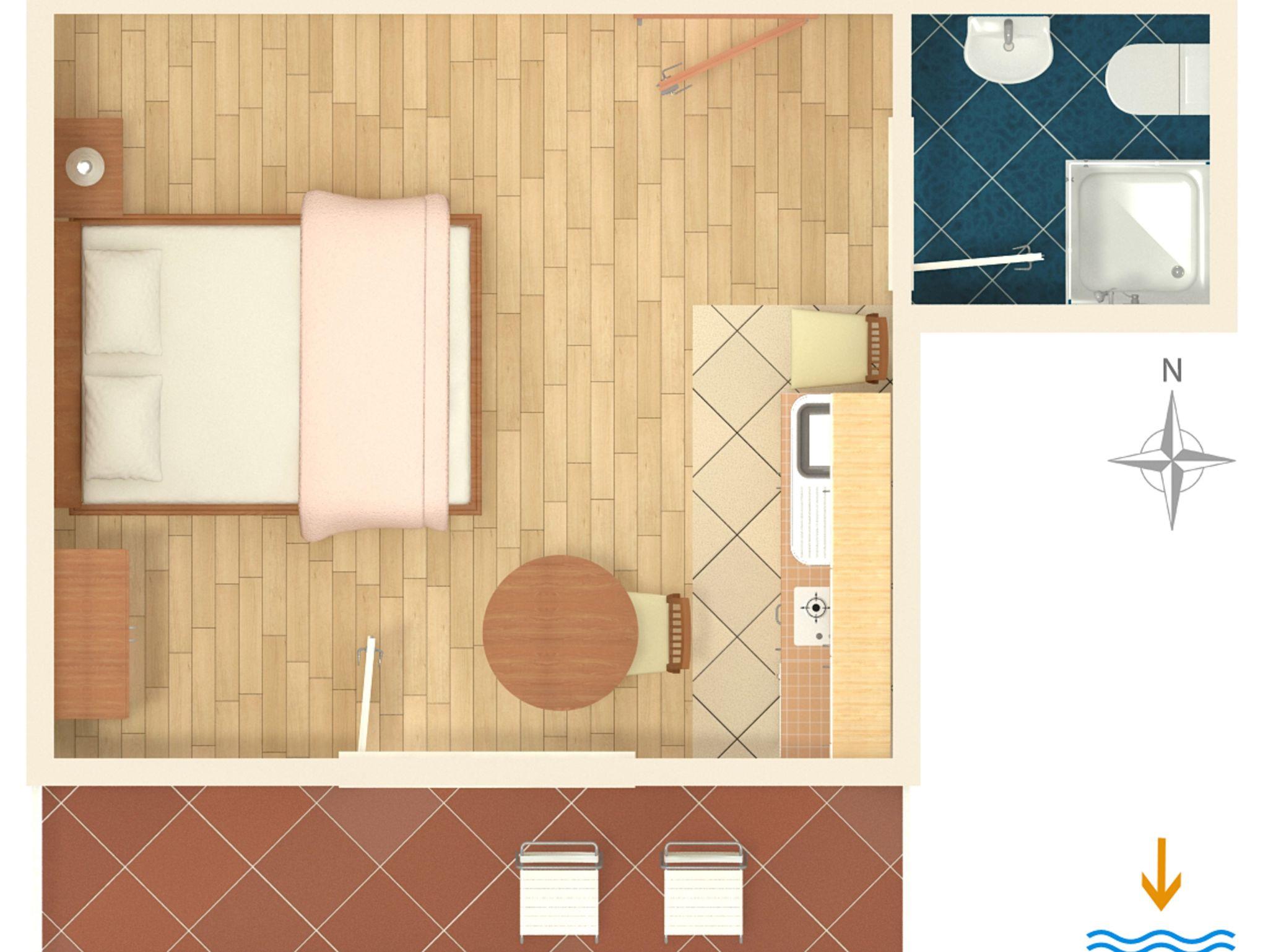 Studio bietet Platz für 2 Gäste. Die Betten sind in Schlafzimmern, die es 1 gibt, innerhalb einer Gesamtfläche von 16m2, angeordnet. Die Gäste haben einen eigenen Balkon zur Verfügung, auf der sie in warmen Sommernächten genießen können. Das Studio-Apartment bietet Meerblick. IM PREIS INBEGRIFFEN: Kurtaxe, Endreinigung, Klimatisierung, Parkplatz, Internet, Kinderbett, Bügeleisen, Föhn, Sonnenschirm. VERBINDLICHE ZUSÄTZLICHE KOSTEN: Aufzahlung für Kurzaufenthalte (prozentualer Zuschlag pro Nächtigungsanzahl: 30% - 1, 20% - 2, 10% - 3). UNVERBINDLICHE ZUSÄTZLICHE KOSTEN: Wäschewaschen (5,00 € Waschen). Die Verfügbarkeit zusätzlicher Dienstleistungen in Ihrem reservierten Termin und die Preise derselben (falls nicht aufgeführt) müssen im Voraus überprüft werden. Zusätzliche Dienstleistungen die in der Zahlungsaufforderung nicht aufgeführt sind werden direkt beim Vermieter bezahlt, angenommen der Gast nutzt auch diese.