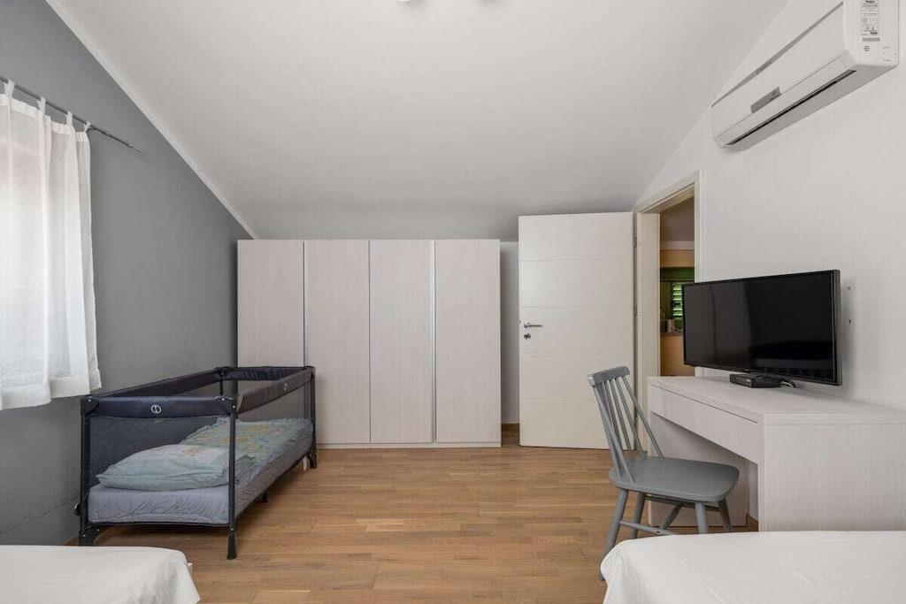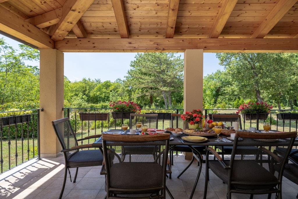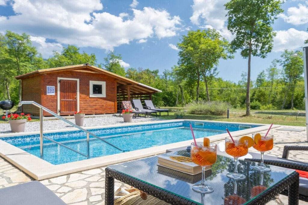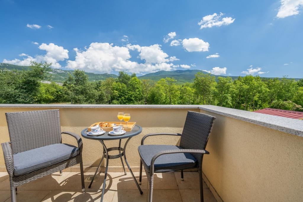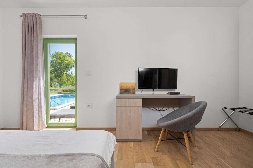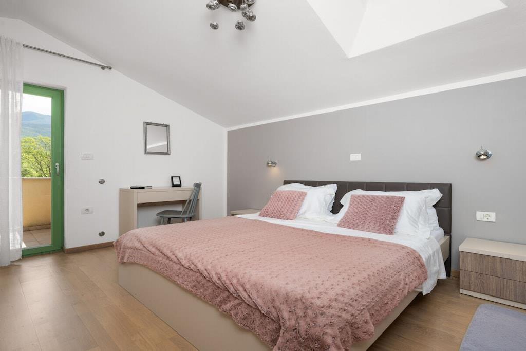 Dies ist neu gebaut - schöne Istrian Villa mit privatem Pool für 6-8 Personen. Fertiggestellt im August 2016. Ideal für Familie oder Freunde. Es befindet sich in einem Teil des großen privaten Eigentums von 40000 m² in Eingang des Naturparks Ucka. Villa ist voll klimatisiert. Freuen Sie sich auf kostenfreies WLAN und Privatparkplätze am Haus. Handtücher und Bettwäsche werden in dieser Unterkunft zur Selbstverpflegung angeboten. Es gibt 3 Schlafzimmer, 2 Bäder und 1 Toilette, voll ausgestattete Küche, ein großes Wohnzimmer und Esszimmer-verbunden mit der Terrasse und dem Poolbereich. Großer Garten mit Trampolin, Kinderspielplatz und Fahrrädern und Spielzeug zur Verfügung.