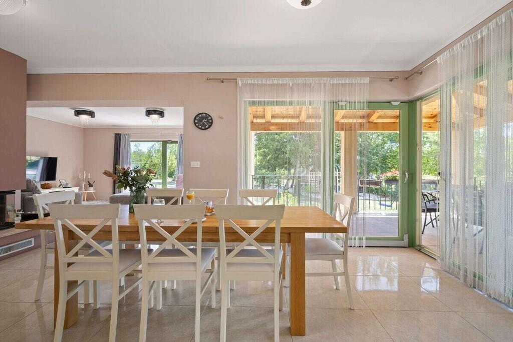 Parterre: (Wohnzimmer(, , , TV, TV, Kaminofen, Radio, Klimaanlage), Esszimmer(, , , , Zentraler Grill, Liegewiese, TV, TV, Esstisch, Kaminofen, Kaminofen, Toaster, Toaster, Kaffeemaschine, Grill, Mikrowelle, Spülmaschine, Kühlschrank, Tiefkühlschrank, Tiefkühlschrank, Klimaanlage, Gartenmöbel, Trampolin, Rutsche, Hochstuhl), Küche(, , , Kochnische, Herd, Kochplatte, Wasserkocher, Toaster, Toaster, Kochherd, Kochherd, Kaffeemaschine, Backofen, Mikrowelle, Spülmaschine, Kühlschrank, Tiefkühlschrank, Klimaanlage), Schlafzimmer(, , , , Doppelbett, Doppelbett, TV, Klimaanlage, Föhn), Badezimmer(, , Toilette, Toilette, Dusche, Waschbecken, Klimaanlage, Föhn), guest toilet(, Toilette, Waschbecken, Waschmaschine, Föhn)) In der 1. Etage: (Schlafzimmer(, , Einzelbett, Einzelbett, Schrankbett 1 Person, Schrankbett 1 Person, TV, TV, Klimaanlage), Schlafzimmer(, , Doppelbett king size, TV, TV, Radio, Klimaanlage), Badezimmer(, , , Toilette, Badewanne, Waschbecken, Waschbecken, Bidet, Klimaanlage, Föhn)) , Internet, Internet, Erste-Hilfe-Station, Waschmaschine, Balkon(Gartenmöbel), Terrasse(Strand, Gartenmöbel, Liegen, Schaukel), Terrasse(Strand, Gartenmöbel, Liegen, Schaukel), Garten(Zentraler Grill, Strand, Liegewiese, Gartenmöbel, Trampolin, Pool, Rutsche, Gartenhaus, Schaukel), Parkplatz, Bügelbrett, Bügeleisen