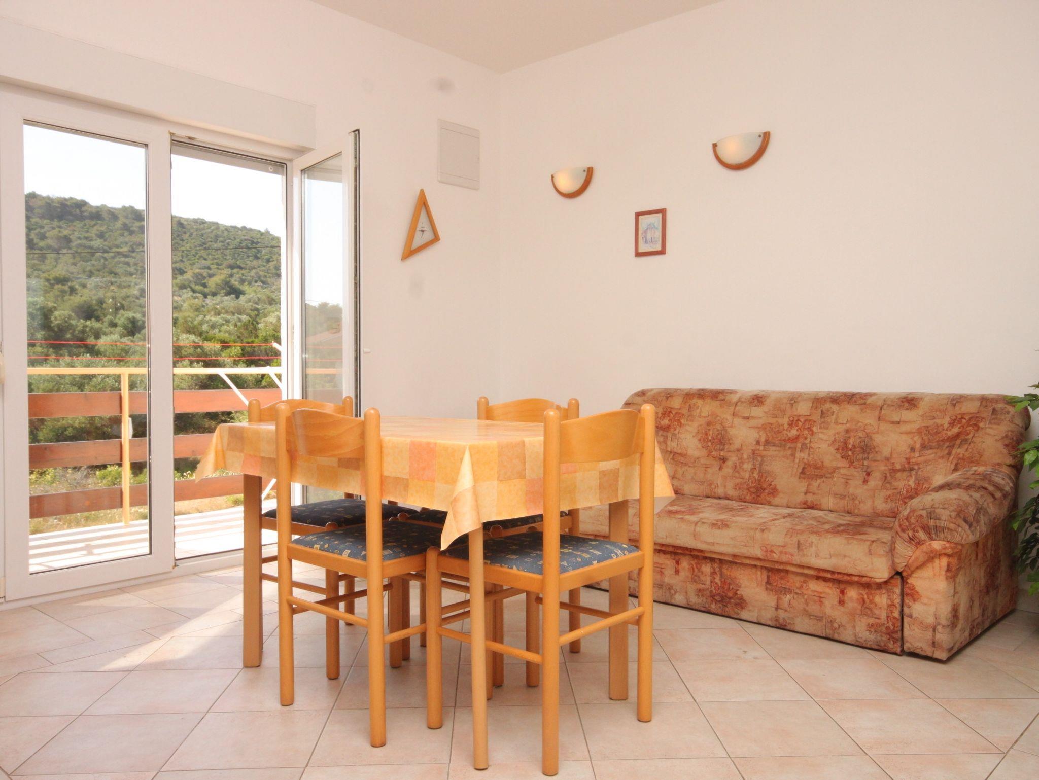 Ferienwohnung bietet Platz für 5 Gäste. Die Betten sind in Schlafzimmern, die es 2 gibt, und in Esszimmer, innerhalb einer Gesamtfläche von 44m2, angeordnet. Die Gäste haben einen eigenen Balkon zur Verfügung, auf der sie in warmen Sommernächten genießen können. Das Apartment bietet Meerblick. Es ist erlaubt, Speisen auf dem Gemeinschafts-Grill vorzubereiten. In der Unterkunftseinheit besteht die Möglichkeit des Mitbringens von Haustieren gegen Aufpreis. IM PREIS INBEGRIFFEN: Kurtaxe, Endreinigung, Klimatisierung, Parkplatz, Internet, Kinderbett. VERBINDLICHE ZUSÄTZLICHE KOSTEN: Aufzahlung für Kurzaufenthalte (prozentualer Zuschlag pro Nächtigungsanzahl: 30% - 1, 20% - 2, 10% - 3). UNVERBINDLICHE ZUSÄTZLICHE KOSTEN: Haustiere (8,00 € pro Nacht). Die Verfügbarkeit zusätzlicher Dienstleistungen in Ihrem reservierten Termin und die Preise derselben (falls nicht aufgeführt) müssen im Voraus überprüft werden. Zusätzliche Dienstleistungen die in der Zahlungsaufforderung nicht aufgeführt sind werden direkt beim Vermieter bezahlt, angenommen der Gast nutzt auch diese.