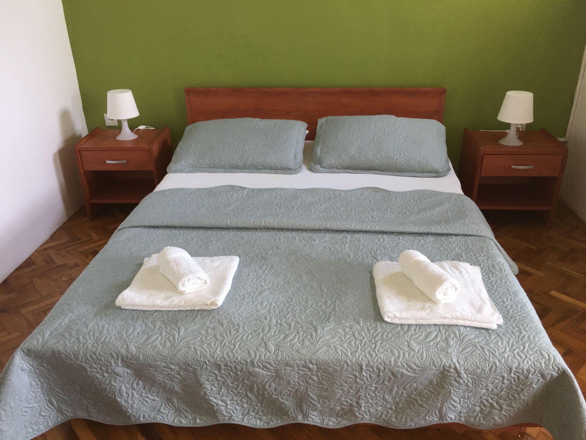 Studio bietet Platz für 2 Gäste. Die Betten sind in Schlafzimmern, die es 1 gibt, innerhalb einer Gesamtfläche von 23m2, angeordnet. Die Gäste haben eine eigene Terrasse zur Verfügung, auf der sie in warmen Sommernächten genießen können. Es ist erlaubt, Speisen auf dem Gemeinschafts-Grill vorzubereiten. In der Unterkunftseinheit besteht die Möglichkeit des Mitbringens von Haustieren gegen Aufpreis. IM PREIS INBEGRIFFEN: Kurtaxe, Endreinigung, Klimatisierung, Parkplatz, Internet, Bügeleisen, Bügelbrett, Föhn. VERBINDLICHE ZUSÄTZLICHE KOSTEN: Aufzahlung für Kurzaufenthalte (prozentualer Zuschlag pro Nächtigungsanzahl: 30% - 1, 20% - 2, 10% - 3). UNVERBINDLICHE ZUSÄTZLICHE KOSTEN: Haustiere (5,00 € pro Nacht), Zusatzbett (5,00 € pro Nacht). Die Verfügbarkeit zusätzlicher Dienstleistungen in Ihrem reservierten Termin und die Preise derselben (falls nicht aufgeführt) müssen im Voraus überprüft werden. Zusätzliche Dienstleistungen die in der Zahlungsaufforderung nicht aufgeführt sind werden direkt beim Vermieter bezahlt, angenommen der Gast nutzt auch diese.
