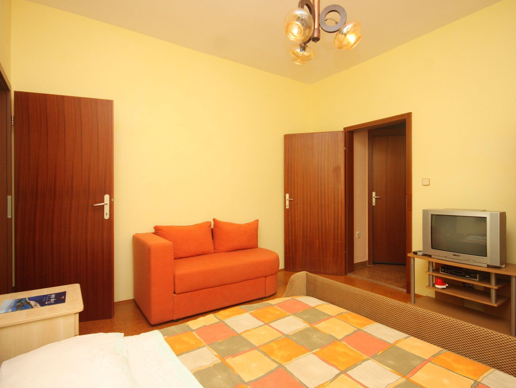 Ferienwohnung bietet Platz für 3 Gäste. Die Betten sind in Schlafzimmern, die es 1 gibt, innerhalb einer Gesamtfläche von 27m2, angeordnet. Die Gäste haben eine eigene Terrasse zur Verfügung, auf der sie in warmen Sommernächten genießen können. Es ist erlaubt, Speisen auf dem Gemeinschafts-Grill vorzubereiten. In der Unterkunftseinheit besteht die Möglichkeit des Mitbringens von Haustieren gegen Aufpreis. IM PREIS INBEGRIFFEN: Kurtaxe, Endreinigung, Klimatisierung, Parkplatz, Internet, Kinderbett, Bügeleisen, Föhn. VERBINDLICHE ZUSÄTZLICHE KOSTEN: Aufzahlung für Kurzaufenthalte (prozentualer Zuschlag pro Nächtigungsanzahl: 30% - 1, 20% - 2, 10% - 3). UNVERBINDLICHE ZUSÄTZLICHE KOSTEN: Haustiere (5,00 € pro Nacht). Die Verfügbarkeit zusätzlicher Dienstleistungen in Ihrem reservierten Termin und die Preise derselben (falls nicht aufgeführt) müssen im Voraus überprüft werden. Zusätzliche Dienstleistungen die in der Zahlungsaufforderung nicht aufgeführt sind werden direkt beim Vermieter bezahlt, angenommen der Gast nutzt auch diese.