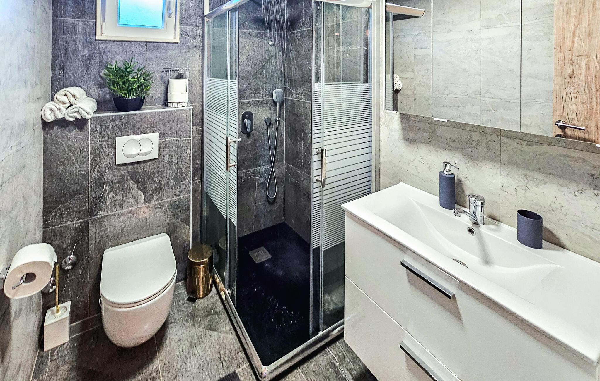 Badezimmer 4m2 (nr. 1) - WC. Warmes und kaltes Wasser. Dusche
