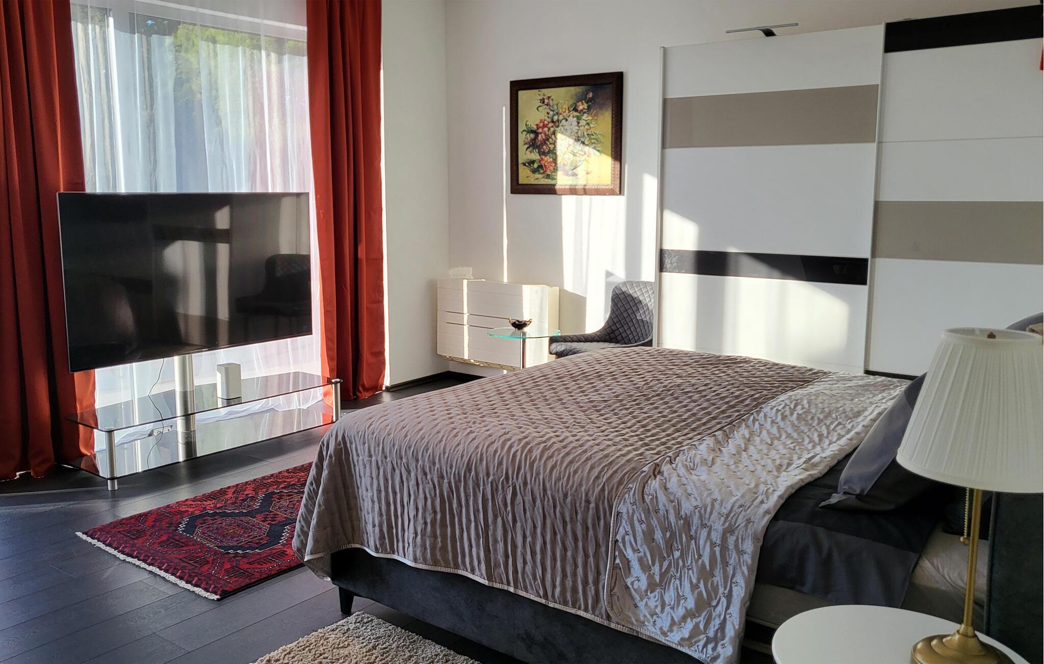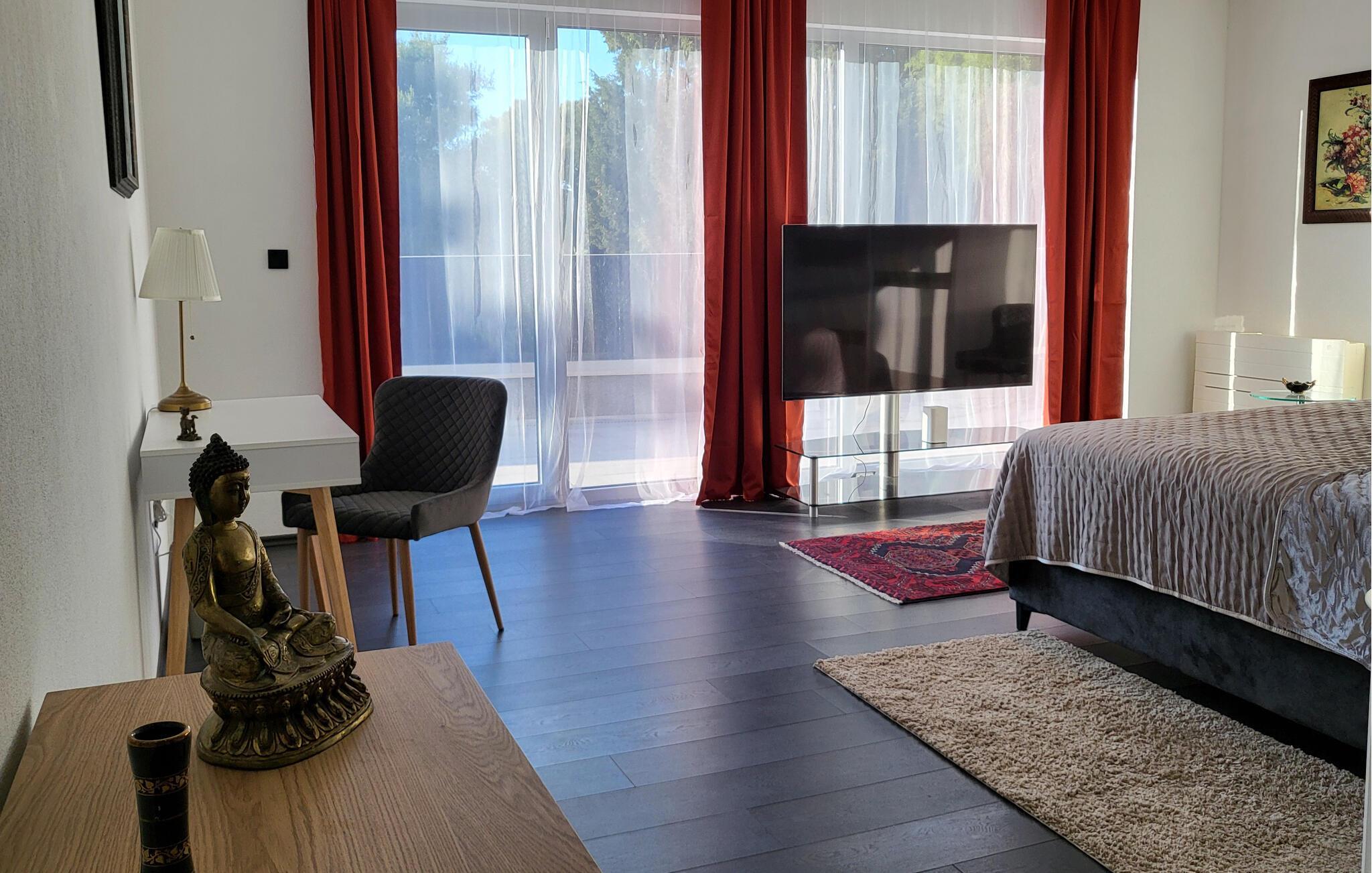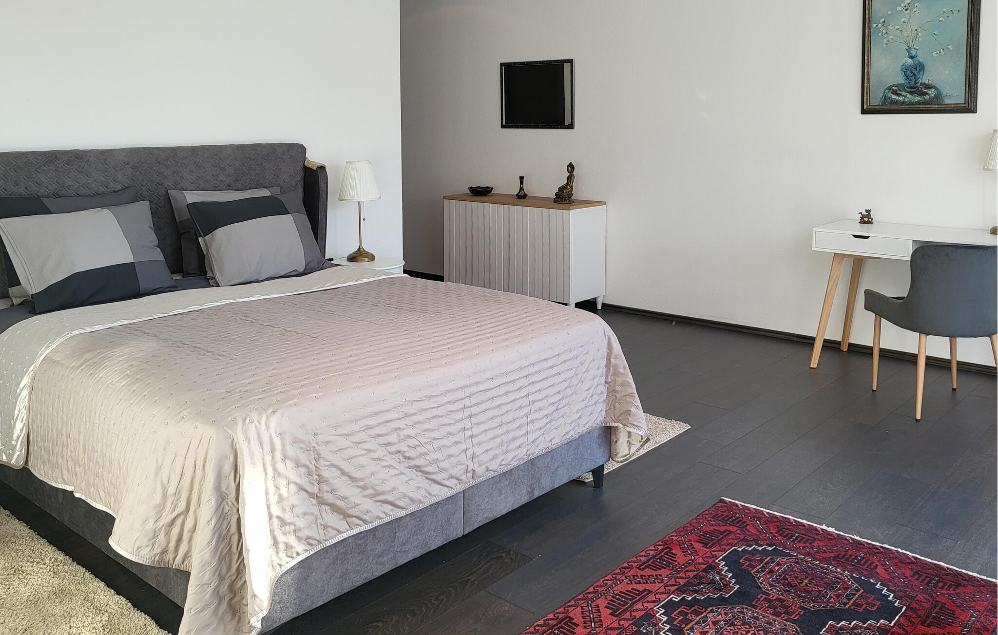 Buchen Sie eine luxuriöse Auszeit in dieser komfortablen Ferienwohnung mit Meerblick.