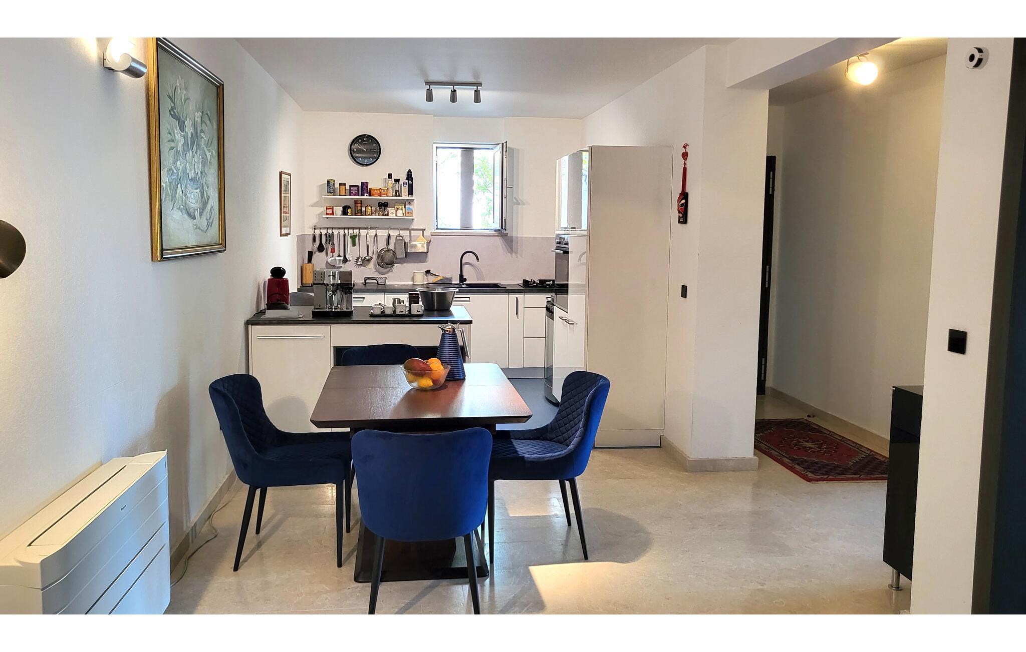 Willkommen in dieser modernen Ferienwohnung auf der Insel Brac, die durch ihren eleganten Einrichtungsstil und zeitlose Ästhetik besticht. Verbringen Sie entspannte Stunden im lichtdurchfluteten Wohnzimmer, genießen Sie einen Film auf dem großen Smart-TV oder zaubern Sie kulinarische Köstlichkeiten in der perfekt ausgestatteten Küche. Lassen Sie den Abend bei einem Glas Wein im gemütlichen Essbereich ausklingen und genießen Sie die stilvolle Atmosphäre.