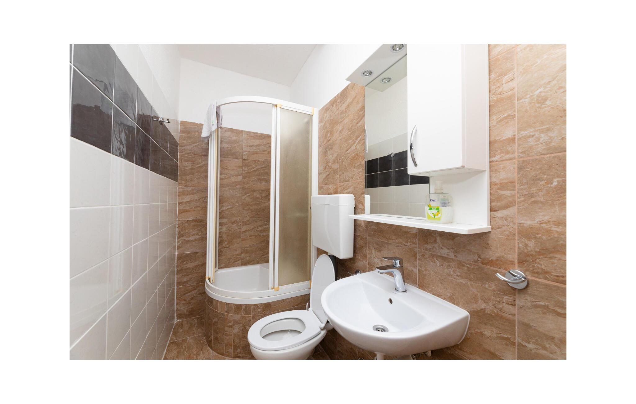 Badezimmer 4m2 (nr. 1) - WC. Warmes und kaltes Wasser. Dusche
