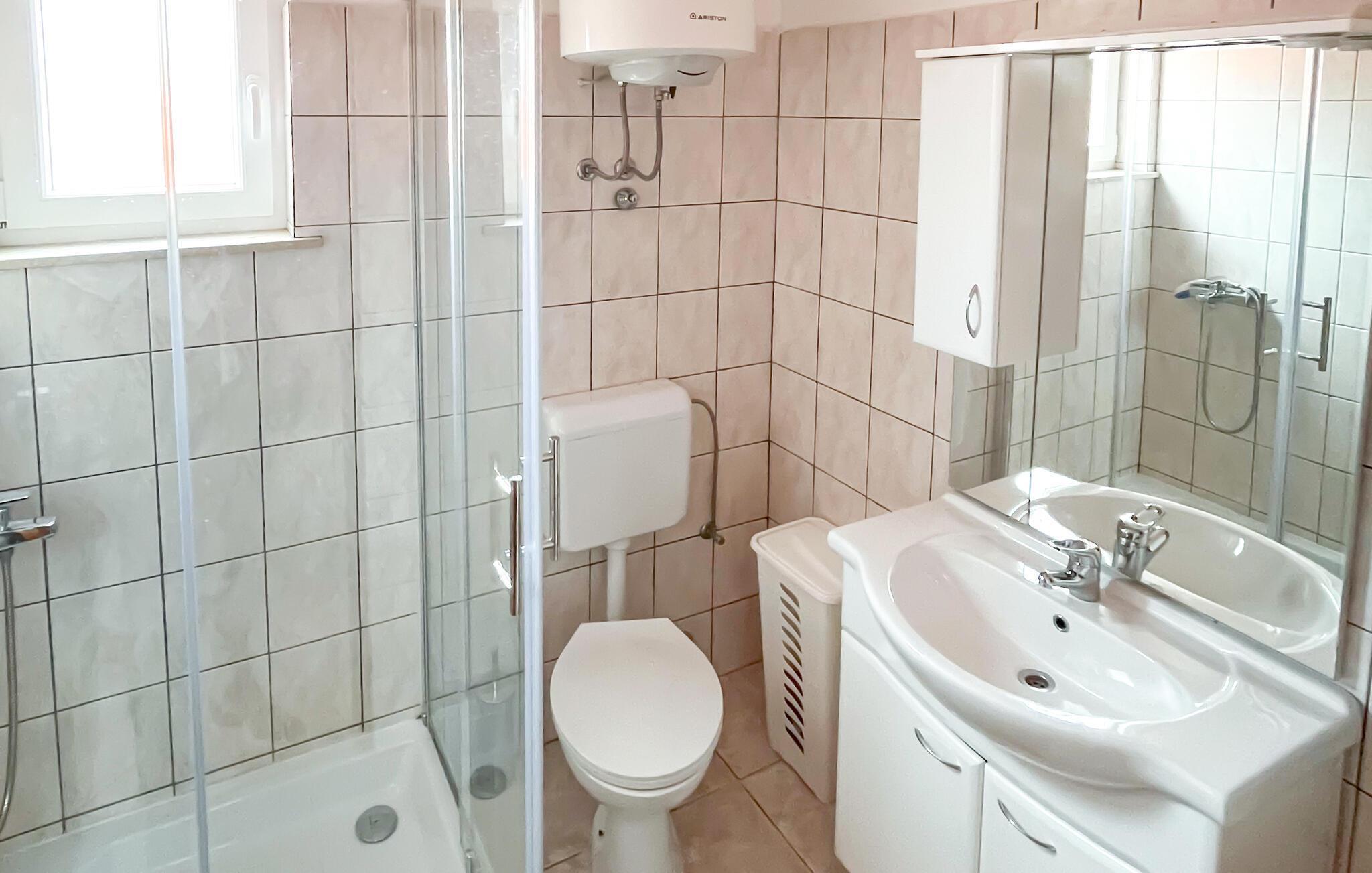 Badezimmer 7m2 (nr. 1) - WC. Warmes und kaltes Wasser. Dusche