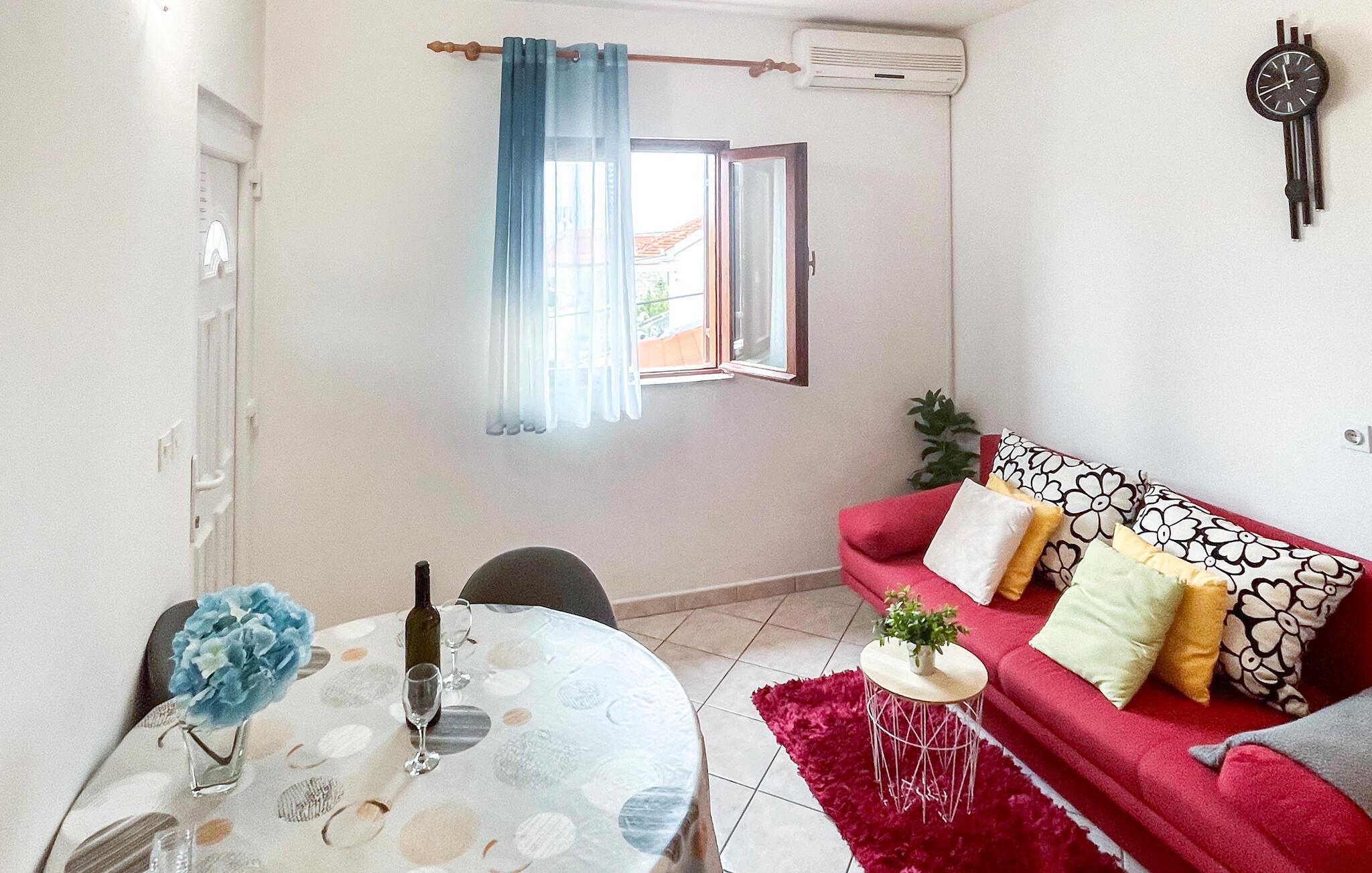 Diese freundliche Wohnung ist der ideale Rückzugsort für eine entspannte Auszeit vom Alltag. Ein farbenfrohes Sofa und eine praktische Küche sorgen für eine Atmosphäre, in der Sie schnell zur Ruhe kommen. Egal ob Sie die neuesten Hits der Charts hören, Ihre Lieblingsmahlzeit zubereiten oder einfach den Blick aufs Meer genießen, hier bestimmen Sie den Rhythmus Ihres Tages.