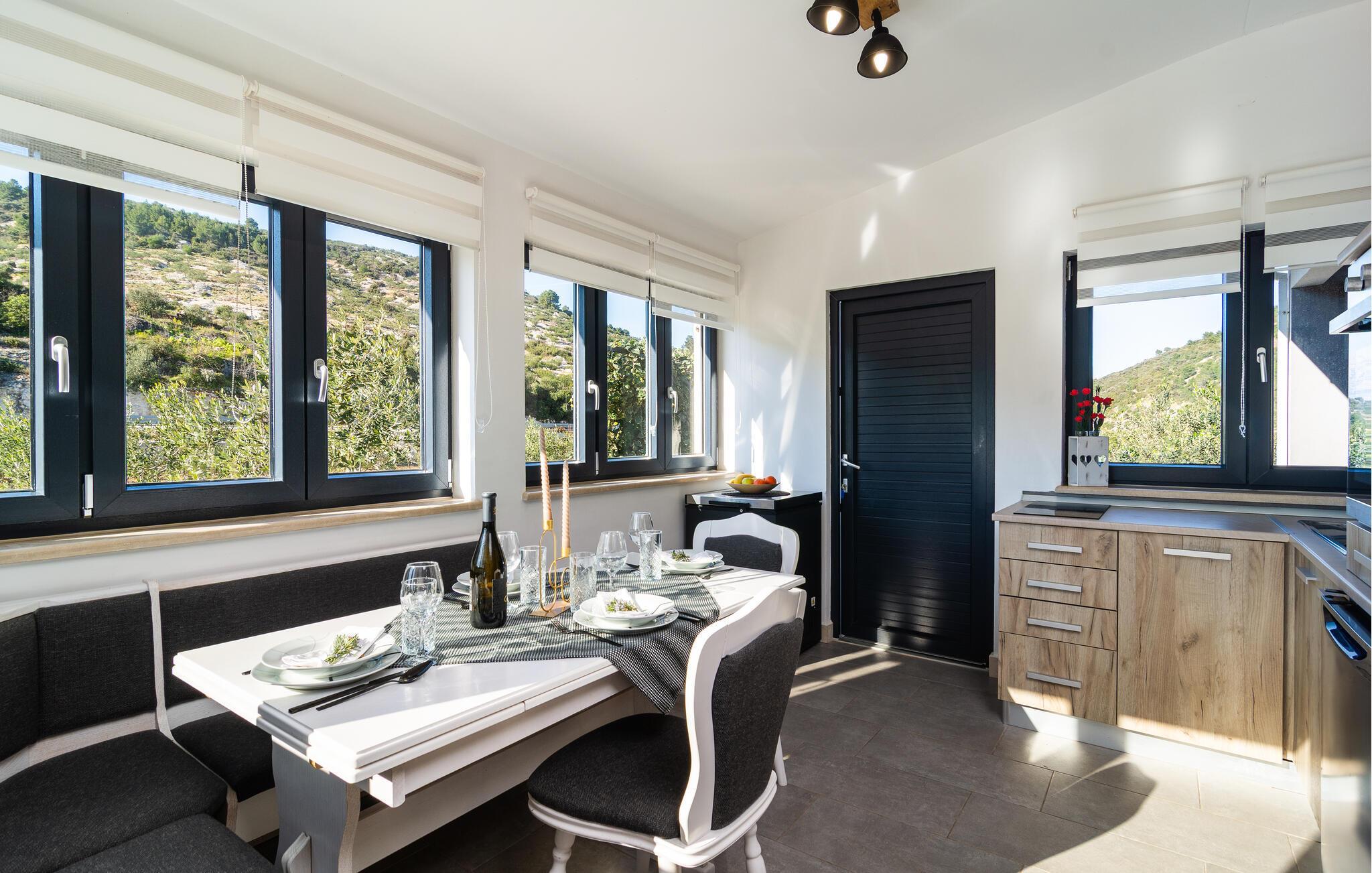 Dieses charmante Ferienhaus in Dol auf der Insel Brac ist der perfekte Rückzugsort für Paare und kleine Gruppen, die Ruhe und Privatsphäre suchen. Die ansprechend gestalteten Innenräume strahlen Gemütlichkeit aus, während die hochwertige Ausstattung für hohen Komfort sorgt.
