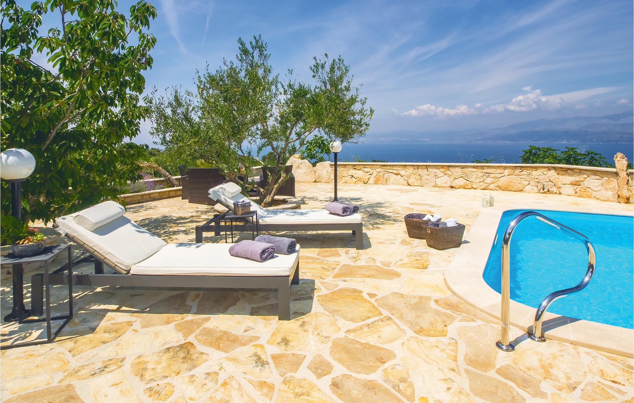 Verbringen Sie angenehme und entspannende Momente in diesem schön eingerichteten und gut ausgestatteten Ferienhaus mit Pool. Haus in Hanglage oberhalb von Supetar auf der Insel Brac. Von der Terrasse bietet sich ein schöner Meerblick und hier werden Sie unvergessliche Sonnenuntergänge erleben. Das Haus besteht aus zwei Wohneinheiten (Innentreppe). Dachschräge auf 120 cm. Supetar ist das Kultur-, Verkehrs- und Unterhaltungszentrum der Insel, einer Insel mit vielen schönen Stränden. Wanderer und Radfahrer erwarten auf der Insel viele Wege. Unternehmen Sie einen Tagesausflug zum bekannten Strand Zlatni Rat bei Bol.