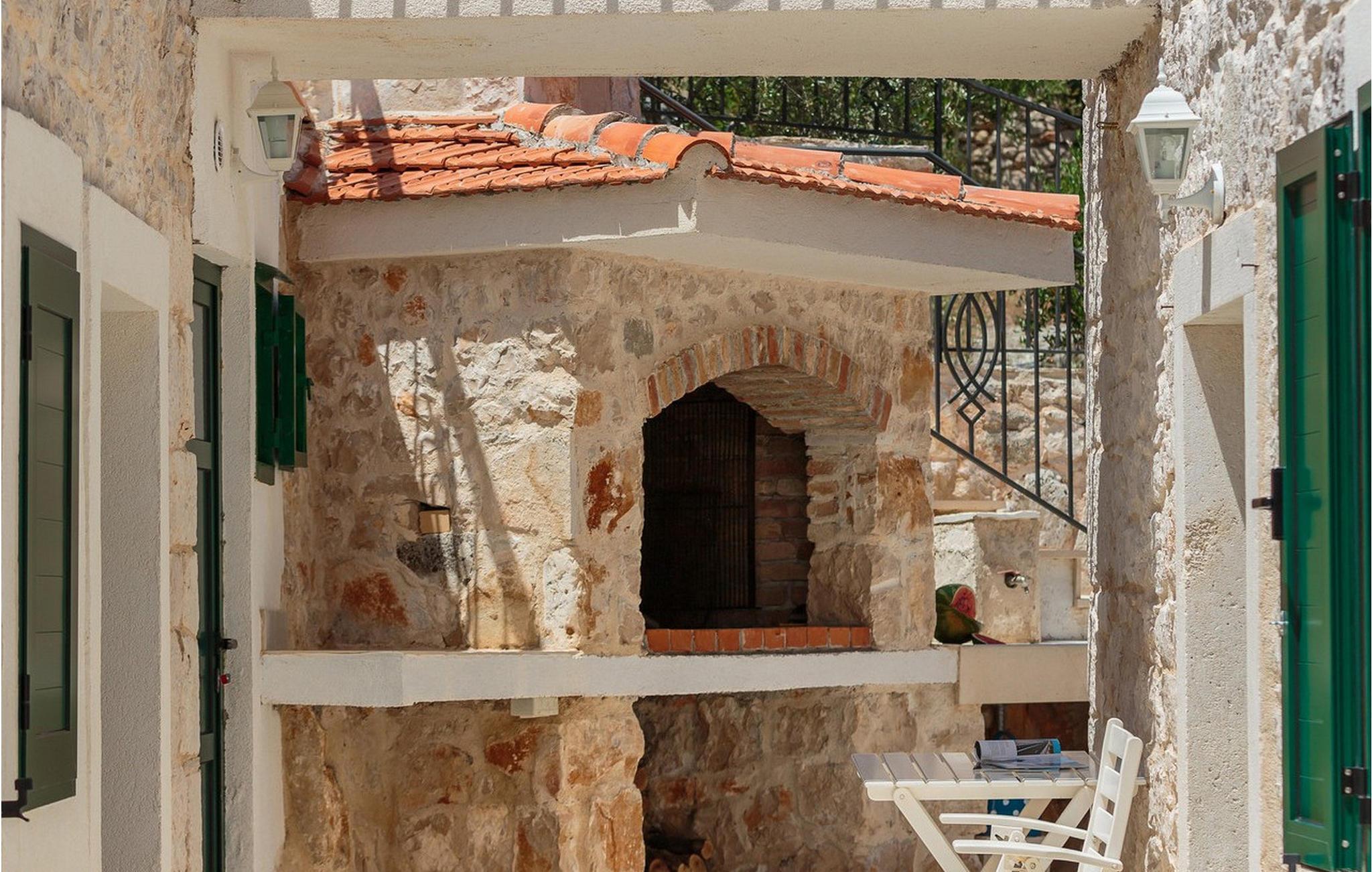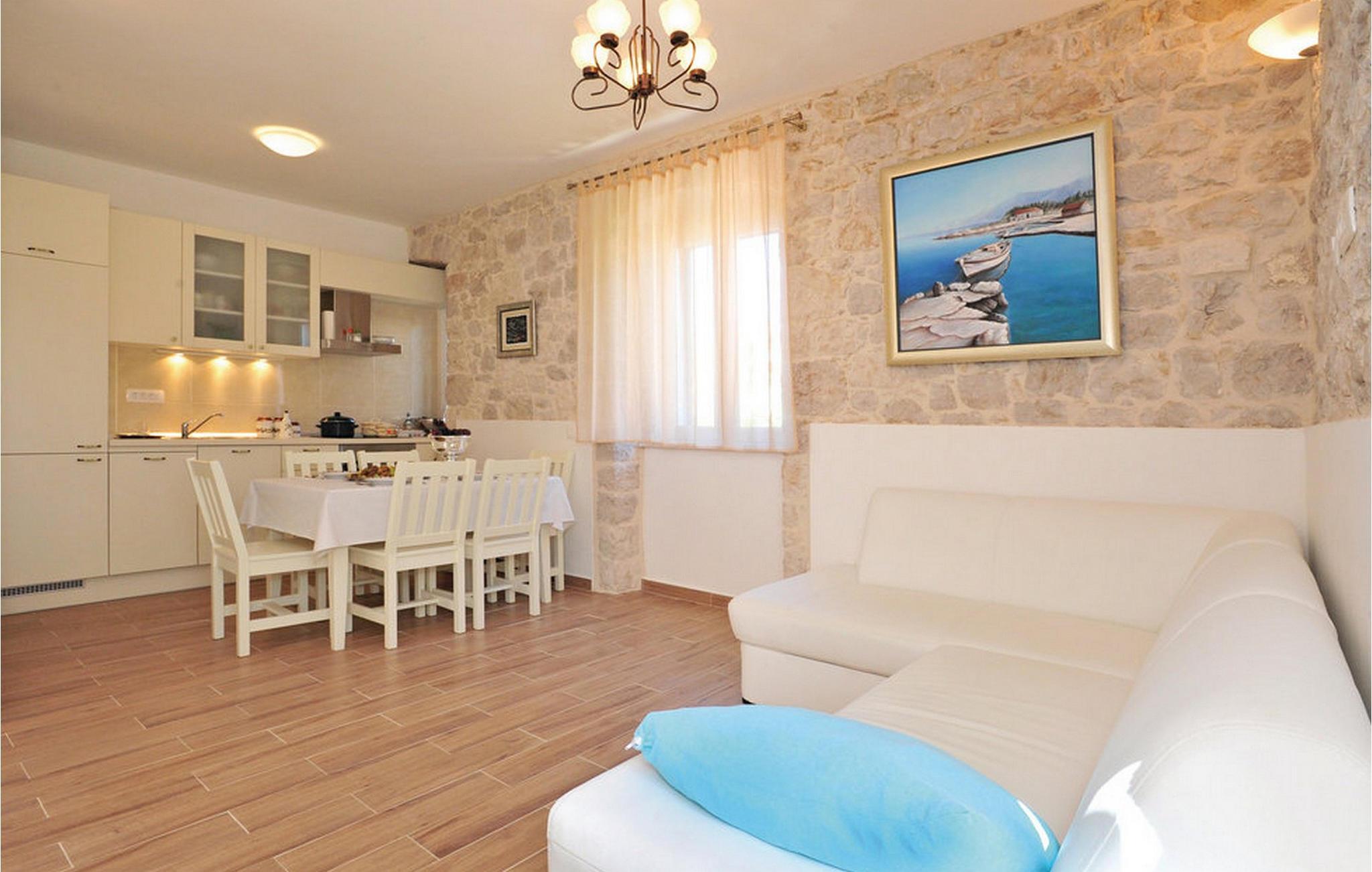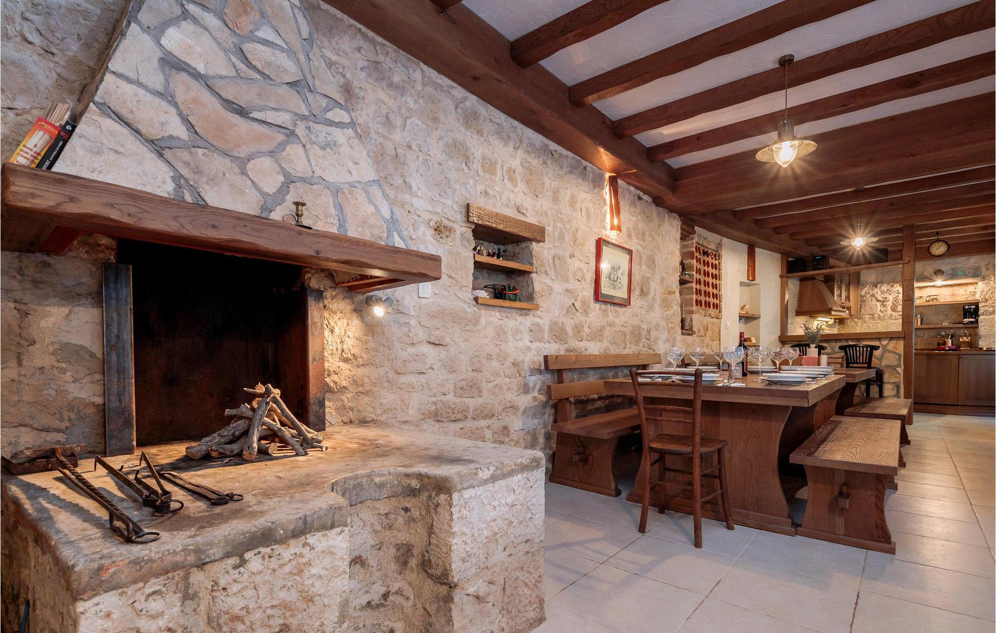 Die charmante Villa Luka besticht durch seine traditionelle Bauweise mit Naturstein und Holz, die den authentischen dalmatinischen Stil widerspiegelt. Treten Sie ein und genießen erholsame Ferientage im Haus, denn die stilvolle Einrichtung kombiniert moderne Annehmlichkeiten mit rustikalem Charme. Die voll ausgestattete Küche sowie die gemütliche Taverne mit Kamin und rustikalen Holztischen laden Sie und Ihre Lieben zum geselligen Beisammensein ein.