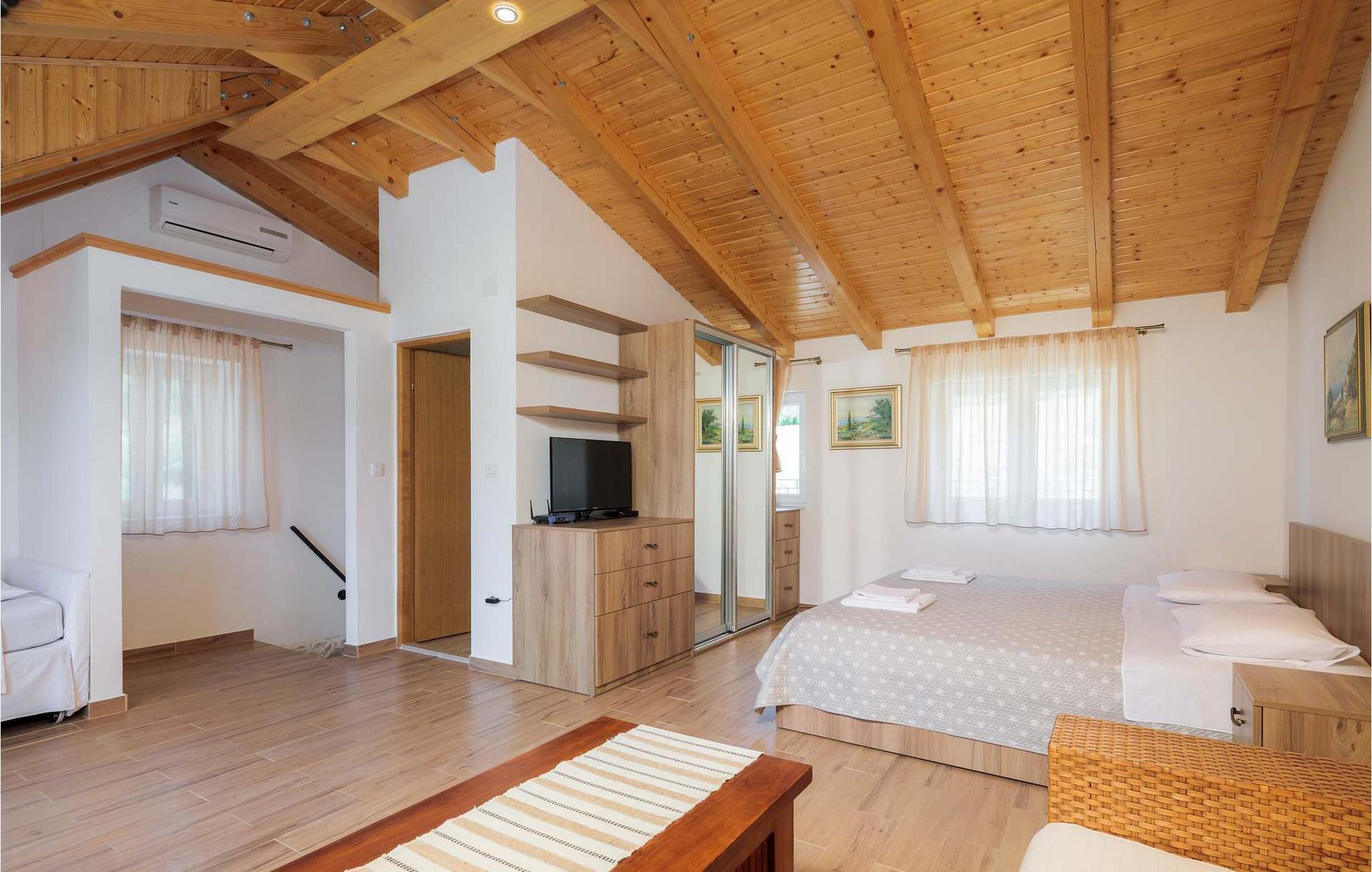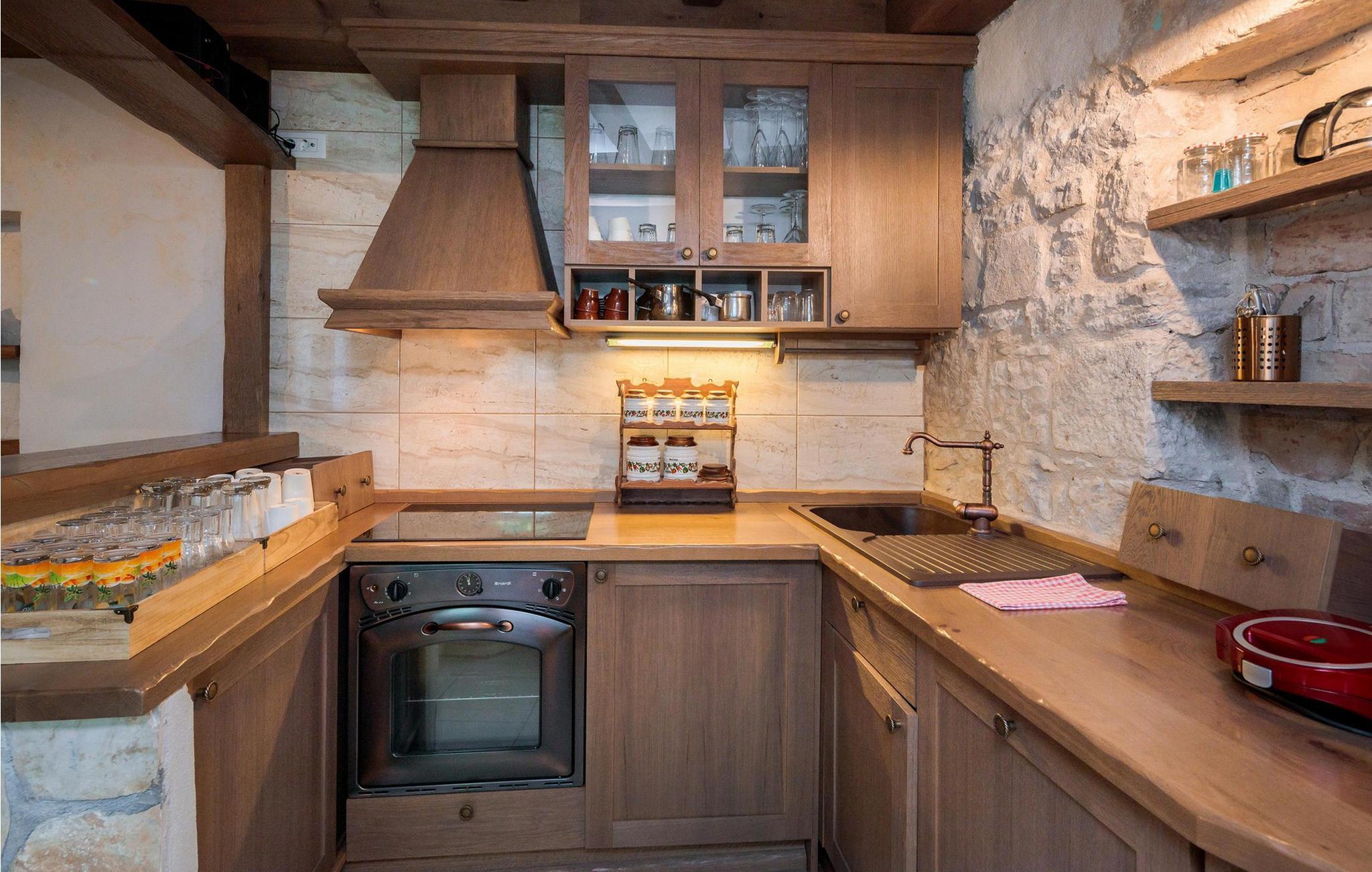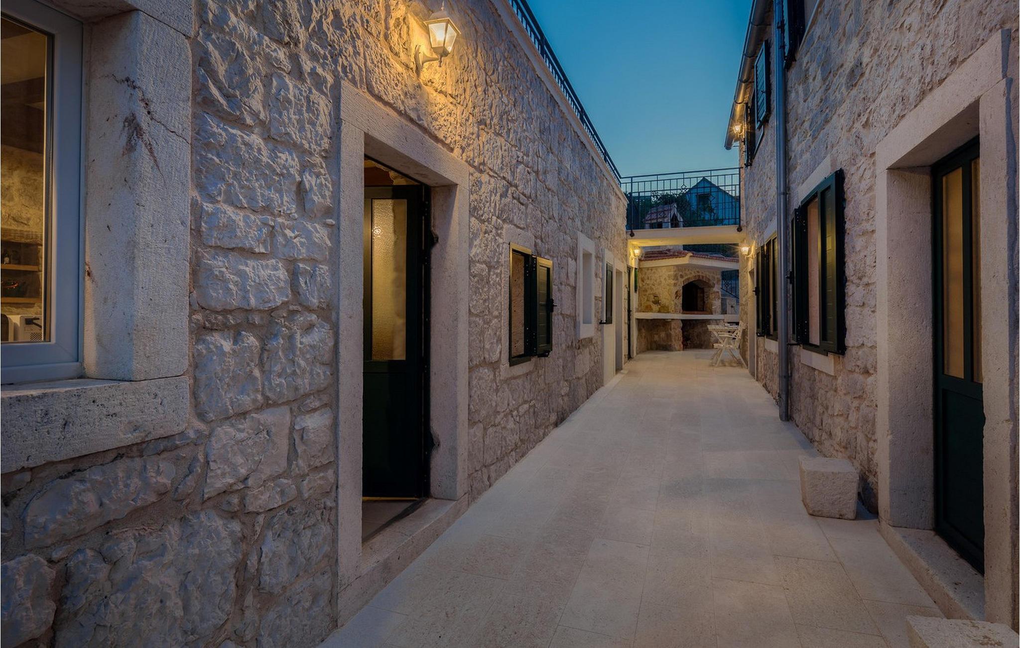 Die charmante Villa Luka besticht durch seine traditionelle Bauweise mit Naturstein und Holz, die den authentischen dalmatinischen Stil widerspiegelt. Treten Sie ein und genießen erholsame Ferientage im Haus, denn die stilvolle Einrichtung kombiniert moderne Annehmlichkeiten mit rustikalem Charme. Die voll ausgestattete Küche sowie die gemütliche Taverne mit Kamin und rustikalen Holztischen laden Sie und Ihre Lieben zum geselligen Beisammensein ein.