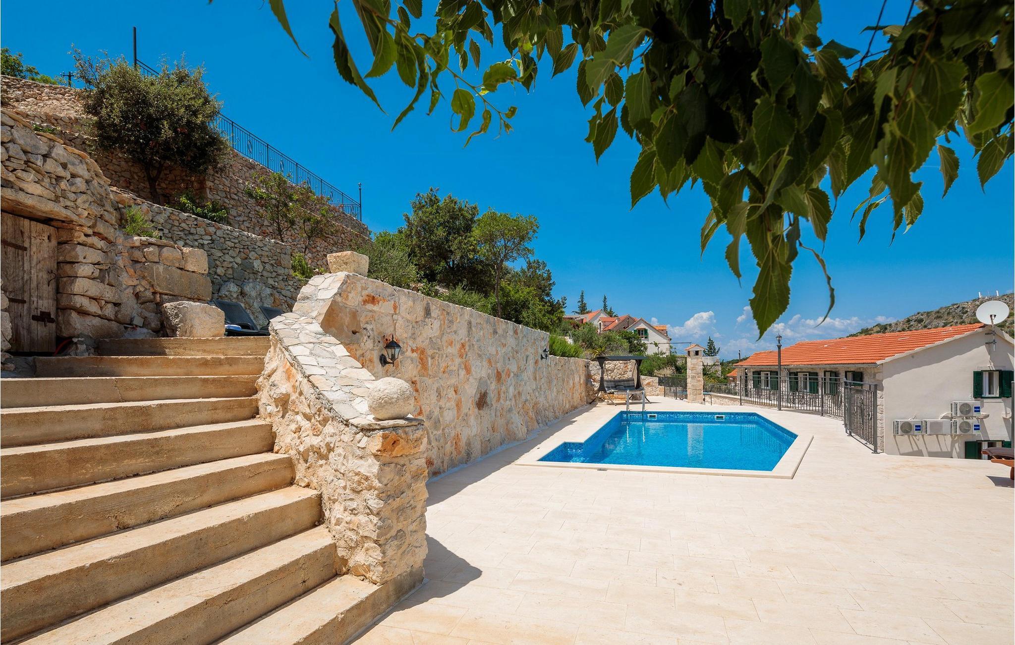 Die Villa verspricht Ihnen Erholung und befindet sich auf einem großen Grundstück, das in einen Hang integriert ist und sich ideal zum Leben im Freien eignet. Der große Garten mit Spielplatz, Tischtennis und der dalmatinischen Sportart „Bocanje“ sorgt für Ihre Unterhaltung. Der Pool mit Sonnenliegen bietet Ihnen einen herrlichen Blick auf die Umgebung und einen herrlichen Blick auf den barocken Glockenturm.