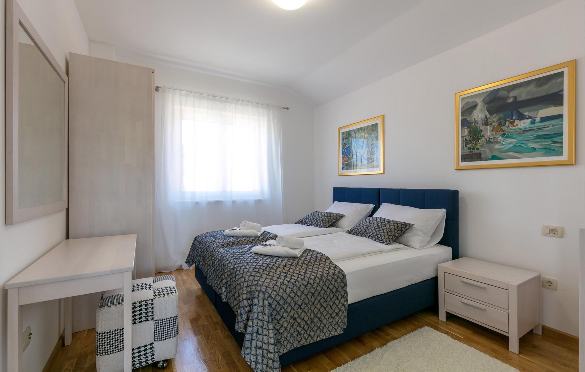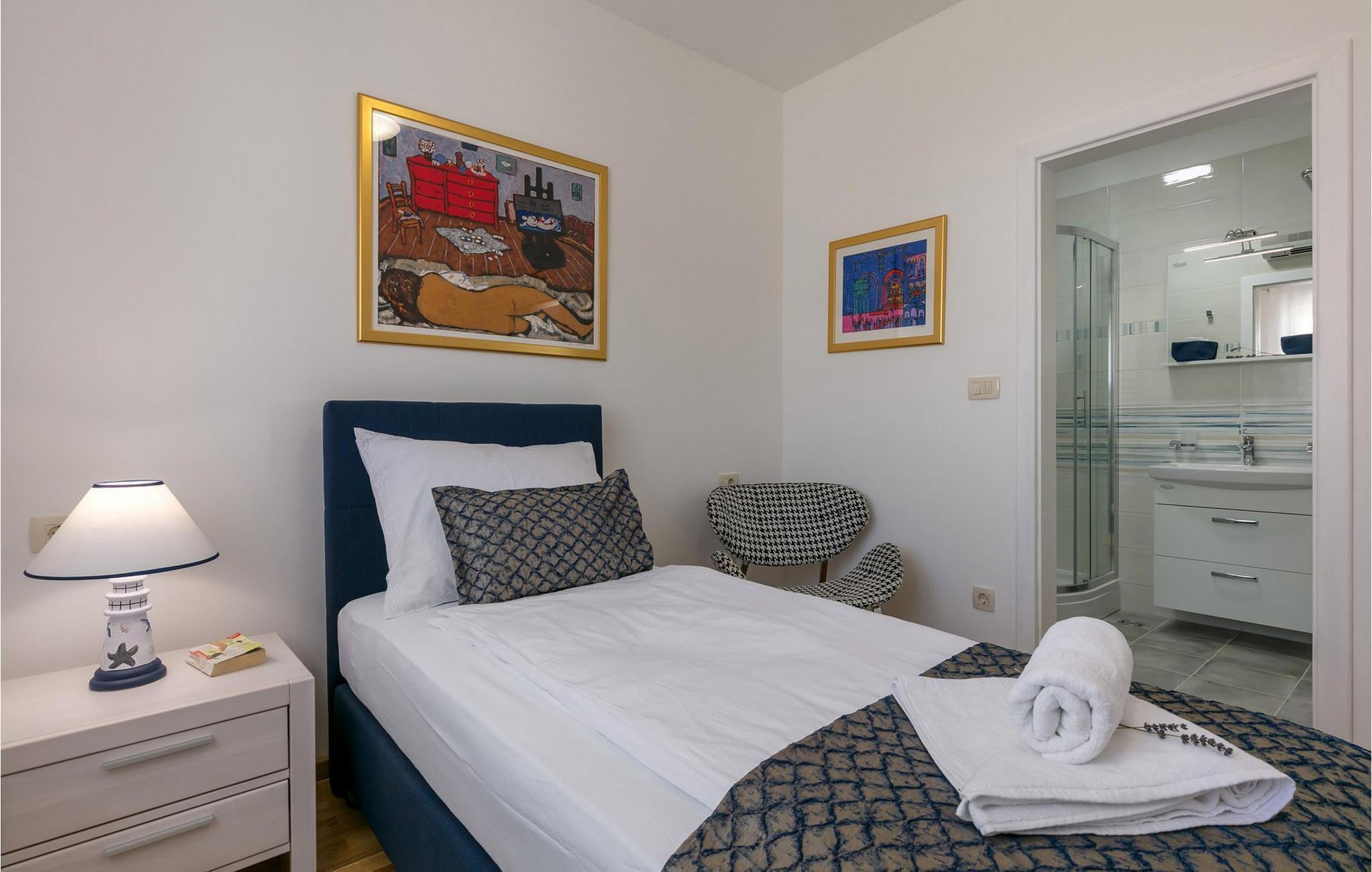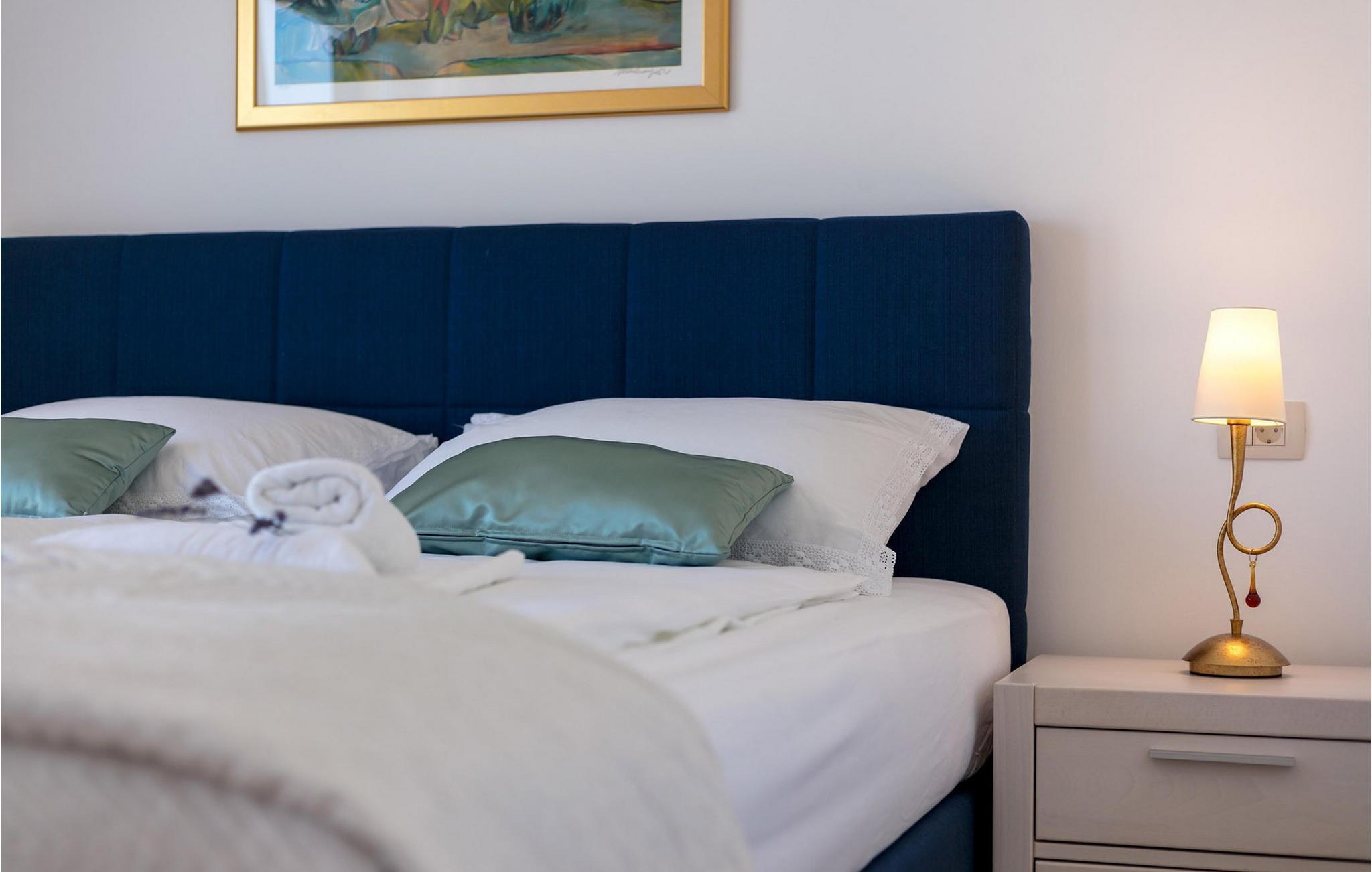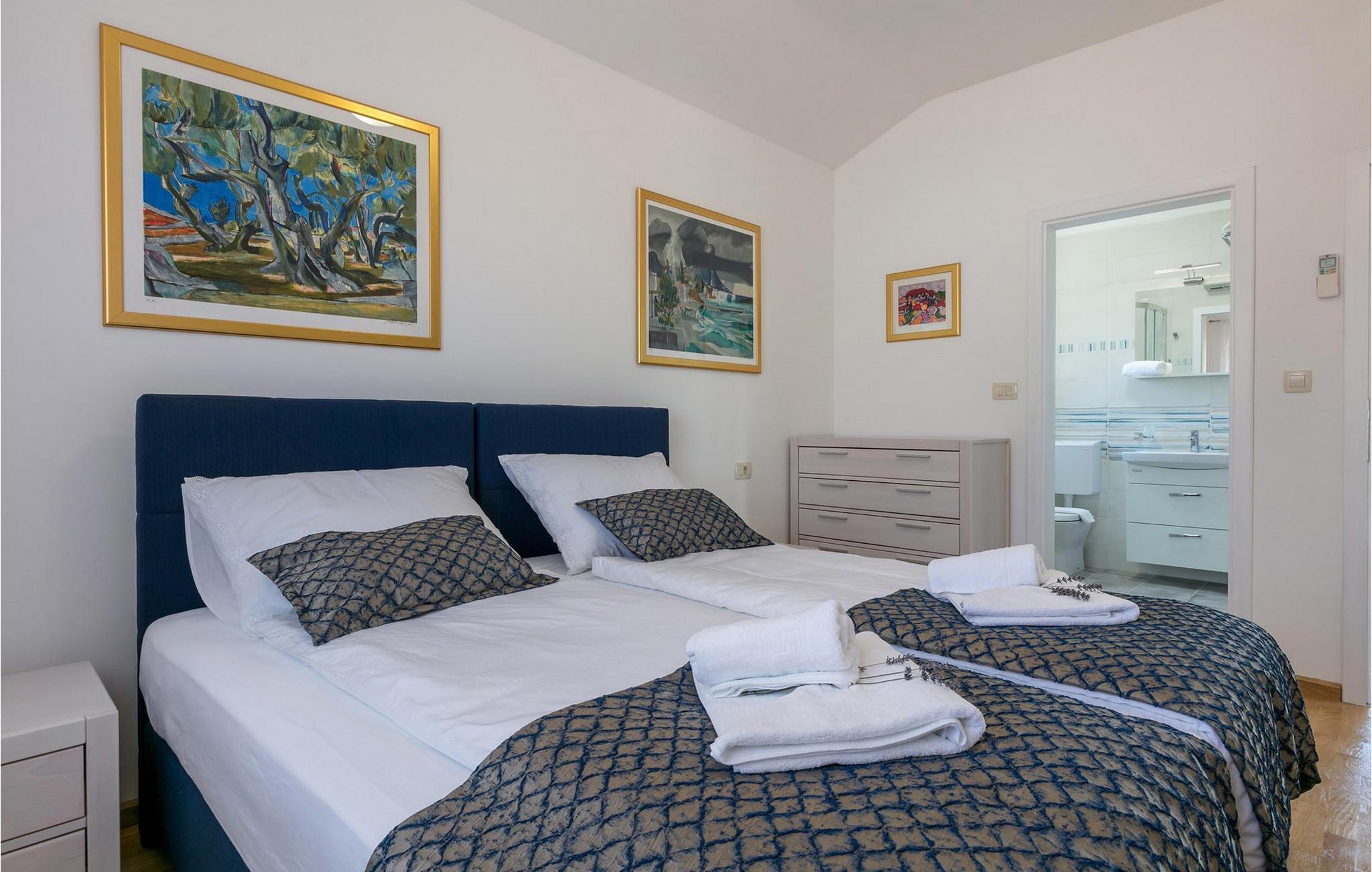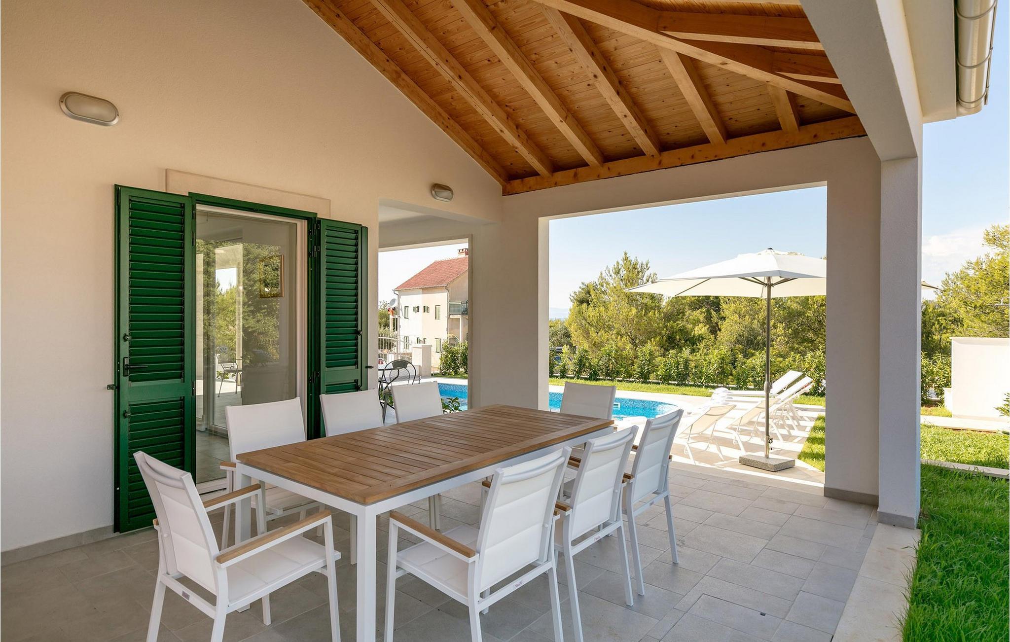 Die bezaubernde Villa Makarac begrüßt Sie nur wenige Schritte vom Ufer der ruhigen, gleichnamigen Bucht entfernt und bietet Ihnen in idyllischer Lage Urlaub für Körper, Geist und Seele. Fühlen Sie sich im komfortablen, luftigen Interieur wie zu Hause, zaubern Sie kulinarische Highlights in der sonnendurchfluteten Küche und genießen Sie harmonische Mahlzeiten am stilvollen Esstisch. Während sich Ihre Kinder im Spielzimmer, an der Tischtennisplatte oder auf dem Trampolin austoben, können Sie anregende Gespräche bei einem Glas Wein führen.
