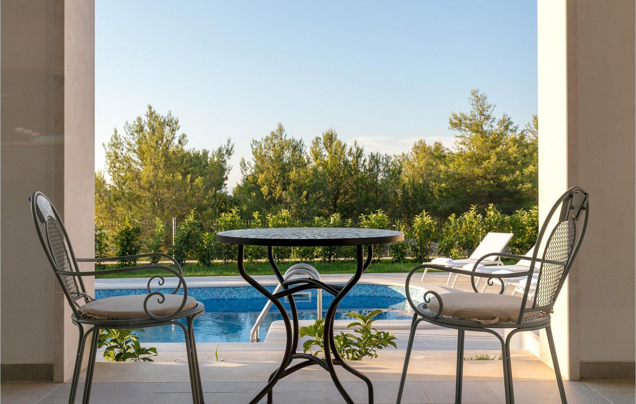 Servieren Sie sich einen frisch gebrühten Kaffee auf dem Balkon und lassen Sie die mediterrane Atmosphäre auf sich wirken. Ihr privater Pool sorgt für Erfrischung für die ganze Familie, während die schattige Terrasse eine gemütliche Gelegenheit für ein ausgedehntes Frühstück oder stimmungsvolle Grillabende bietet.