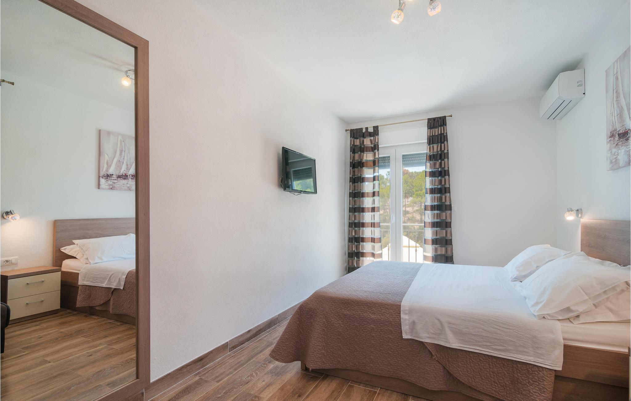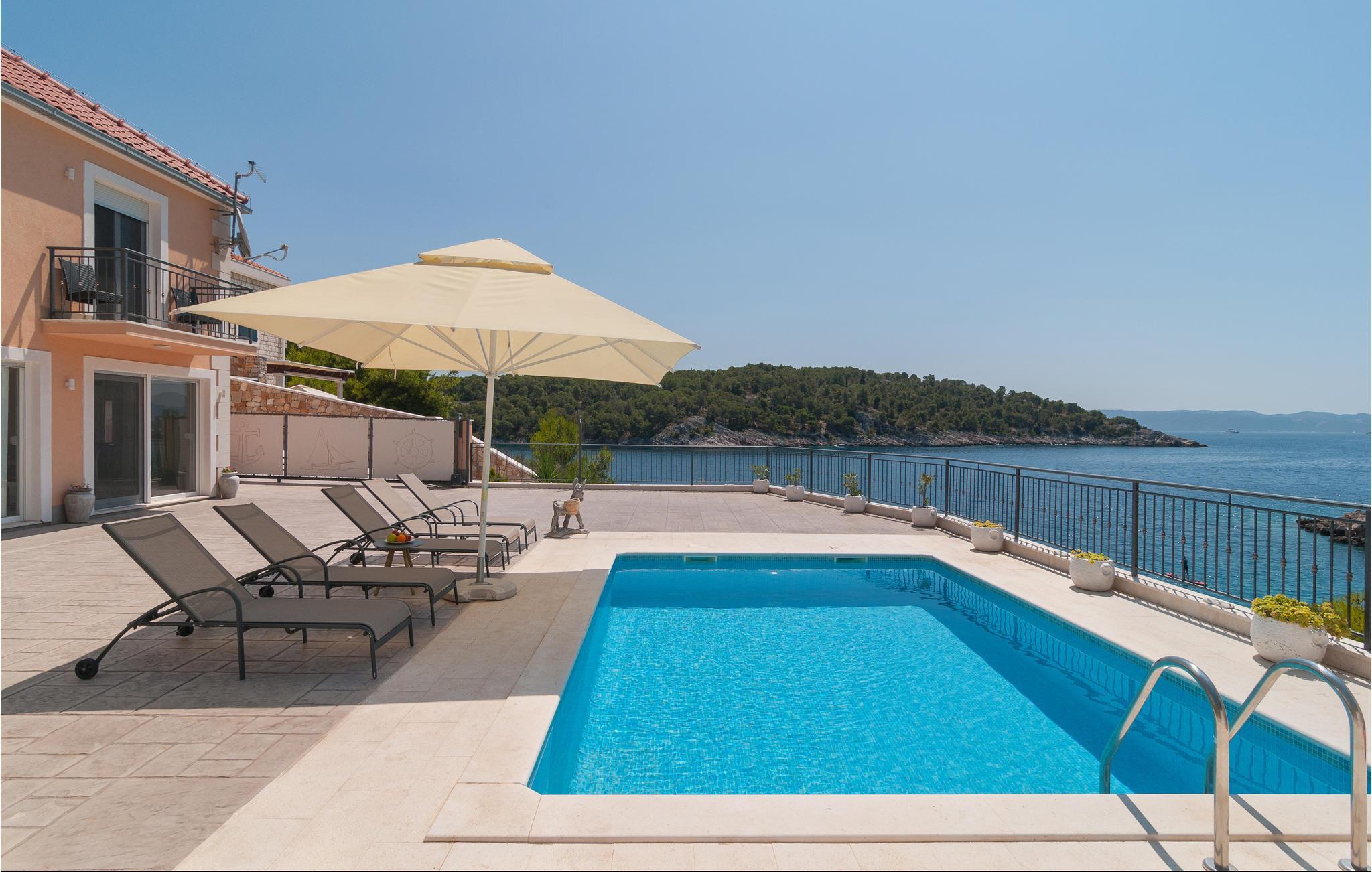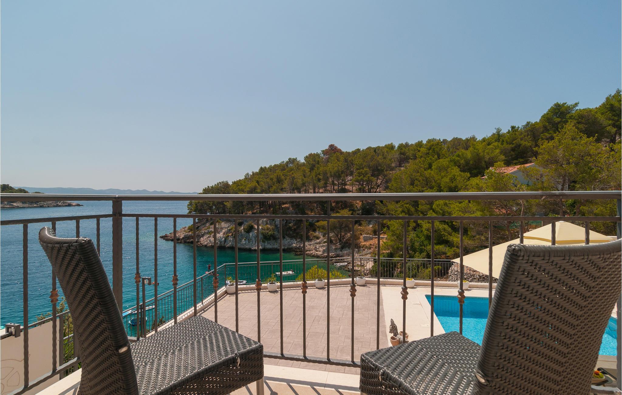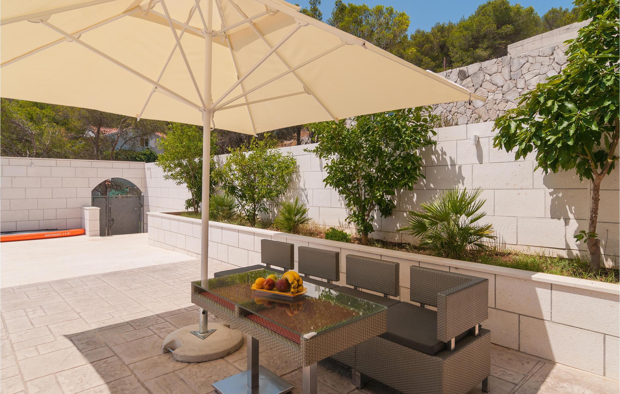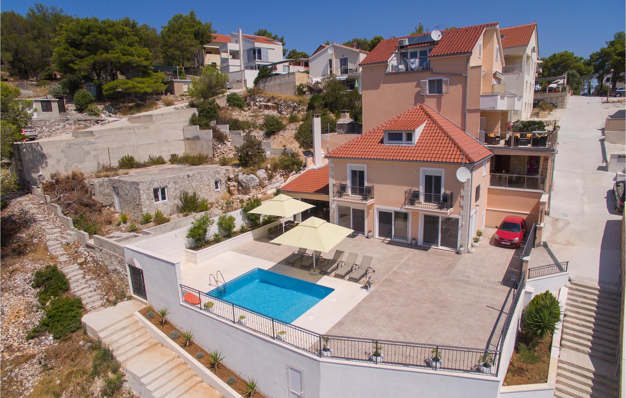 In Milna auf der Insel Brac und fast direkt am Meer befindet sich dieses traumhafte Ferienhaus mit eigenem Pool und wunderschöner Aussicht. Es bietet 6 Personen Platz. Im Erdgeschoss verfügt es über ein Wohnzimmer mit Küche und Essbereich sowie ein Badezimmer, während im Obergeschoss 2 Schlafzimmer mit 2 weiteren Badezimmern sind. Auf dem umzäunten Grundstück, neben dem Pool, steht Ihnen ein Außengrillbereich mit Tisch und Stühlen zur Verfügung.