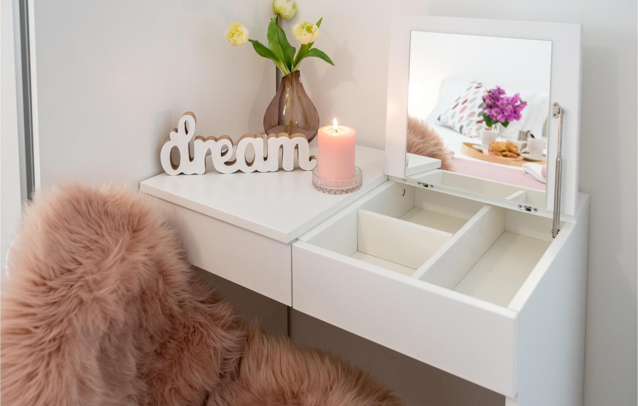 Im Inneren der modernen Ferienwohnung erwarten Sie ein Schlafzimmer, ein Badezimmer und ein Wohnraum mit Küche.
