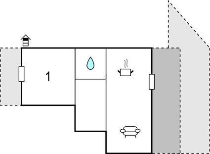Im Inneren der modernen Ferienwohnung erwarten Sie ein Schlafzimmer, ein Badezimmer und ein Wohnraum mit Küche.