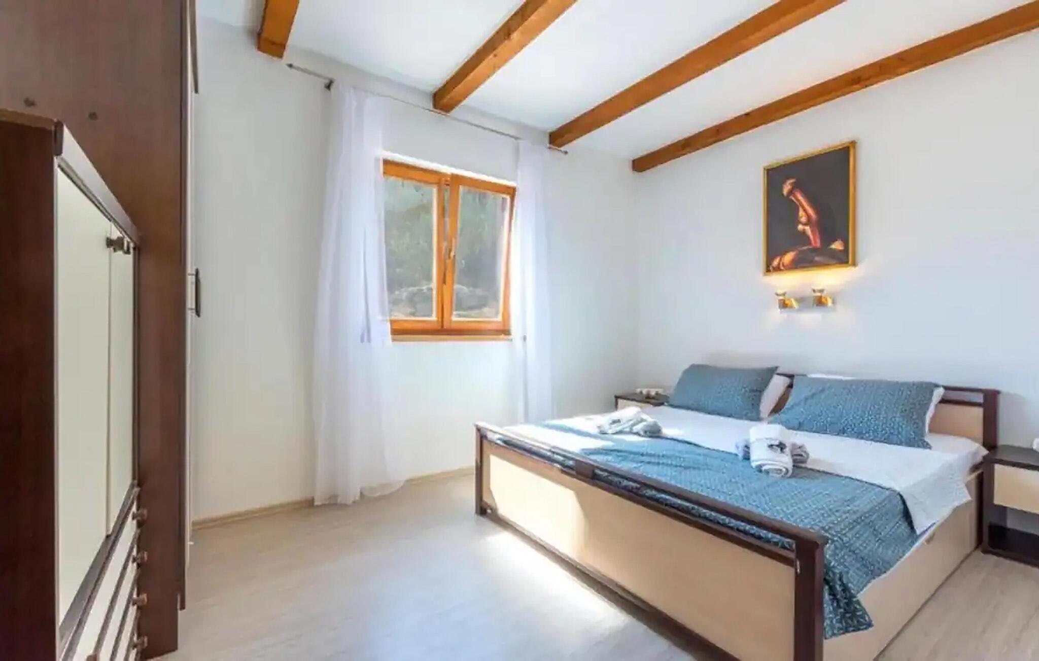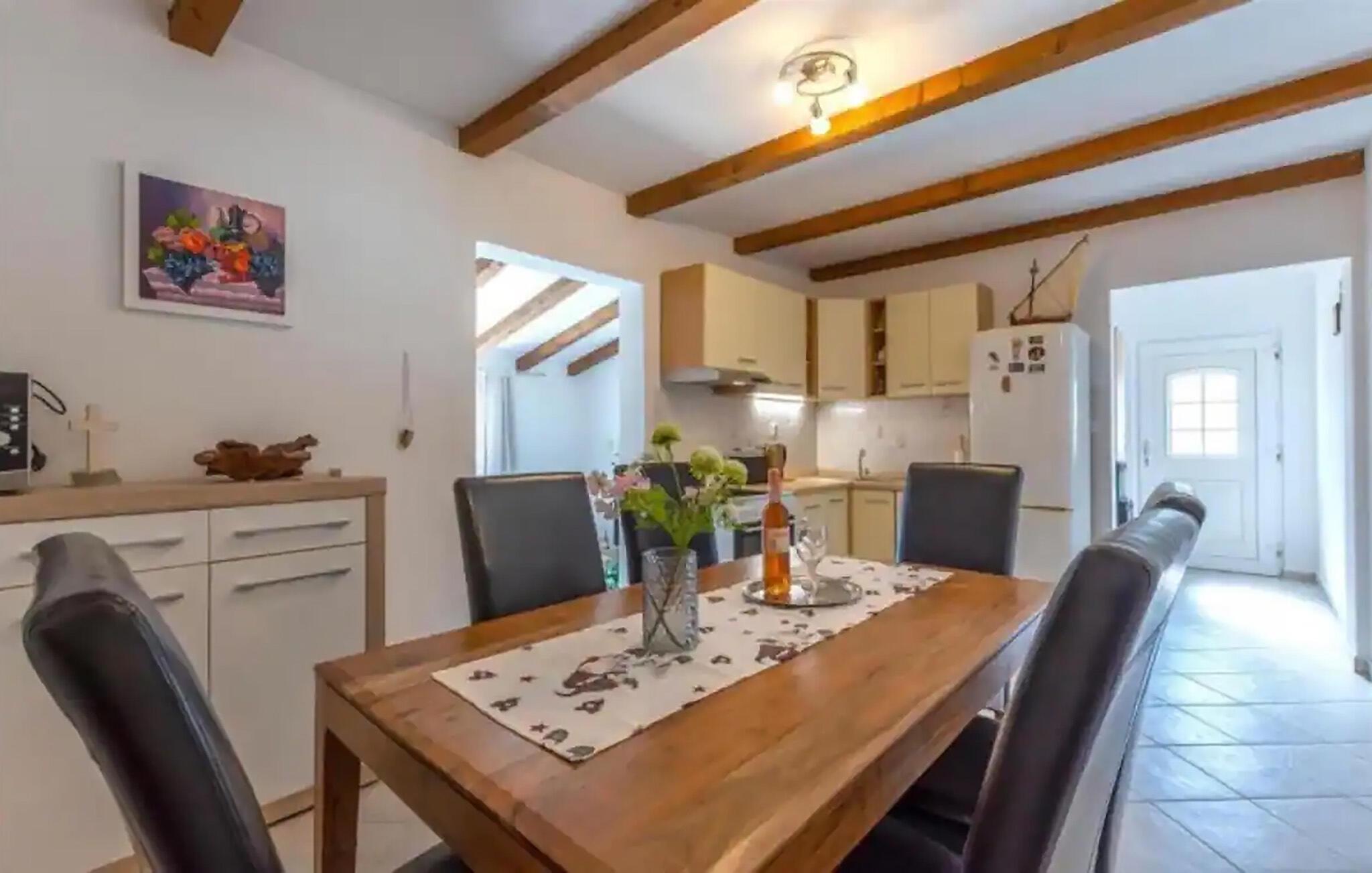 In Ihrem Ferienhaus in Dracevice, einer malerischen Ortschaft auf der Insel Brac, können Sie den Alltag hinter sich lassen und in eine Oase der Ruhe und Entspannung eintauchen. Es erwartet Sie hier eine einladende Einrichtung mit rustikalen Holzbalken und modernem Komfort. Entspannen Sie im gemütlichen Wohnzimmer, das mit großen Fenstern und einem Ausblick auf den Pool punktet. In der Küche des Hauses können Sie lokale Zutaten zu kulinarischen Köstlichkeiten verarbeiten. Laden Sie Ihre Liebsten zu einem gemeinsamen Abendessen im stilvollen Essbereich ein.