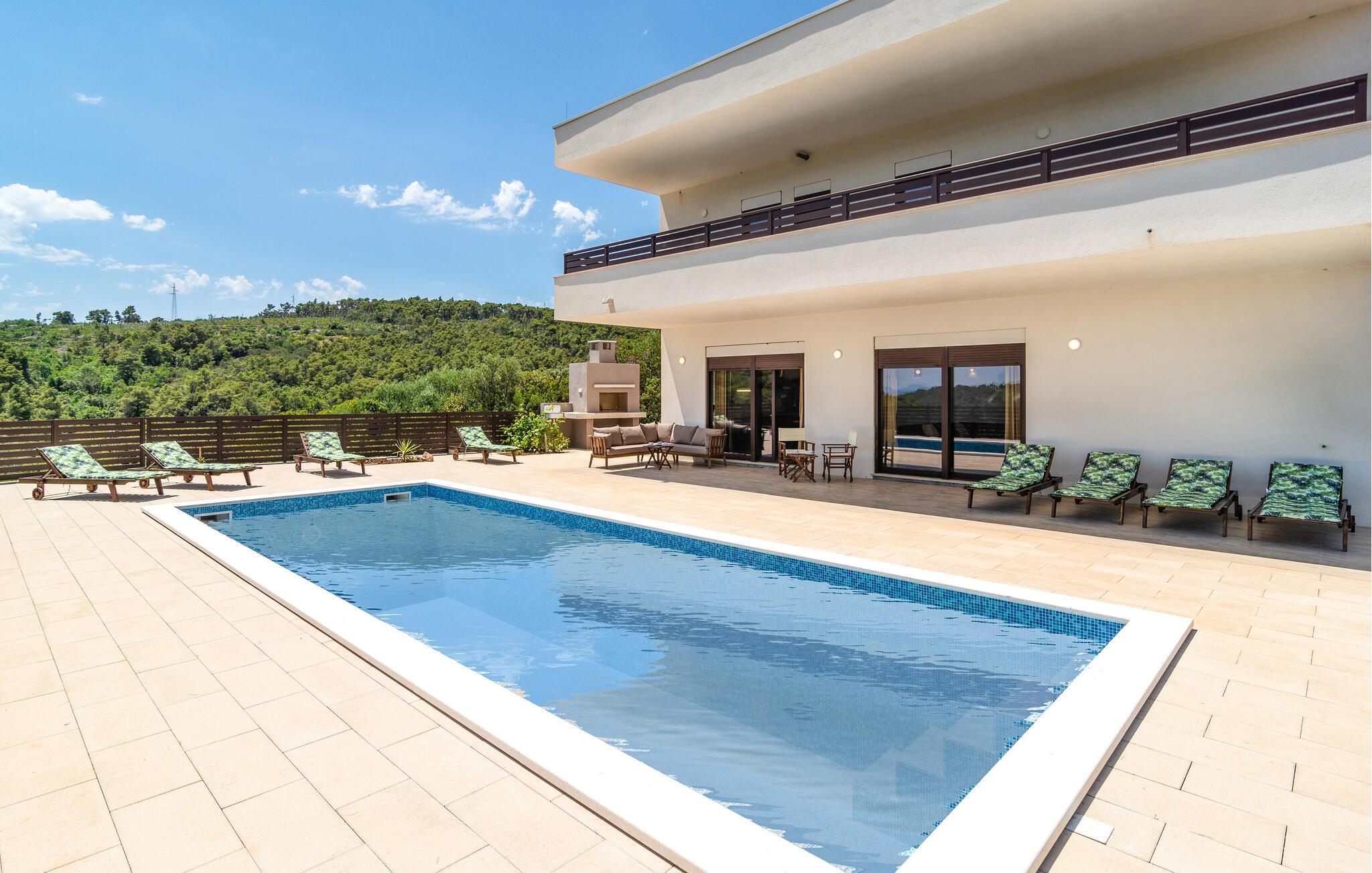 Erfrischen Sie sich an heißen Sommertagen im eigenen Pool und entspannen Sie auf den komfortablen Sonnenliegen, die den Pool umgeben. Für gesellige Grillabende steht Ihnen ein Grillplatz zur Verfügung, ideal um regionale Spezialitäten zuzubereiten und gemeinsame Stunden mit der Familie zu verbringen. Besuchen Sie auch die nahe gelegenen Strände, die mit ihrem kristallklaren Wasser zum Baden und Entspannen einladen.