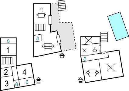 Schlafzimmer 18m2 (nr. 4) - 1 Schlafmöglichkeit. (Einzelbett(en)). 2 Schlafmöglichkeiten. (Doppelbett(en)).