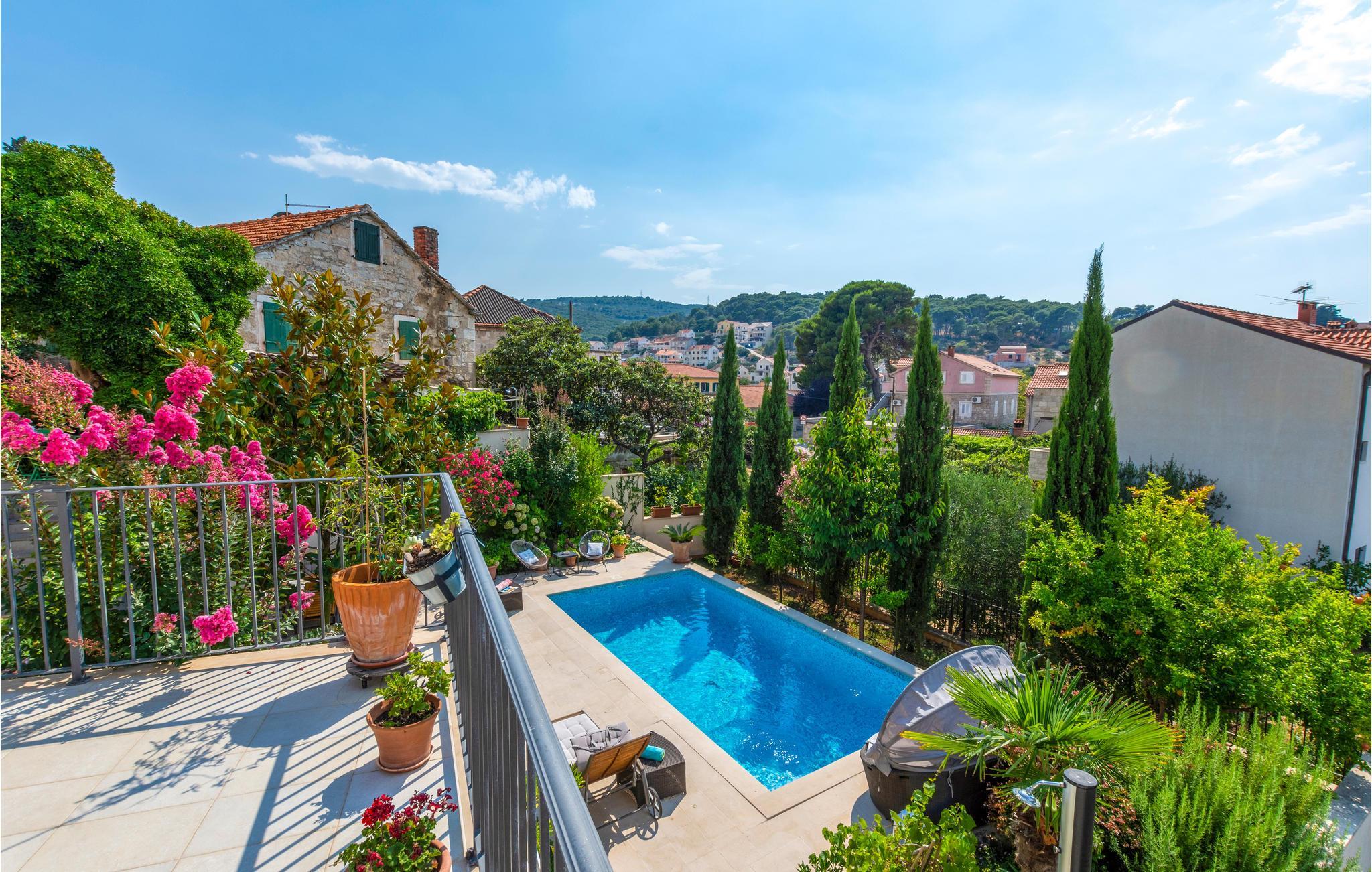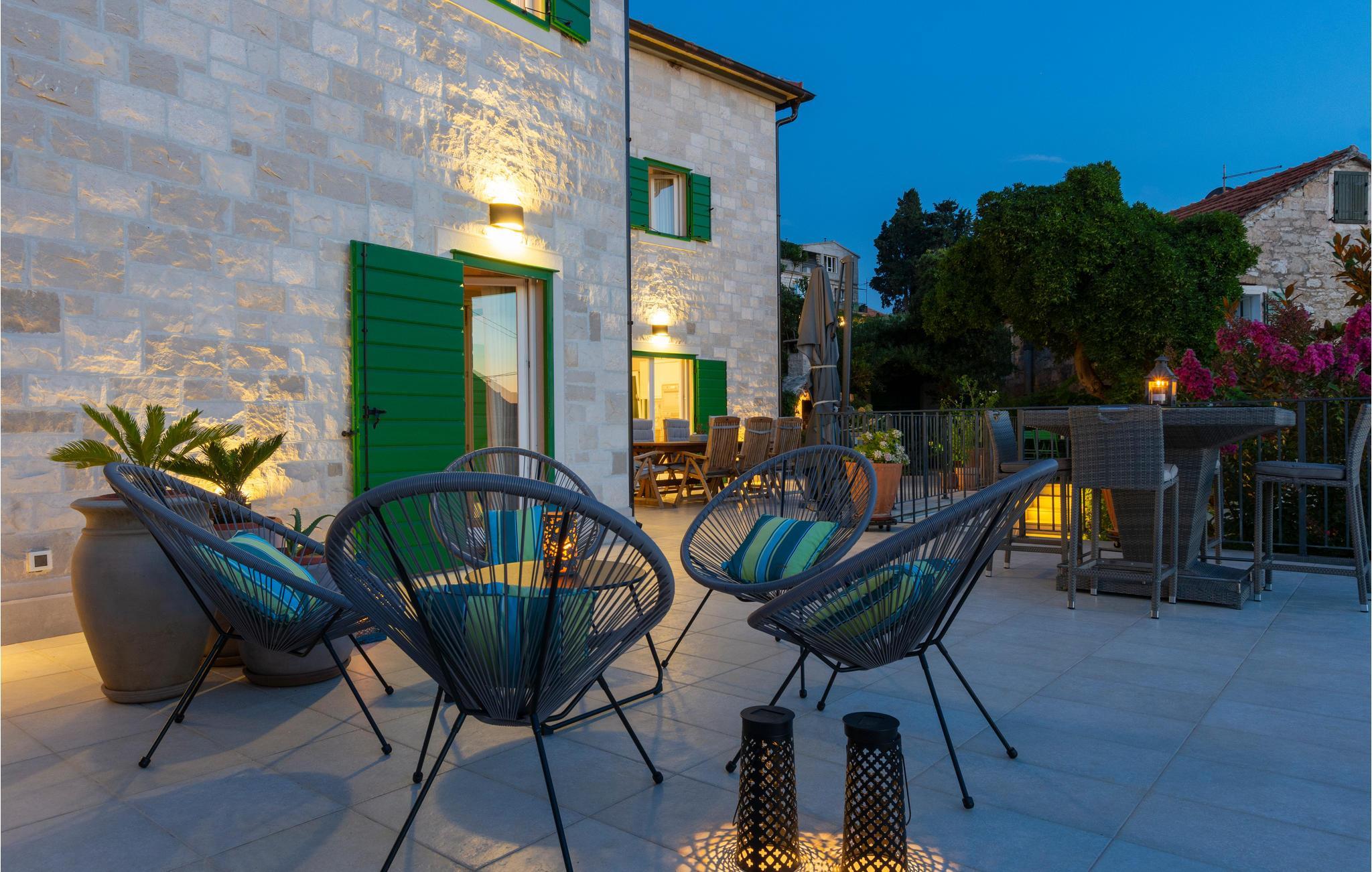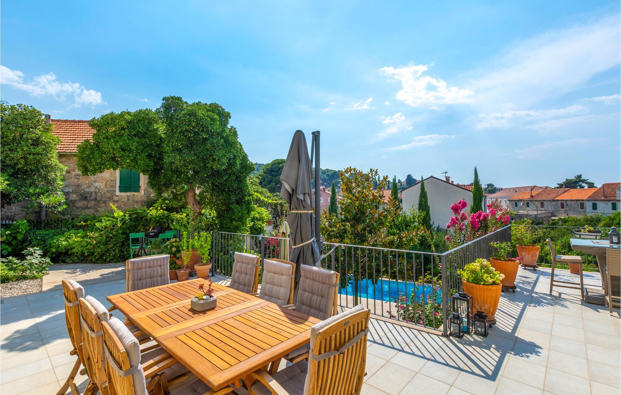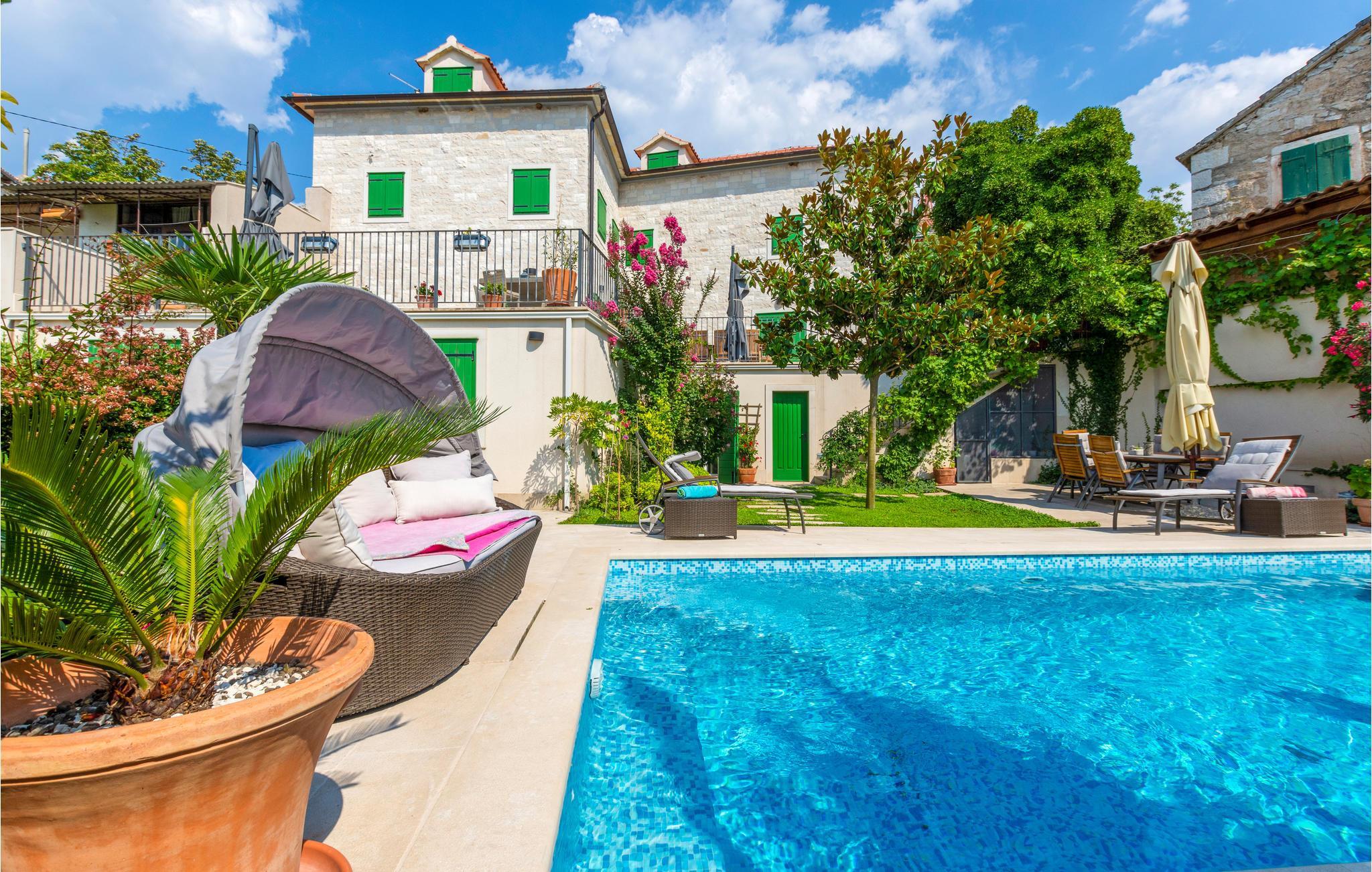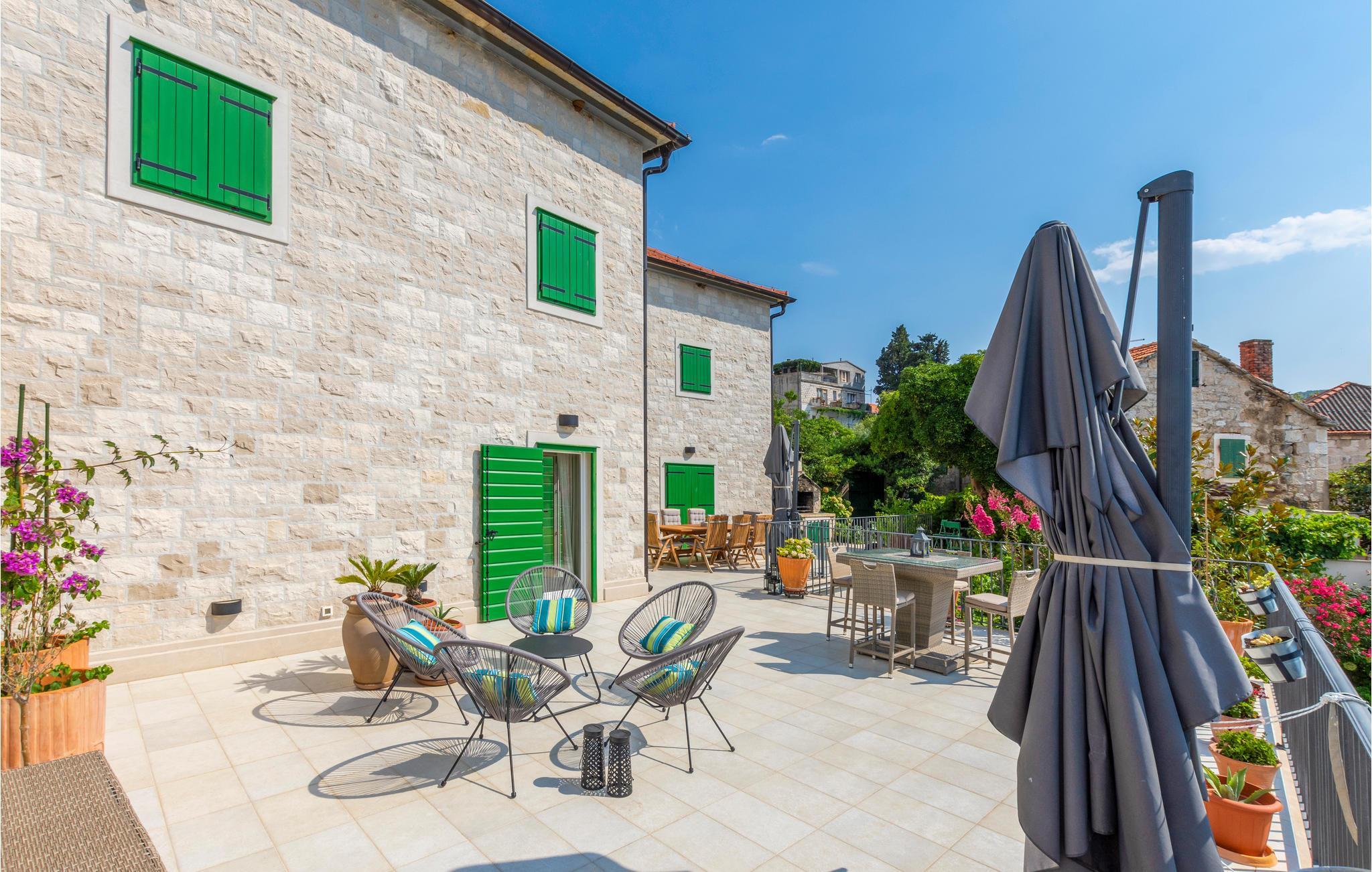Prächtiges Ferienhaus mit Pool, vier Schlafzimmern und vier Bädern. Es ist eine ausgezeichnete Wahl für einen unvergesslichen Urlaub für Familien mit Kindern oder Gruppen von Freuden. Es liegt auf der Insel Brac, im Ort Postira und bietet außergewöhnlichen Komfort mit schöner Einrichtung im Innen und Außenbereich. Das Anwesen liegt nahe am Meer und Stadtzentrum, so dass Geschäfte, Restaurants, Märkte, Apotheke, Klink und Kinderspielplatz in Reichweite sind. Im fast 100 m² großen Erdgeschoss befindet sich eine Küche mit Essbereich, die mit dem großen Wohnzimmer verbunden ist. Von dort aus gelangen Sie auf die geräumige Terrasse, die mit angenehmen Gartenmöbeln ausgestattet ist und von der sich ein Blick auf den Pool und hübsch angelegten Garten bietet. Im ersten Stock befinden sich die Schlafzimmer, wobei die Schlafzimmer Nr. 1 und Nr. 4 ein eigenes Bad haben. Im Garten mit mediterranen Pflanzen und viel Grün gibt es auch einen Grill, auf dem Sie köstliche Mahlzeiten zubereiten und die frische Luft in geselliger Runde genießen können. Im Untergeschoss des Hauses, das durch Außentreppen zugänglich ist, steht Ihnen eine authentische dalmatinische Konoba mit Kamin und voll ausgestatteter Küche zur Verfügung. Empfehlenswert ist ein Besuch der berühmten Sandstrandbucht Lovrecina, die ca. 2 km entfernt liegt, sowie ein Besuch des berühmtesten Strandes Dalmatines, der Zlatni Rat in Bol.