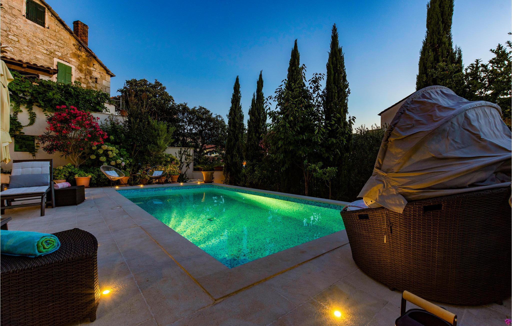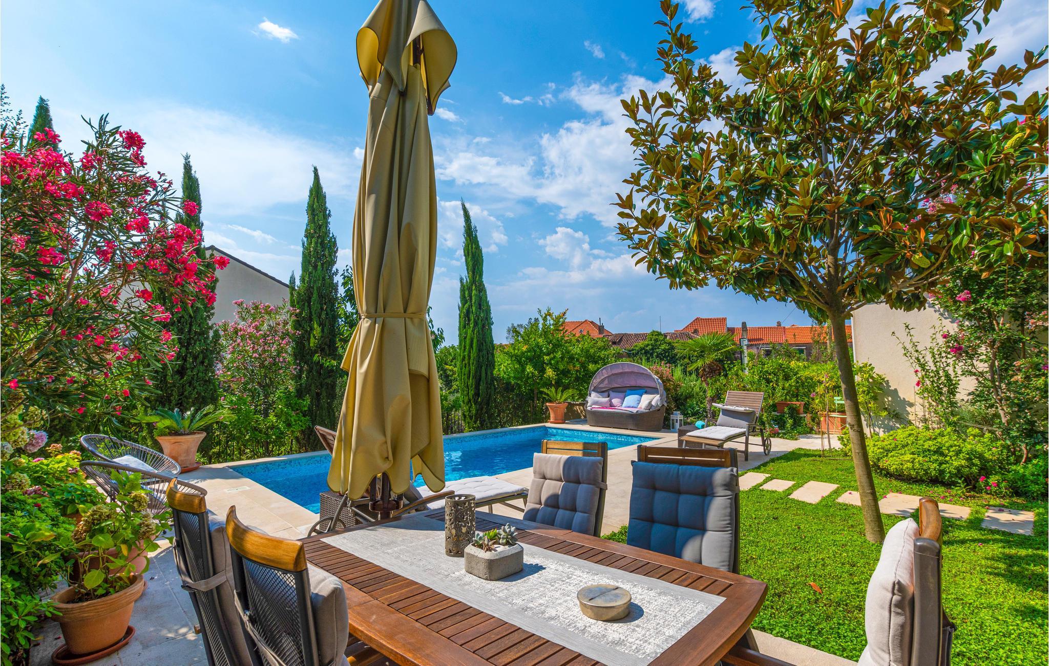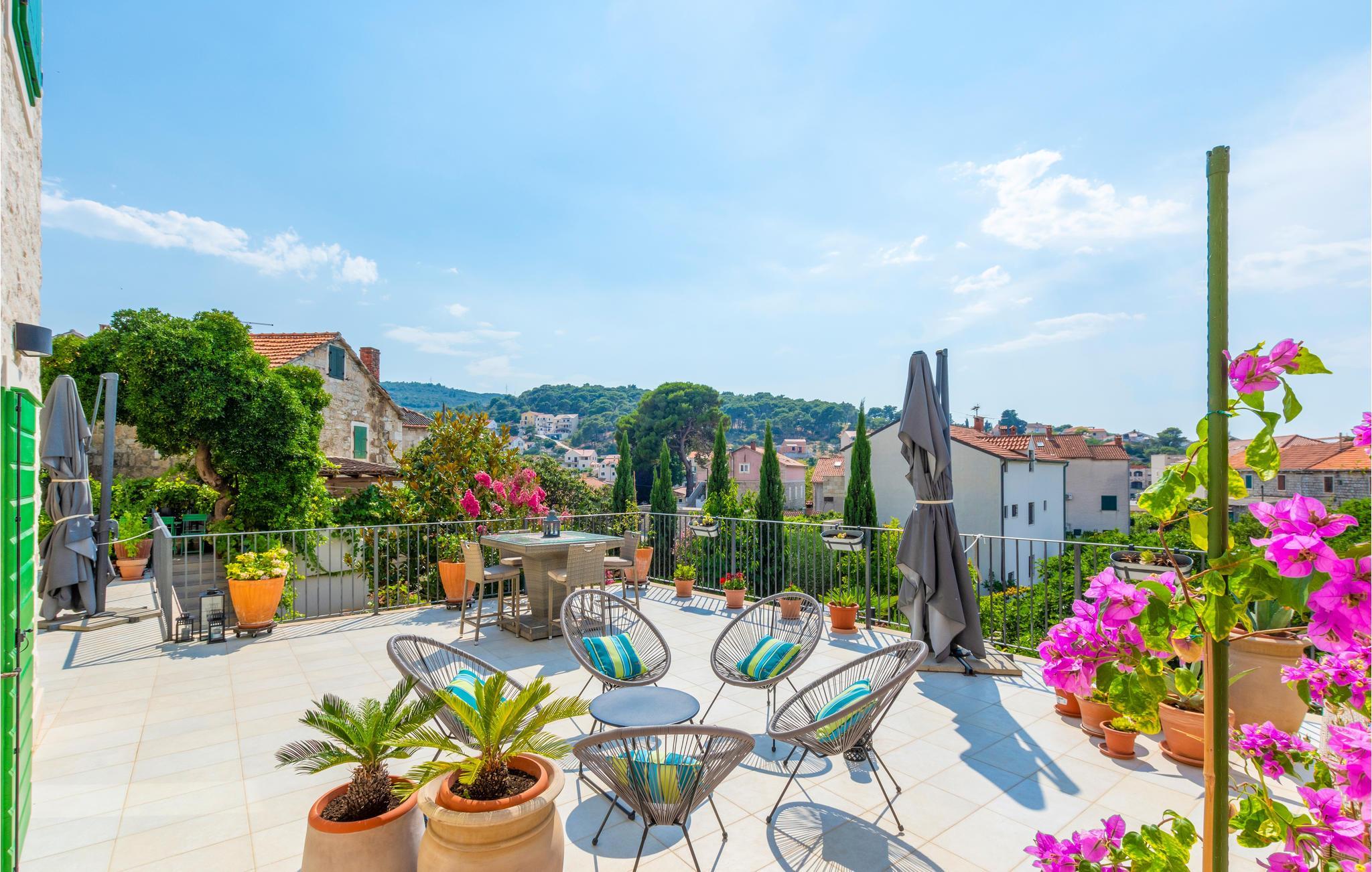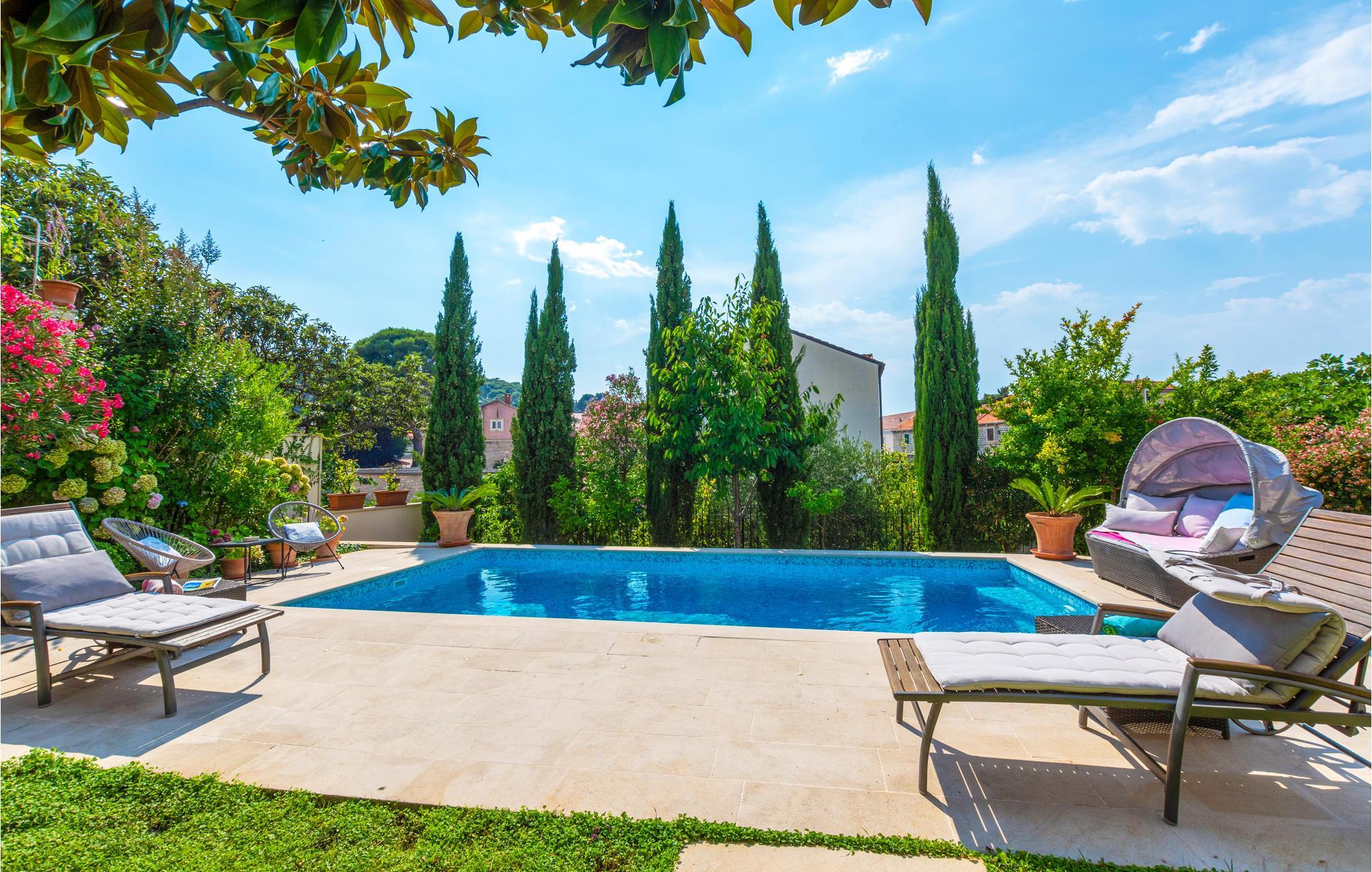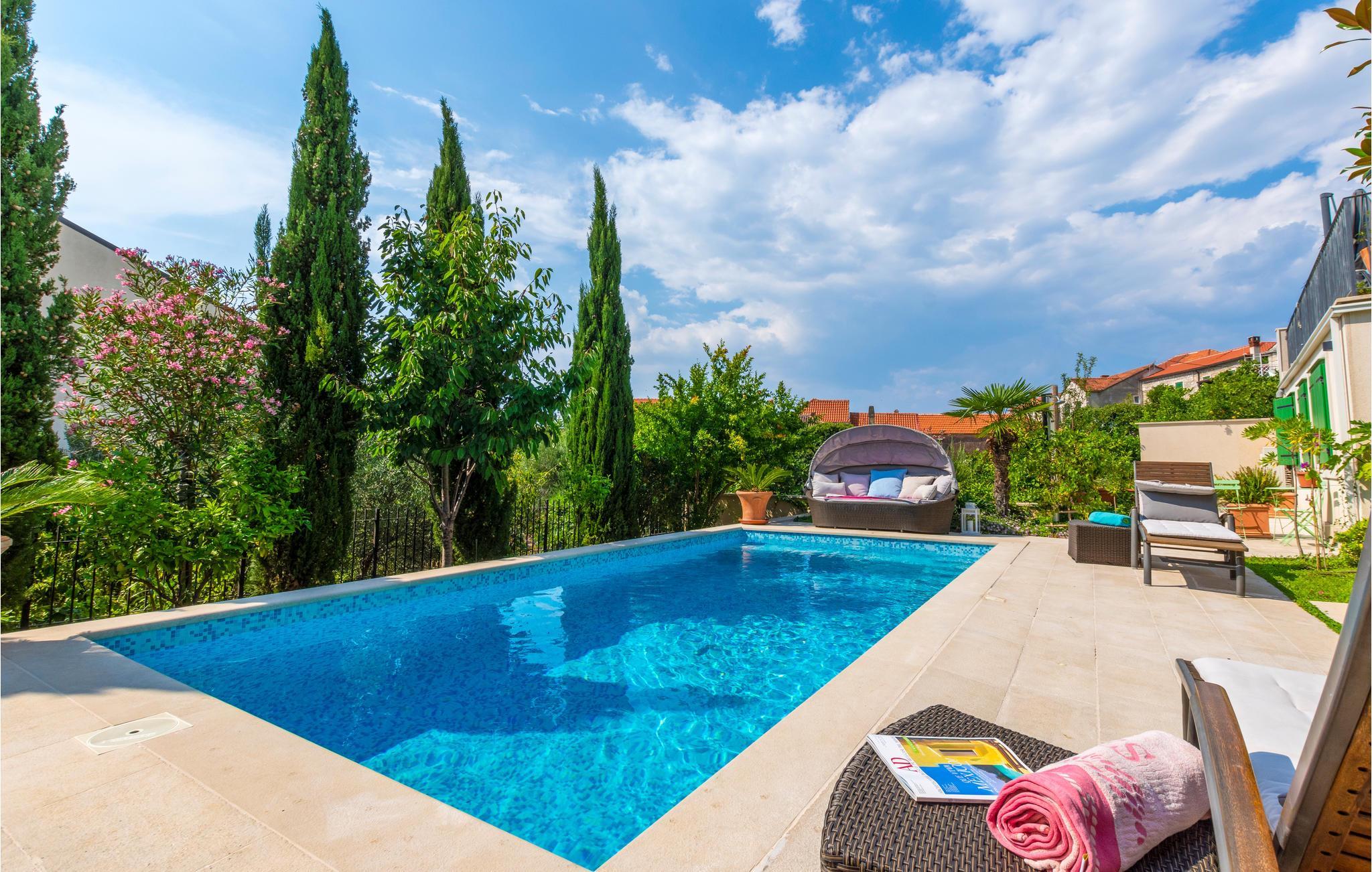 Prächtiges Ferienhaus mit Pool, vier Schlafzimmern und vier Bädern. Es ist eine ausgezeichnete Wahl für einen unvergesslichen Urlaub für Familien mit Kindern oder Gruppen von Freuden. Es liegt auf der Insel Brac, im Ort Postira und bietet außergewöhnlichen Komfort mit schöner Einrichtung im Innen und Außenbereich. Das Anwesen liegt nahe am Meer und Stadtzentrum, so dass Geschäfte, Restaurants, Märkte, Apotheke, Klink und Kinderspielplatz in Reichweite sind. Im fast 100 m² großen Erdgeschoss befindet sich eine Küche mit Essbereich, die mit dem großen Wohnzimmer verbunden ist. Von dort aus gelangen Sie auf die geräumige Terrasse, die mit angenehmen Gartenmöbeln ausgestattet ist und von der sich ein Blick auf den Pool und hübsch angelegten Garten bietet. Im ersten Stock befinden sich die Schlafzimmer, wobei die Schlafzimmer Nr. 1 und Nr. 4 ein eigenes Bad haben. Im Garten mit mediterranen Pflanzen und viel Grün gibt es auch einen Grill, auf dem Sie köstliche Mahlzeiten zubereiten und die frische Luft in geselliger Runde genießen können. Im Untergeschoss des Hauses, das durch Außentreppen zugänglich ist, steht Ihnen eine authentische dalmatinische Konoba mit Kamin und voll ausgestatteter Küche zur Verfügung. Empfehlenswert ist ein Besuch der berühmten Sandstrandbucht Lovrecina, die ca. 2 km entfernt liegt, sowie ein Besuch des berühmtesten Strandes Dalmatines, der Zlatni Rat in Bol.