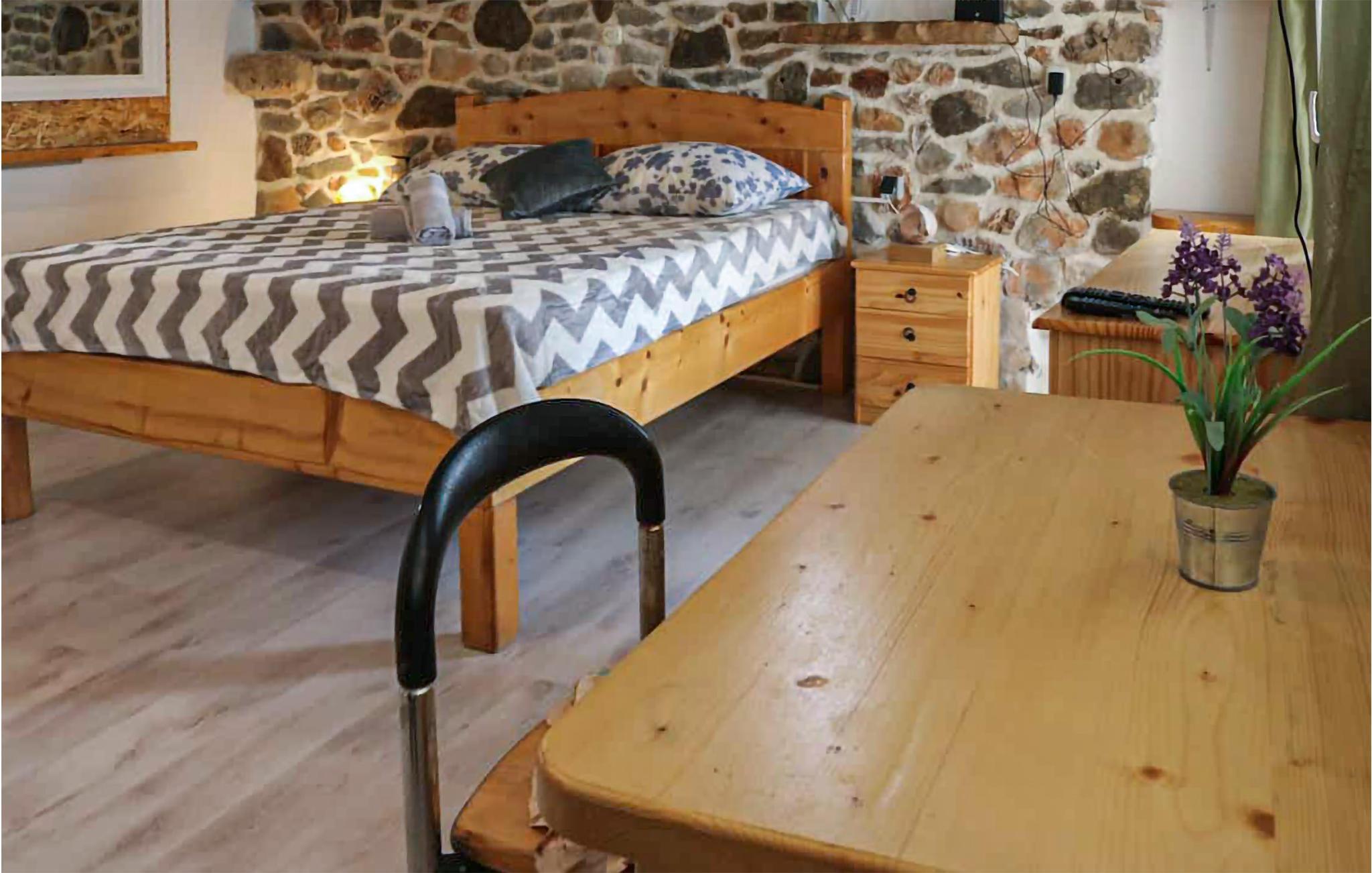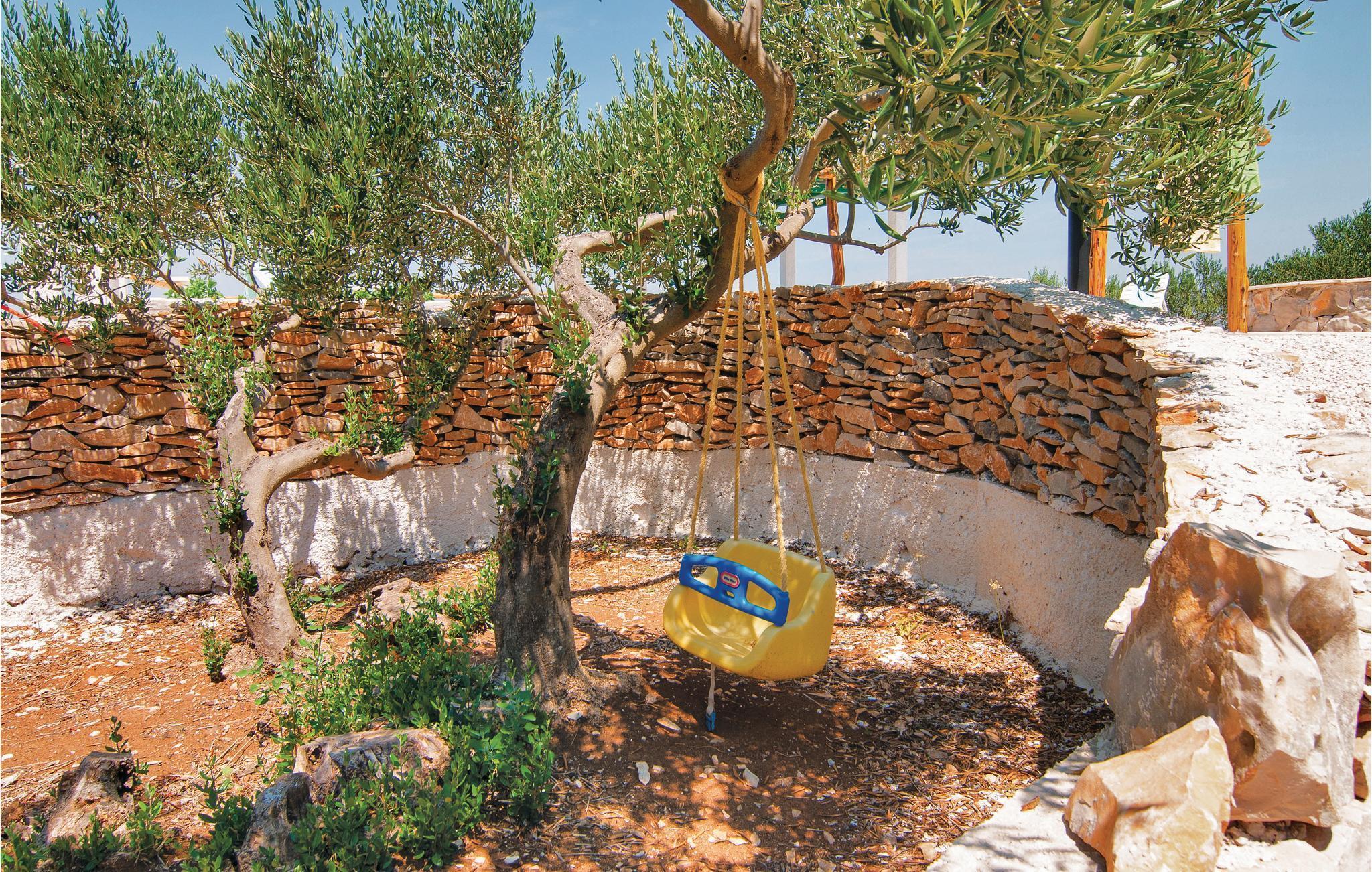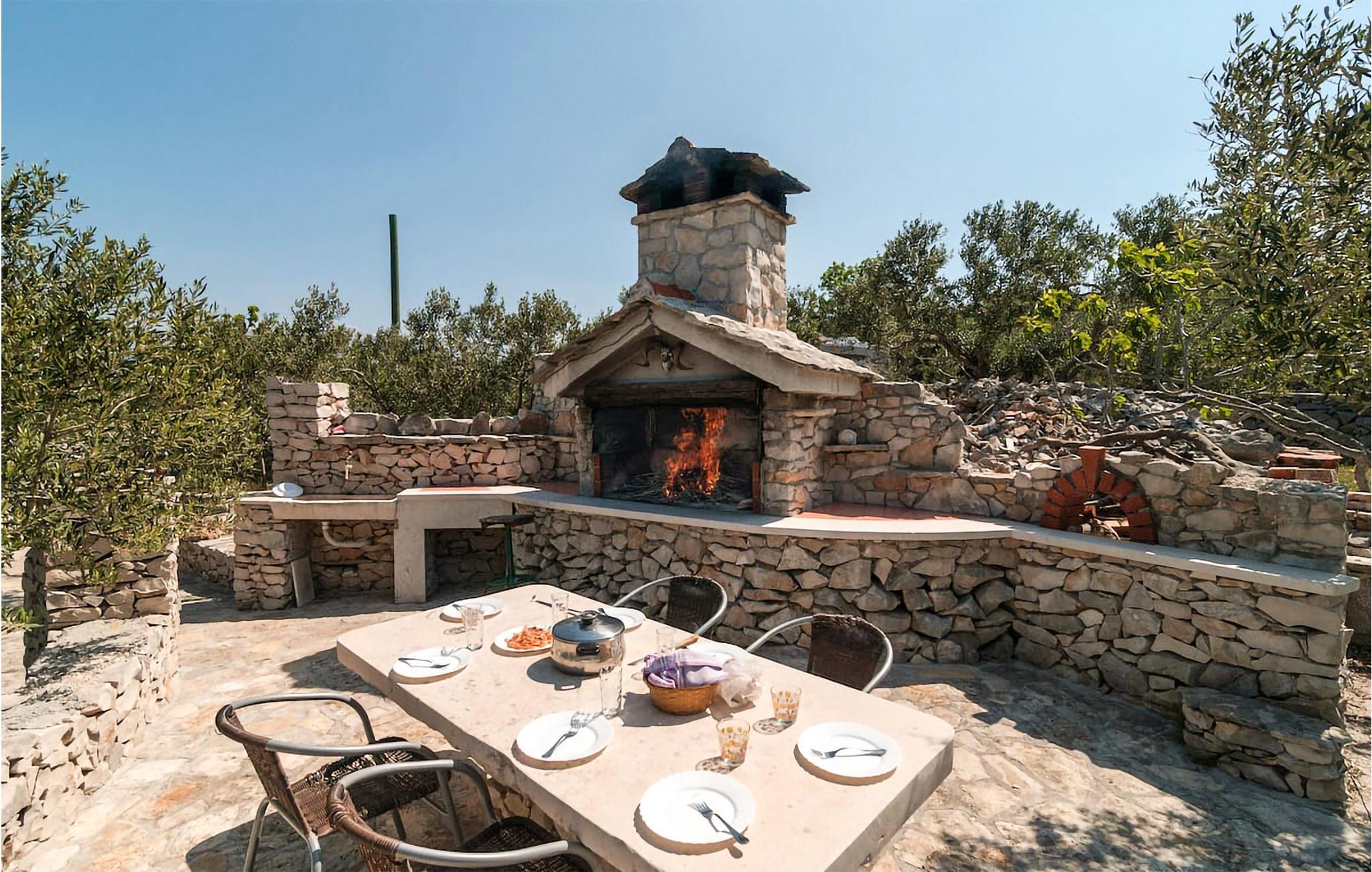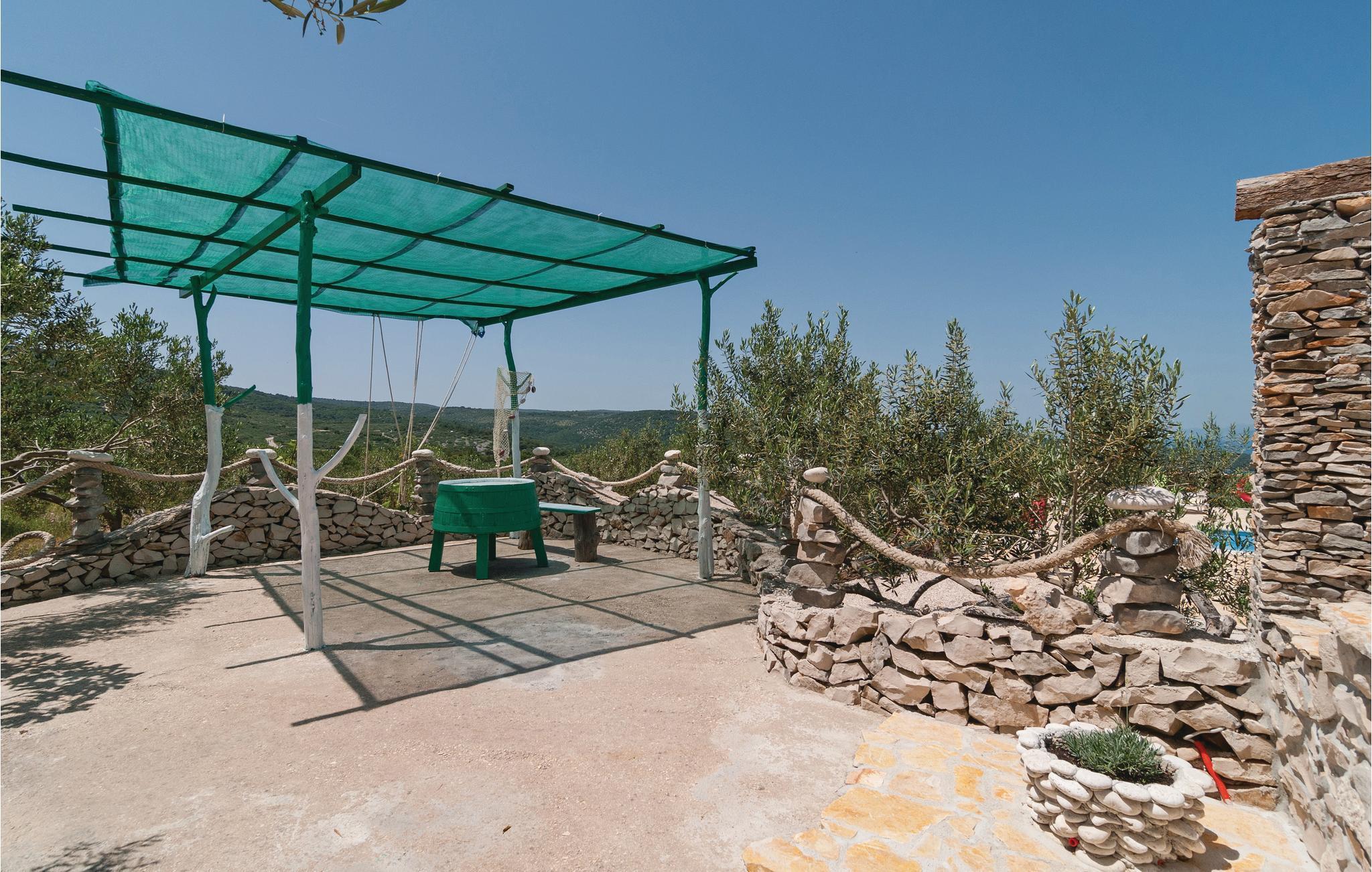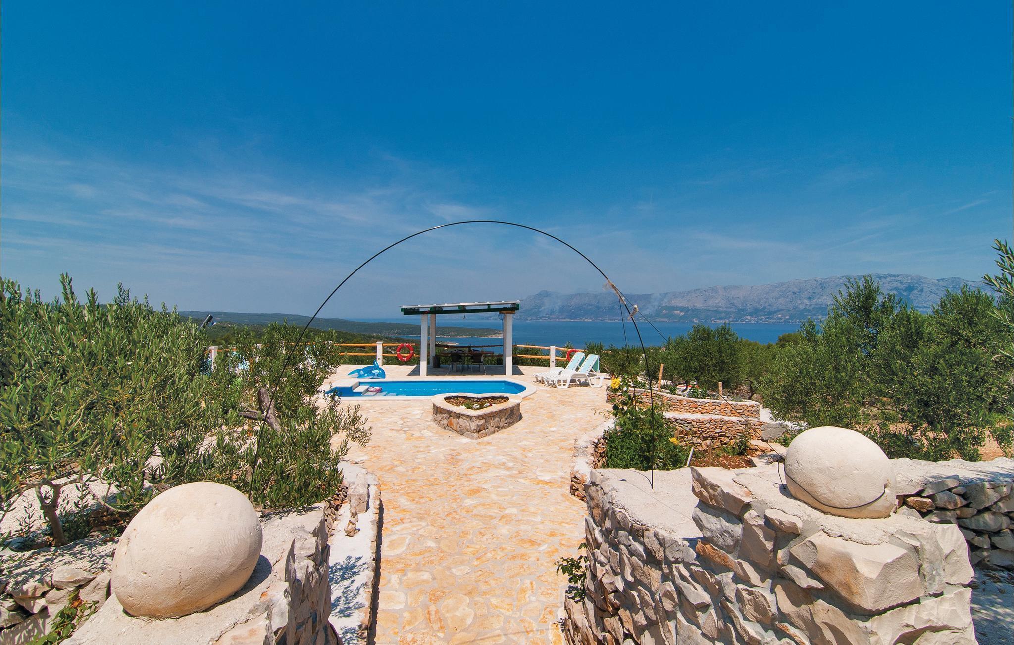 Dieses umweltfreundliche Ferienhaus mit Pool liegt in einem abseits gelegenen Olivenhain, oberhalb der Ortschaft Povlja auf der Insel Brac. Es besteht aus einem Schlafzimmer, einer Küche mit Wohnbereich und Innenkamin. Auf einer der vielen Außenterrassen steht Ihnen auch ein Außenkamin zur Verfügung. Die Wasserversorgung funktioniert vor allem über Regenwasser. Im Schatten der Olivenbäume gibt es einen kleinen Spielplatz, auf dem Ihre Kinder ungestört spielen können. Das besondere Highlight ist die große Terrasse, von der sich ein Panoramablick auf das Meer, den Berghang sowie das großzügige Grundstück bietet. Erfrischen Sie sich im Pool und genießen Sie die Ruhe dieses abgeschiedenen Feriendomizils. Die Zufahrt ist eine Schotterstraße.
