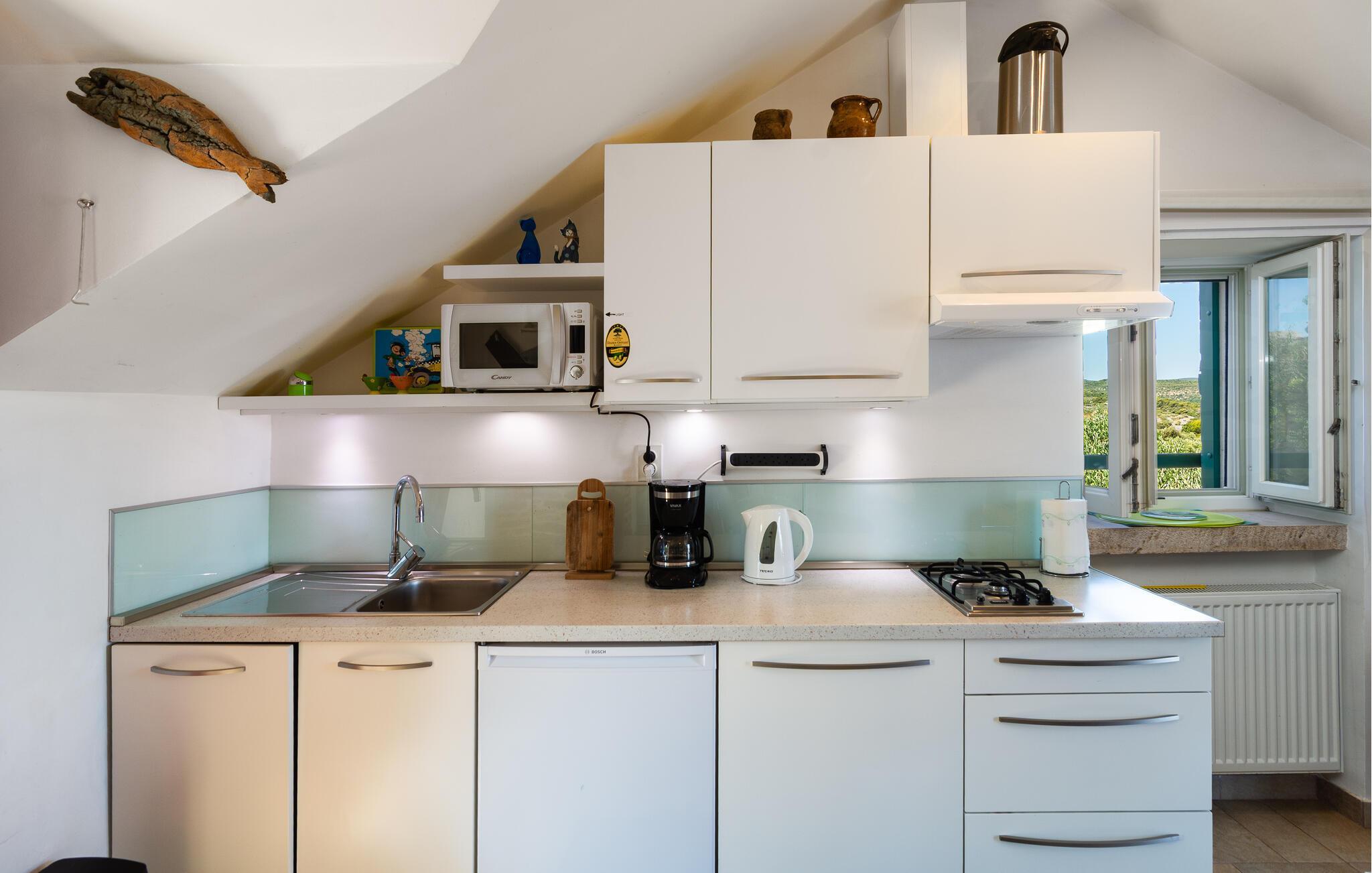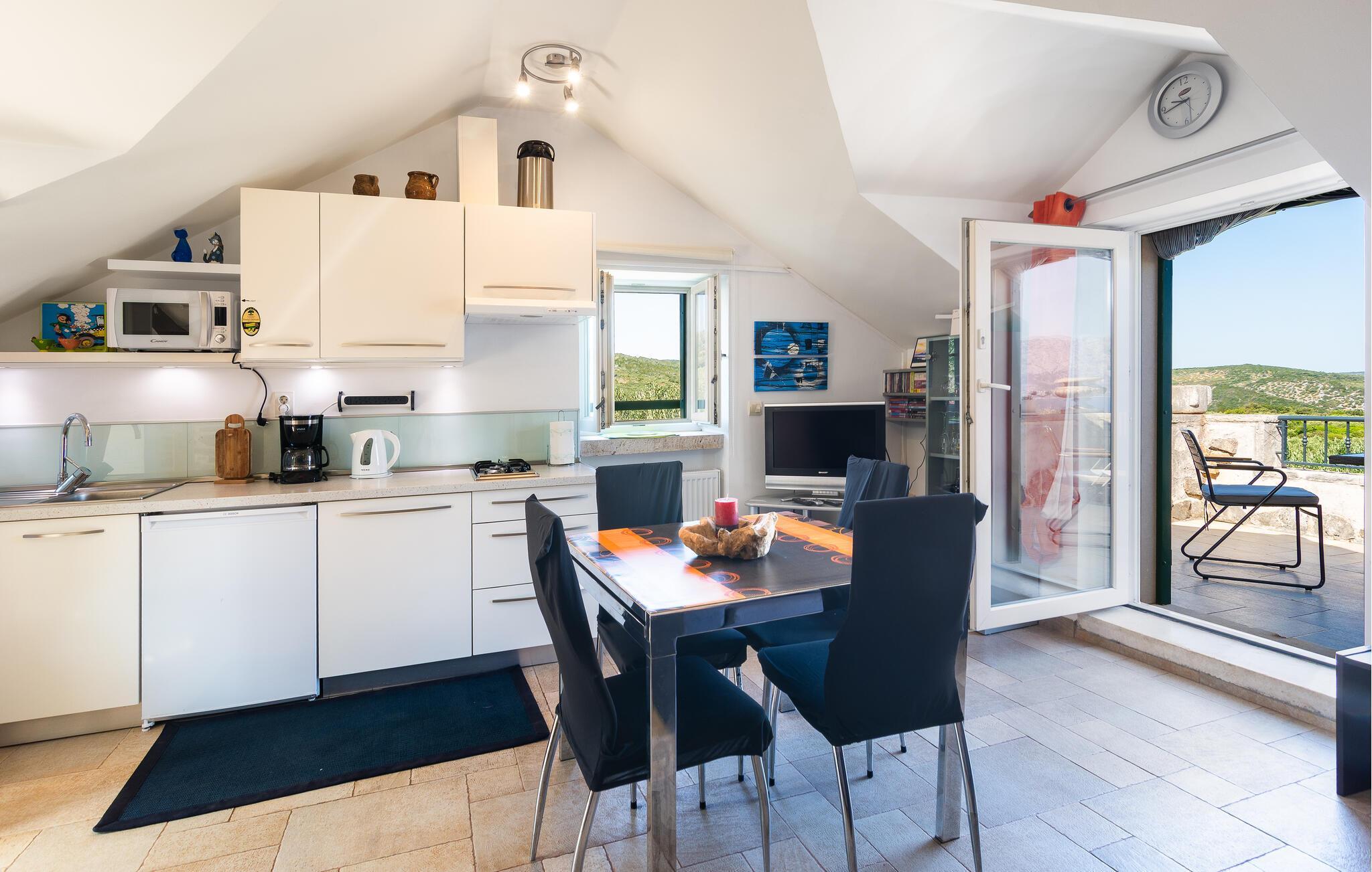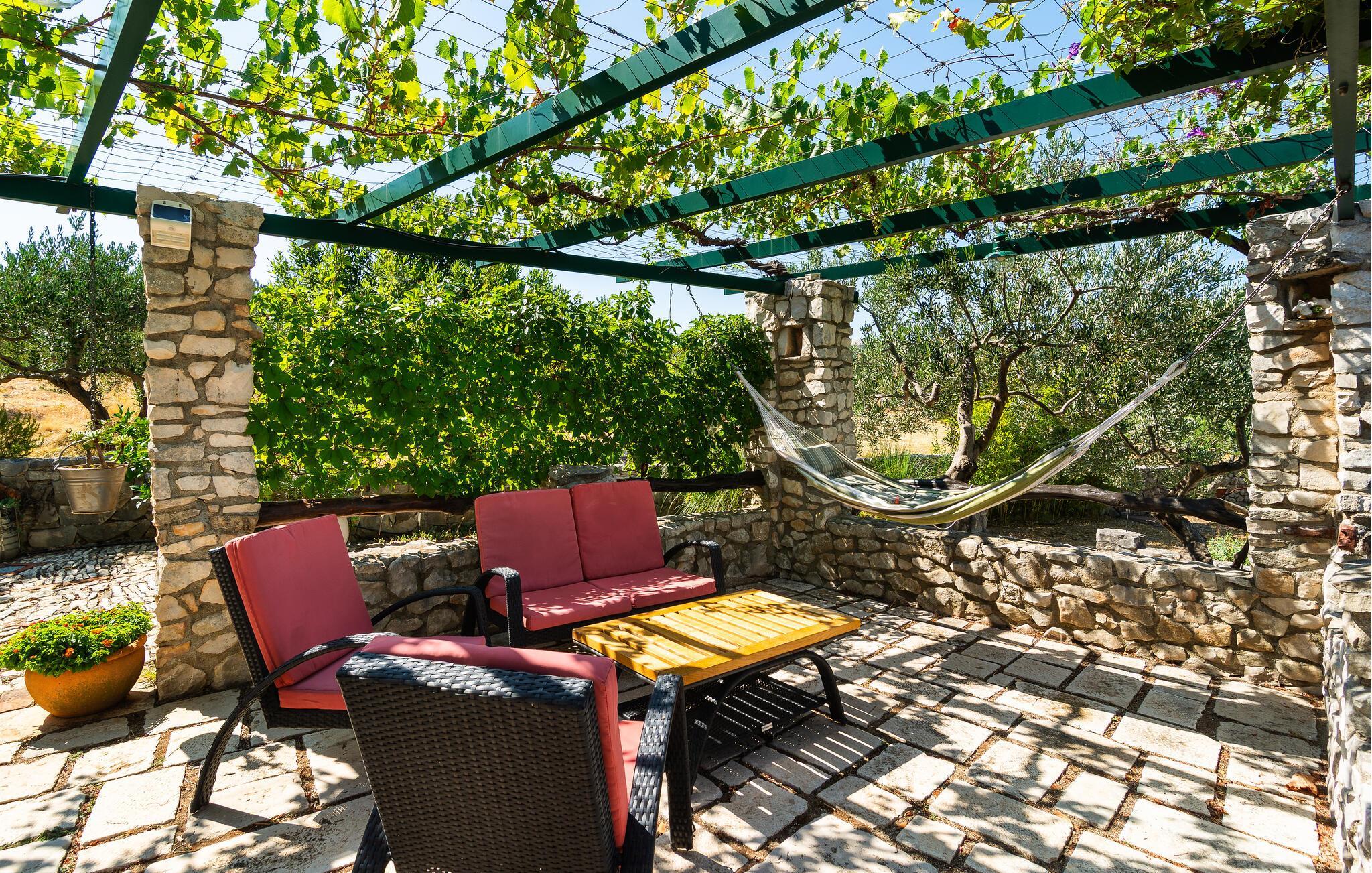 Dieses Ferienhaus liegt in einem Olivenhain oberhalb kleinem Ort Povlja, auf der Nordseite der Insel Brac. Hier können Sie einen ruhigen Urlaub weit von Lärm der Zivilisation verbringen. Eine Küche mit Essraum, ein Schlafzimmer und ein Bad liegen im ersten Stock, während das Erdgeschoss geschlossen ist. Das Wasser wird durch Zisternen geliefert. Der nette Eigentümer wohnt nicht vor Ort, aber er kommt gerne um zu helfen. Hier verfügen Sie über große Terrassenflächen, eine bietet eine schöne Panoramaaussicht auf das Meer und das Gebirge Biokovo. Hier erwartet Sie eine ruhige Atmosphäre.