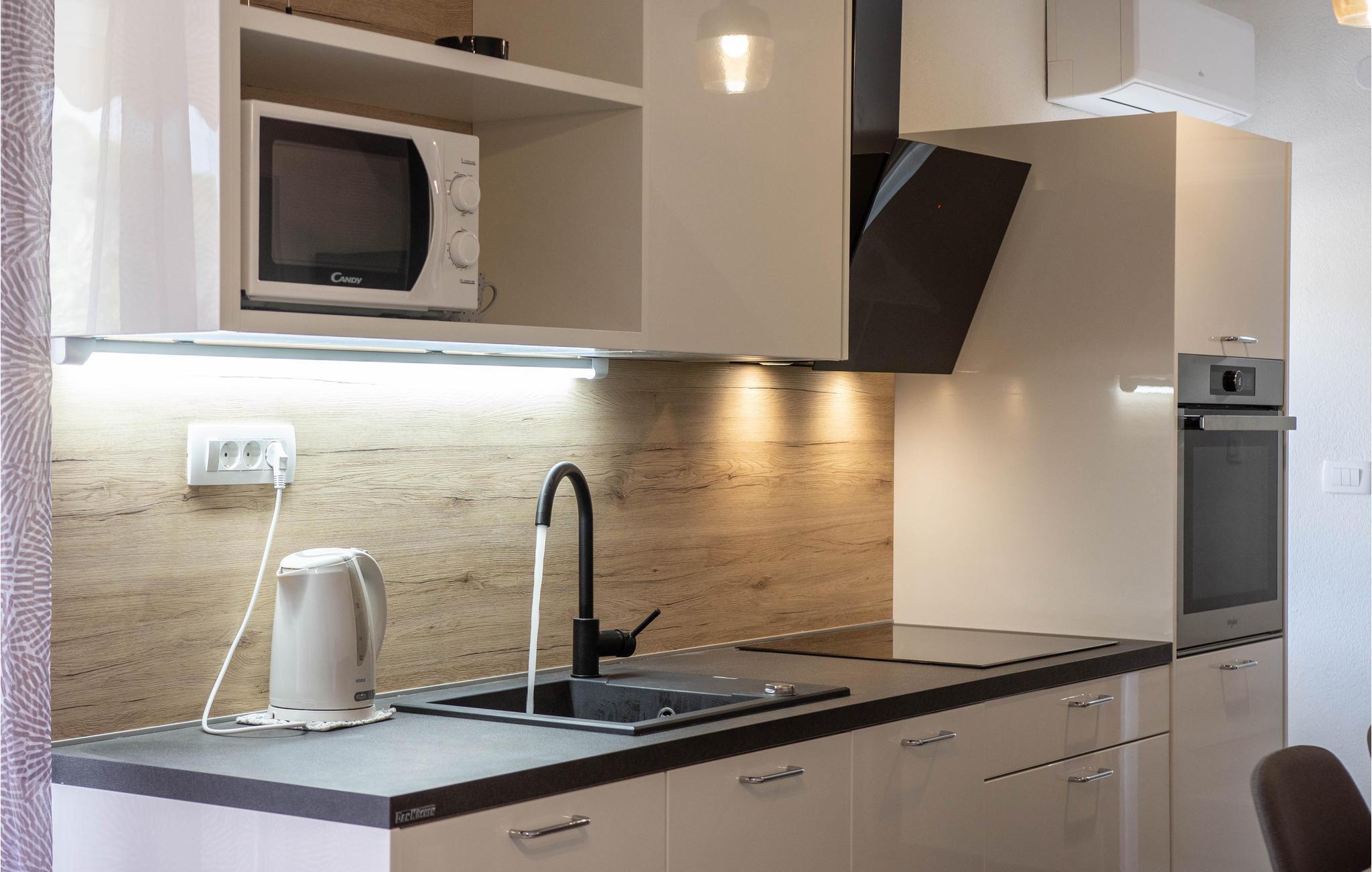Sie können den gemauerten Grill nutzen, um gemeinsam Ihr Abendessen zu kreieren, in der offenen Küche über das Erlebte sprechen oder in einem der unzähligen Restaurants der Stadt ein Tintenfischrisotto oder frisch gefangenen Fisch geniessen.