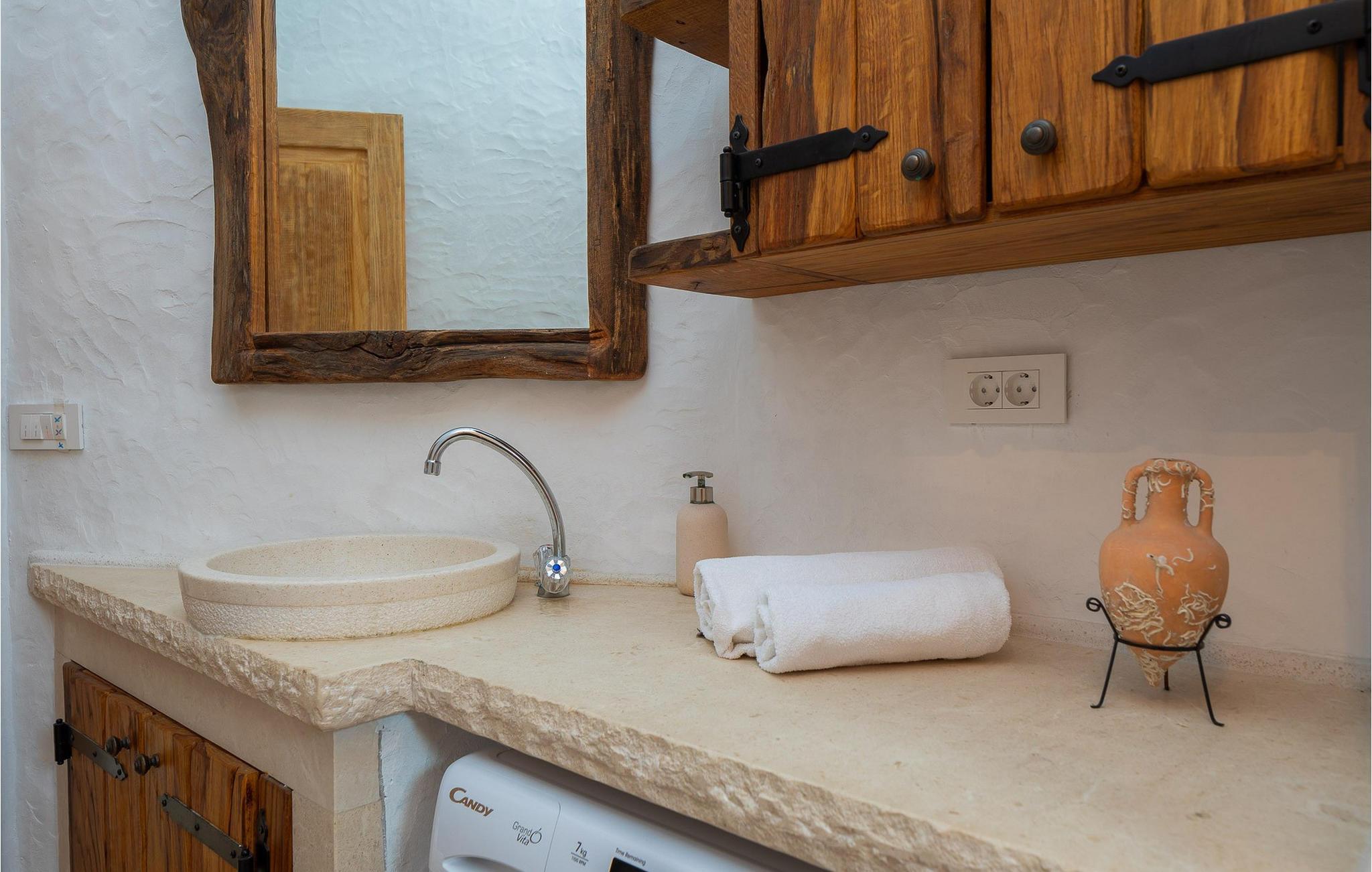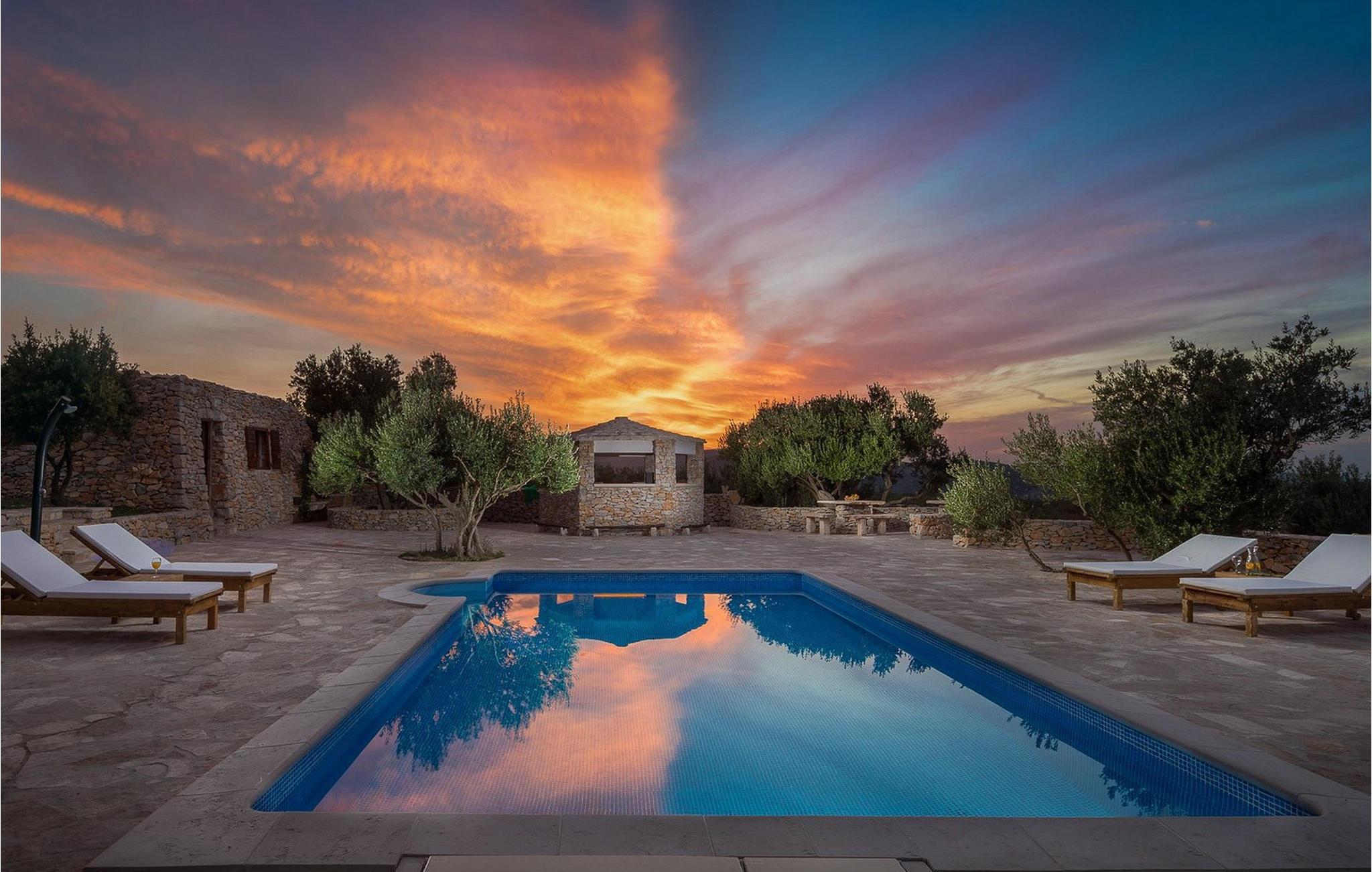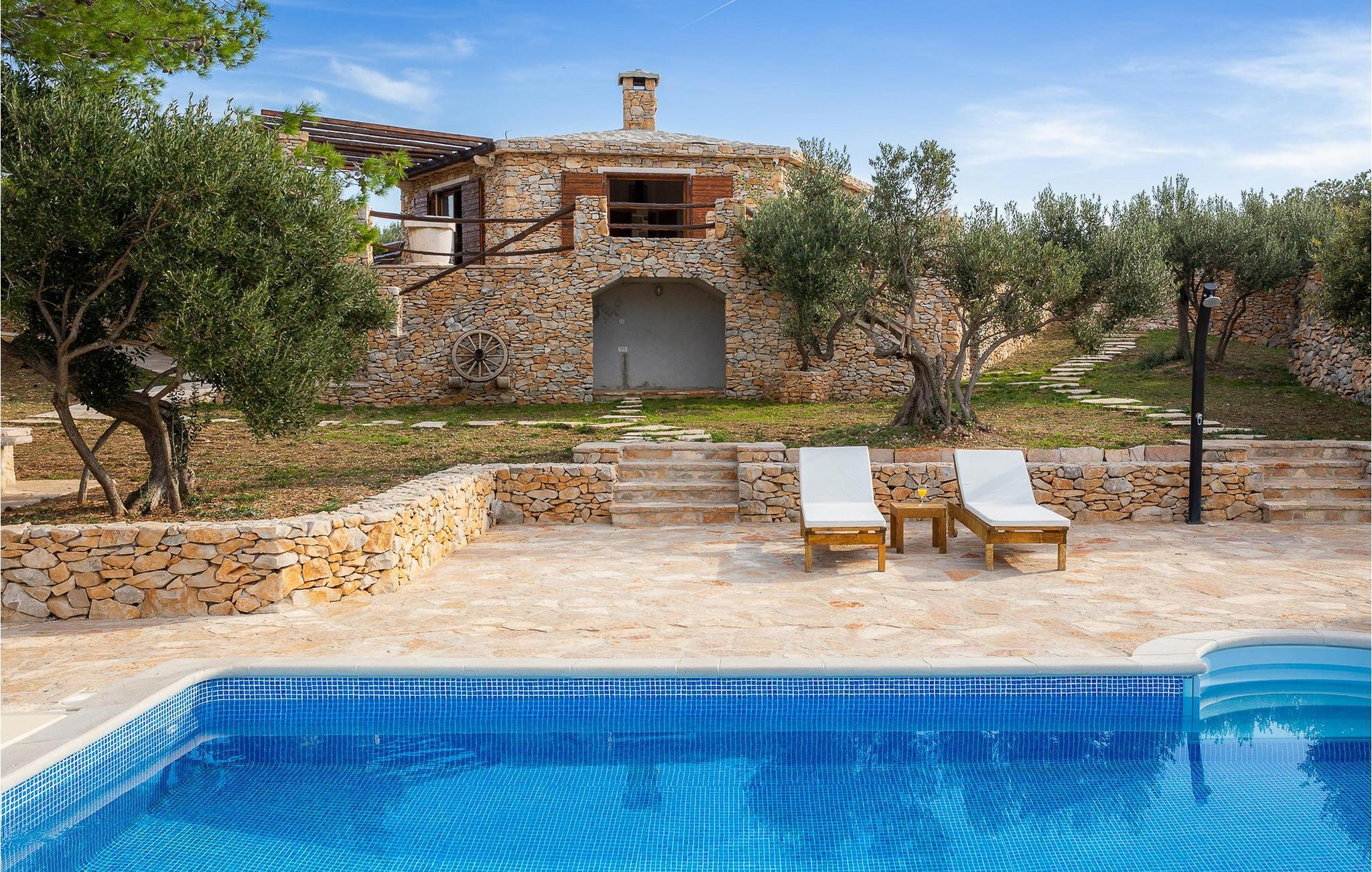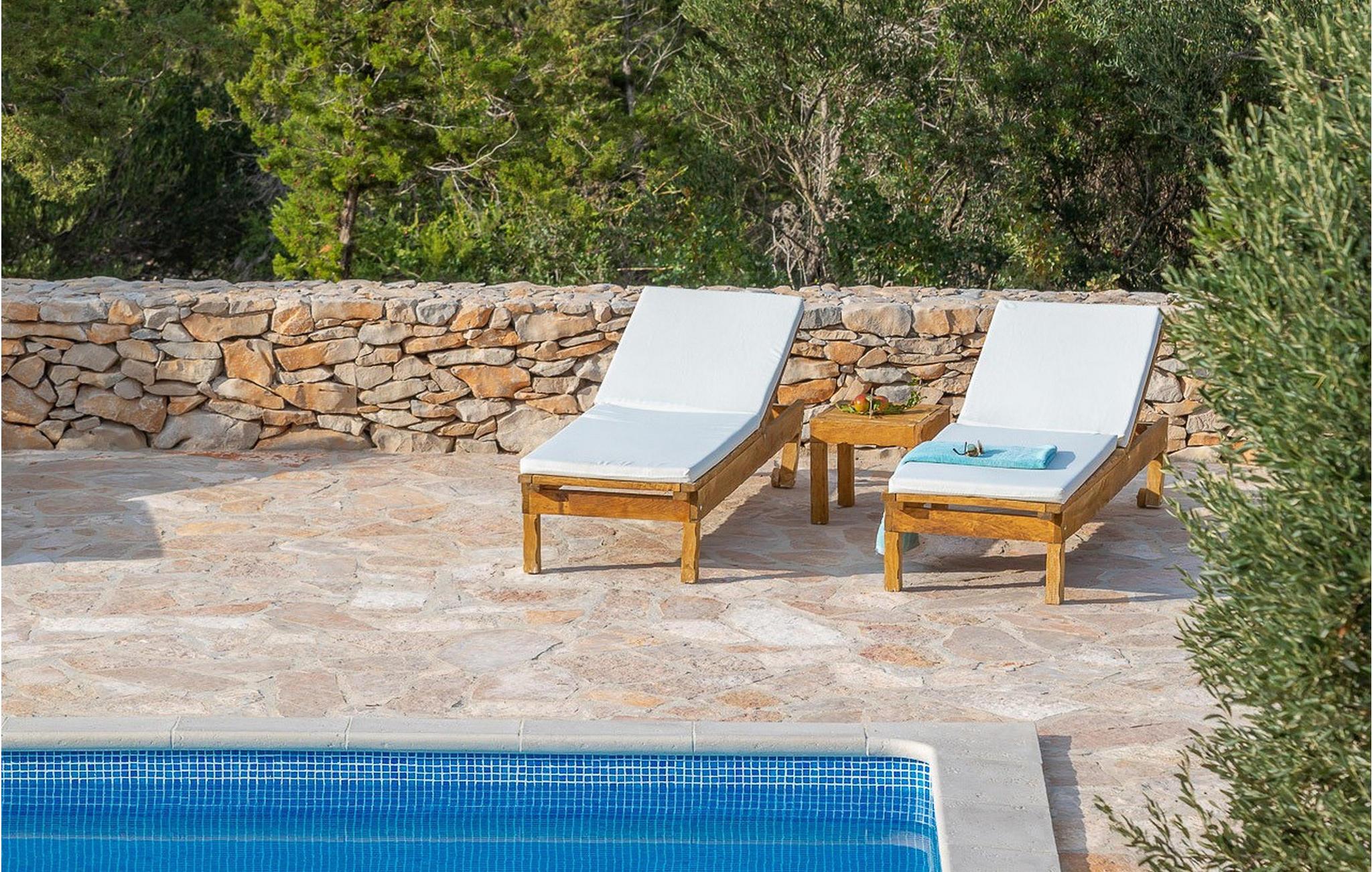 Genießen Sie die ruhige Atmosphäre der charmanten Steinvilla mit Swimmingpool und Meerblick.