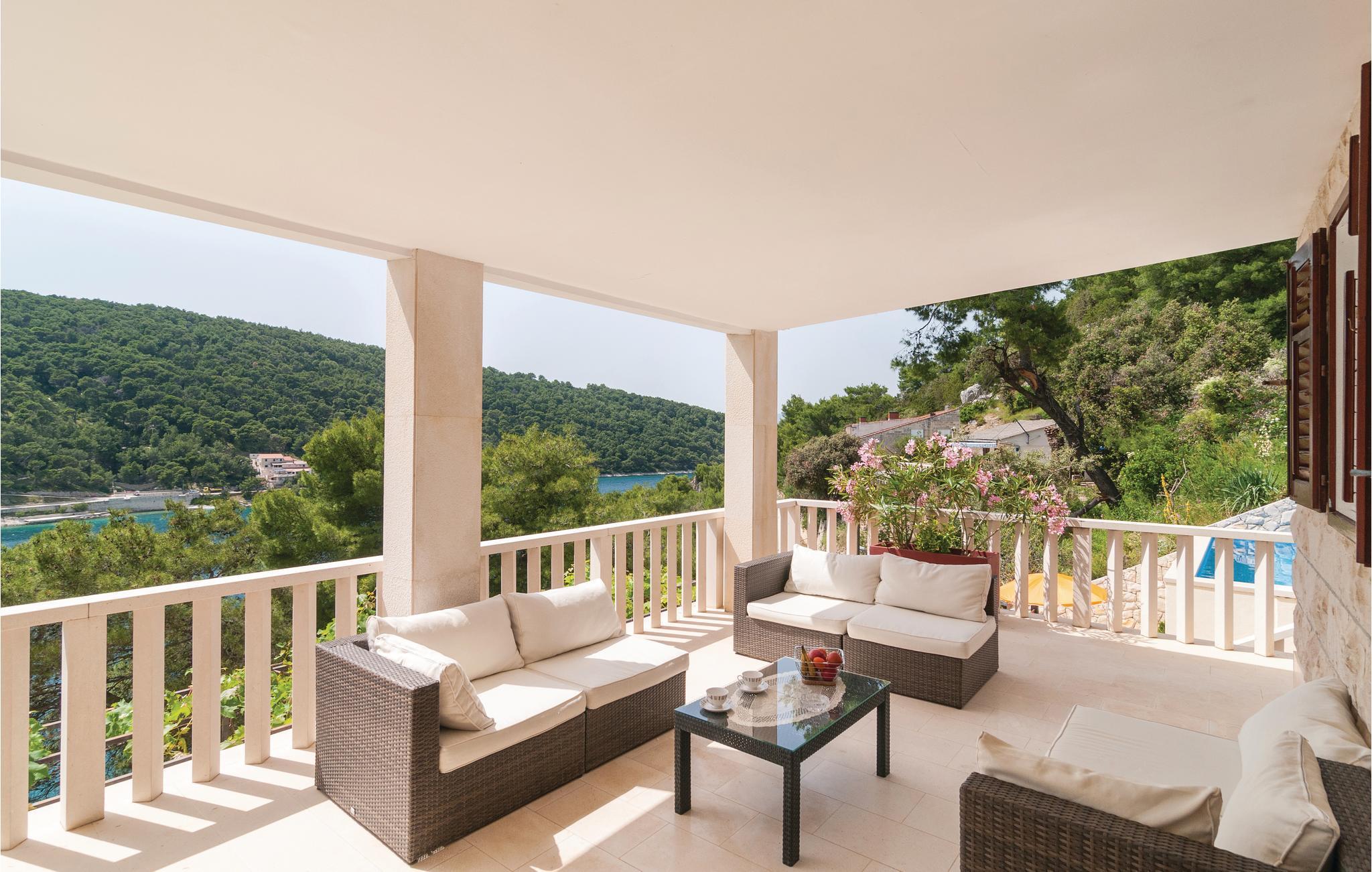 Dieses geräumige Ferienhaus mit Pool befindet sich im Ort Pucišca auf der Insel Brac. Dieser Ort ist weithin bekannt für den hochwertigen Brac-Stein, der in der Römerzeit hier abgebaut wurde. Das geschmackvoll eingerichtete Ferienhaus erstreckt sich über zwei Etagen (Außentreppen). 2 Schlafzimmer mit Badezimmern sind im Erdgeschoss, im Obergeschoss sind drei Schlafzimmer, ein Wohnbereich mit Küche, ein Bad und eine zusätzliche Toilette. Durch die Raumverteilung ist dieses Feriendomizil eine ausgezeichnete Wahl für eine Familie mit Kindern oder Urlaub mit Freunden. Neben dem Poolbereich stehen Ihnen noch zwei Terrassen und ein Grill zur Verfügung. Genießen Sie das Schwimmen im kristallklaren Meer und besichtigen Sie die Sehenswürdigkeiten dieser schönen Insel.