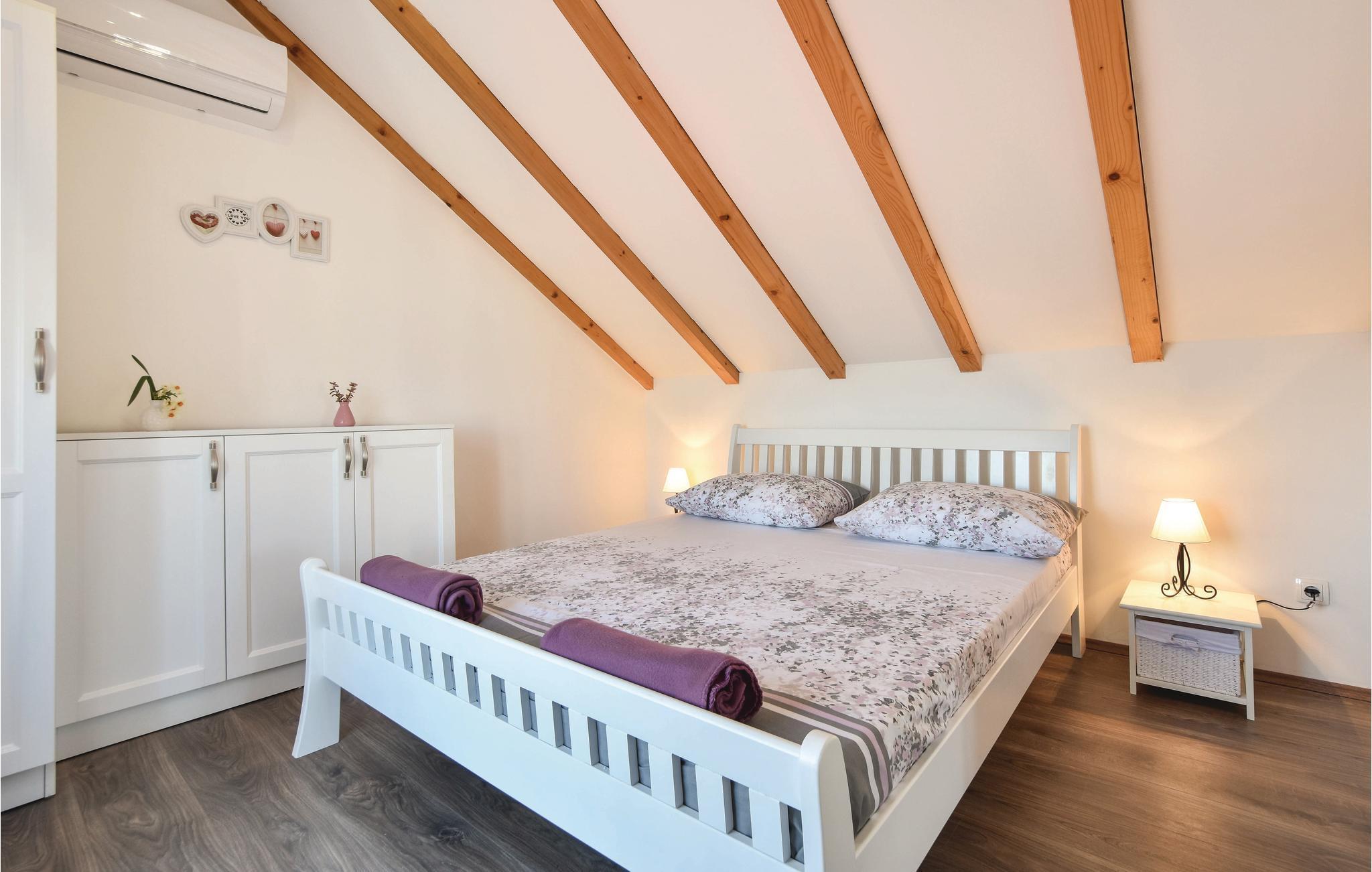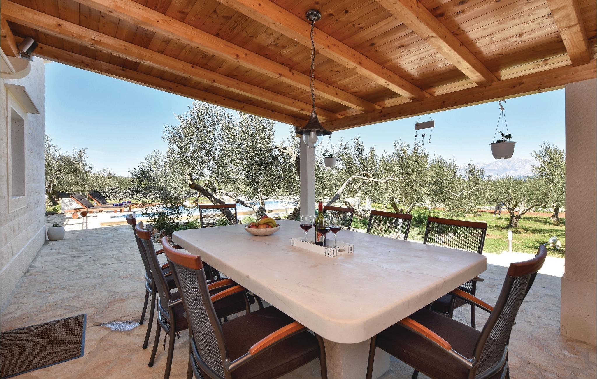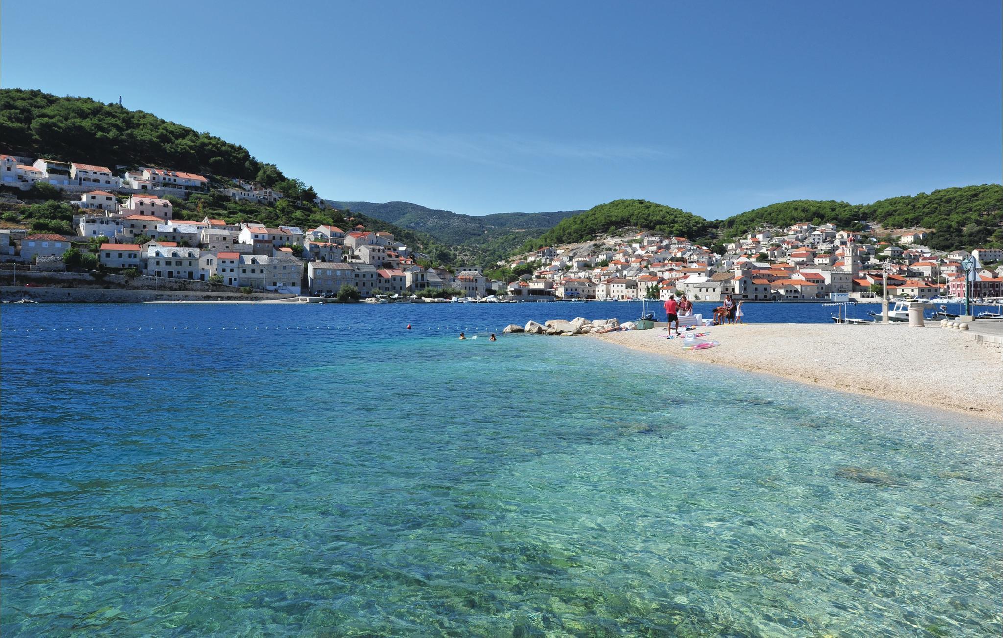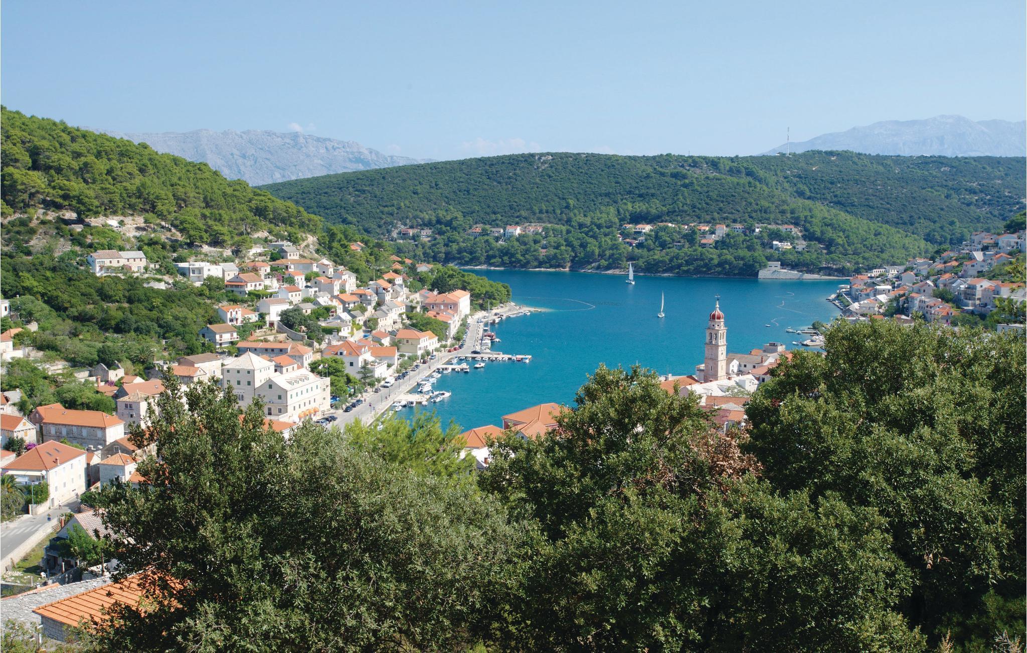 Auf der Insel Brac, oberhalb des malerischen Ortes Pucišca, befindet sich dieses neuwertige Ferienhaus mit Pool. Es liegt auf einem weitläufigen Anwesen von ca. 10.000 m², von dem sich eine wunderbare Aussicht auf das Meer und die Berge bietet. Die Insel ist weithin bekannt für ihren hochwertigen Kalkstein, der schon seit der Antike abgebaut wird. Das umzäunte und gepflegte Grundstück liegt in ruhiger Umgebung, fernab vom Lärm der Stadt und es ist von Olivenhainen umgeben. Behaglicher Komfort wird im Inneren geboten. Im Erdgeschoss sind eine Küche mit Essbereich, ein Badezimmer, sowie ein Wohnzimmer mit Ausgang zur überdachten Terrasse mit Kamin vorhanden. Im ersten Stock sind zwei Schlafzimmer (Dachschräge auf ca. 160 cm). Das Schlafzimmer Nr. 3 verfügt über ein eigenes Badezimmer und liegt im Erdgeschoss mit separatem Eingang. Der erfrischende Pool, Sonnenbereich und die Außendusche eignen sich zum Wohlfühlen und Entspannen, während Badminton und zwei Fahrräder für zusätzlichen Spaß im Urlaub sorgen. Zufahrt auf den letzten 500 m ein Schotterweg.