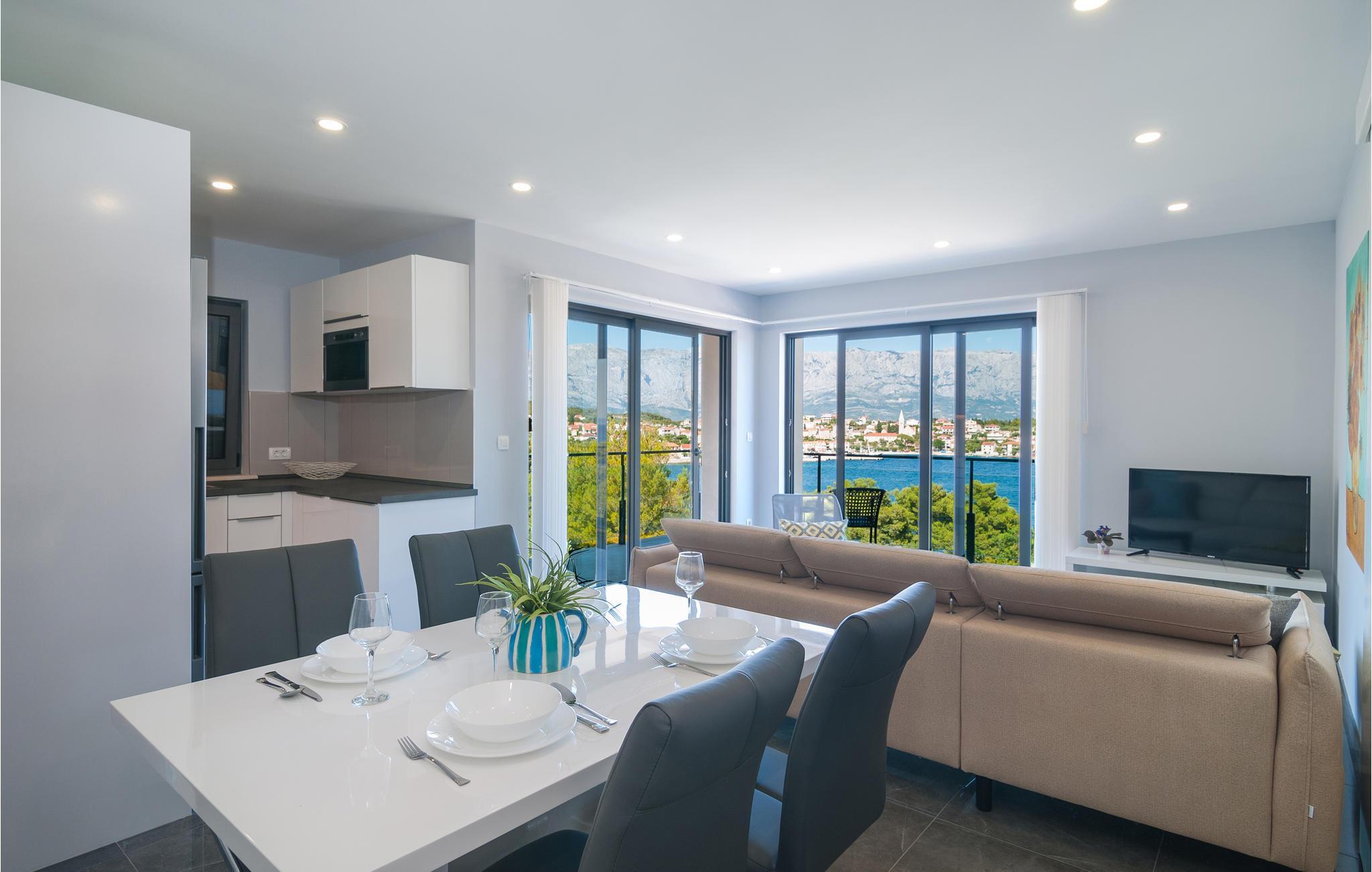 Die Wohnung ist modern ausgestattet und erwartet ihre Gäste im 2. Stock eines Hauses. Sie genießen hier einen wundervollen Panoramablick auf das Meer und die Landschaft. Mit 2 Schlafzimmern und 2 Bädern bietet die Wohnung komfortabel Platz für 4 Personen. Das Haus ist mit einer Waschküche zur gemeinsamen Nutzung ausgestattet.