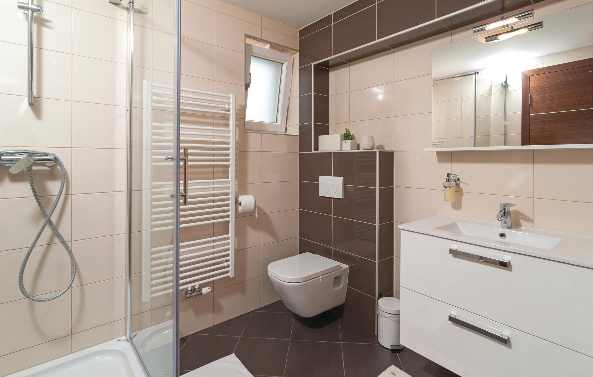 Badezimmer (nr. 2) - WC. Warmes und kaltes Wasser. Dusche