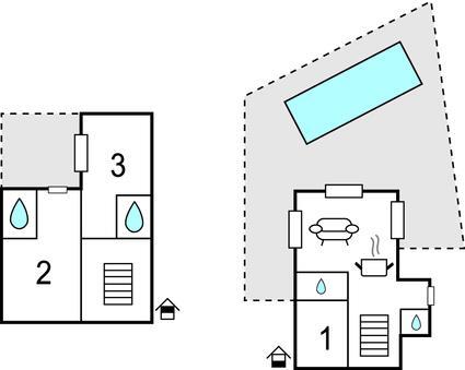 Badezimmer (nr. 3) - WC. Warmes und kaltes Wasser. Dusche