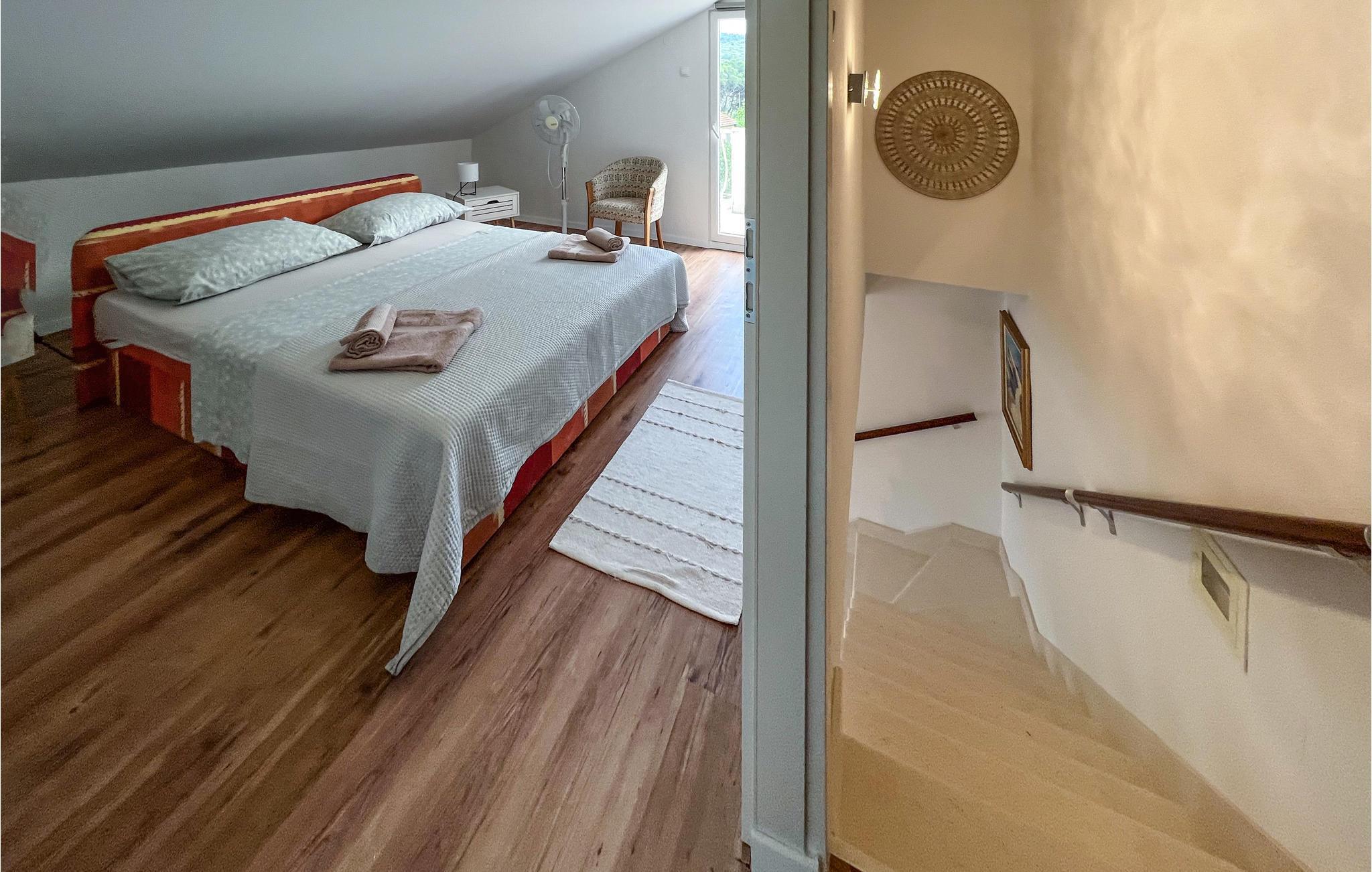Dieses Ferienhaus ist in Splitska gelegen, die wegen seines Hafens interessant ist, von welchem der „Stein von Brac“ transportiert und für den Bau des Diokletianspalastes in Split verwendet wurde. Finden Sie ruhige Plätze zum Schwimmen und Entspannen zwischen den herrlichen Pinienwäldern. Das Meer leuchtet in den schönsten Farben und das kristallklare Wasser lädt zum Schnorcheln ein. An der Küste können Sie auch gute Restaurants mit kroatischen Köstlichkeiten besuchen und ein kühles Getränk genießen. In unmittelbarer Nähe befinden sich auch Wander- und Radwege, sowie eine Bootsvermietung, Angelmöglichkeiten und ein Fahrradverleih.